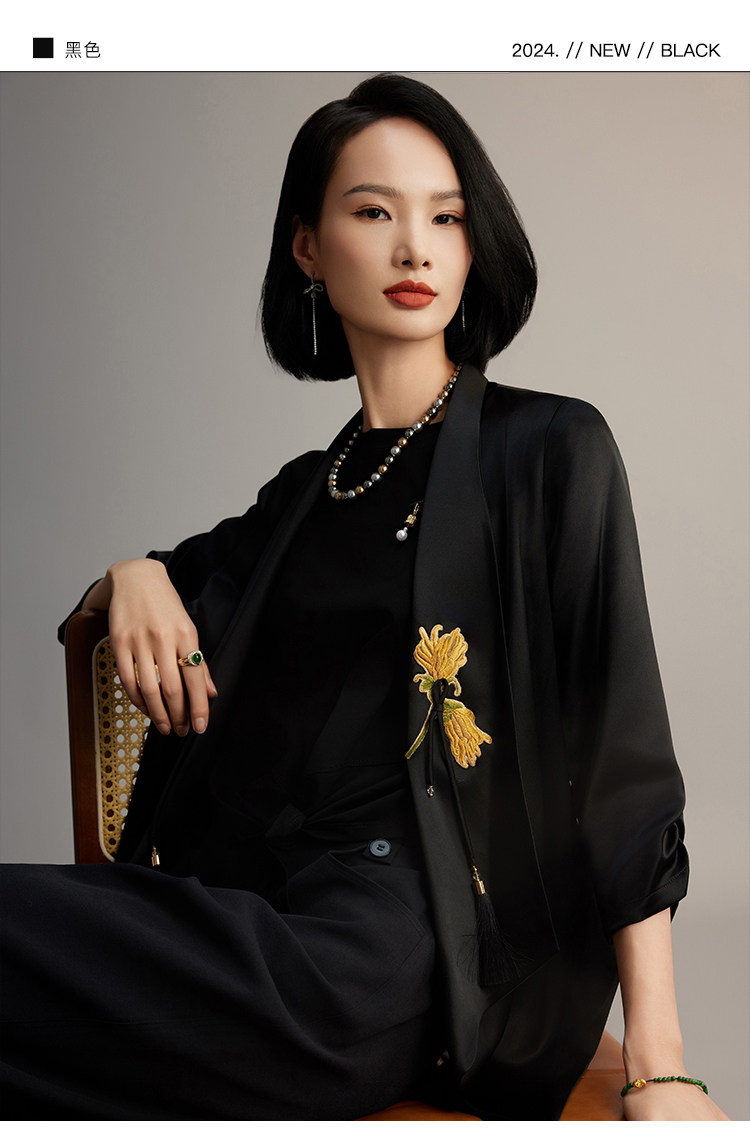 郭培成衣品牌【“药”爱自己】佛手花刺绣丝滑垂坠感披肩外套