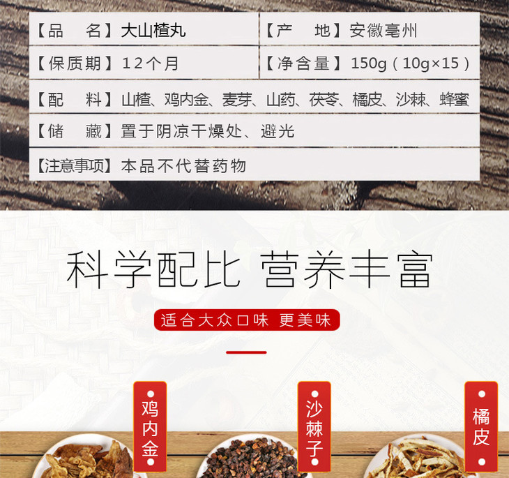 大山楂丸150克/瓶 15粒 沙棘 鸡内金 男女养生丸子