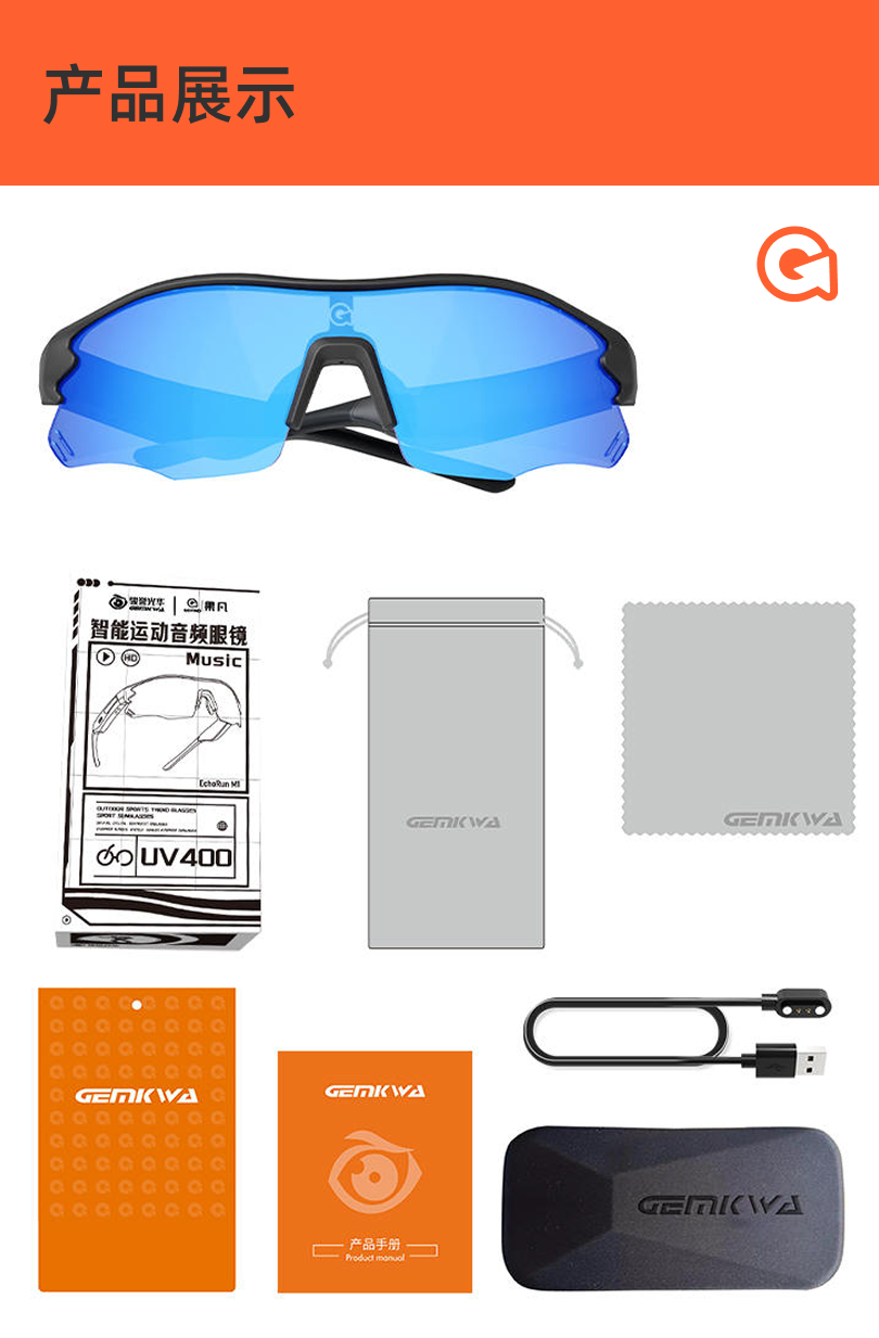 骏誉光华&果凡EchoRun M1 蓝牙耳机智能运动音频眼镜一体式 音乐通话马拉松越野骑行UV400防水超长续航 回声高清