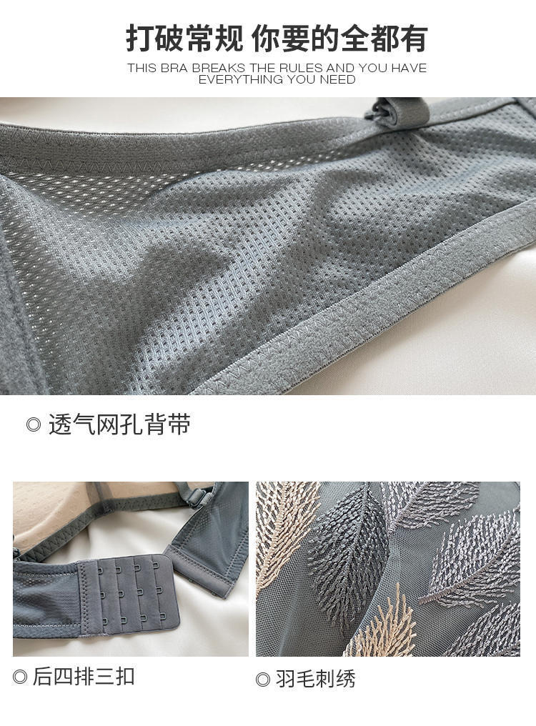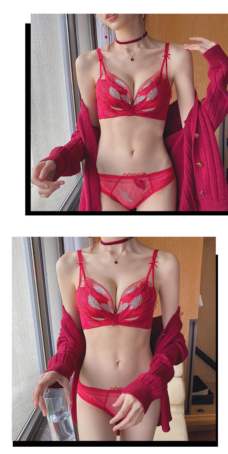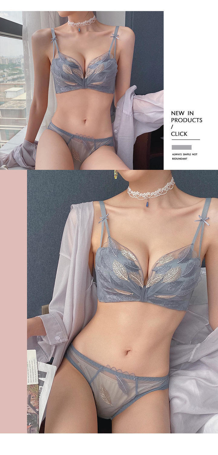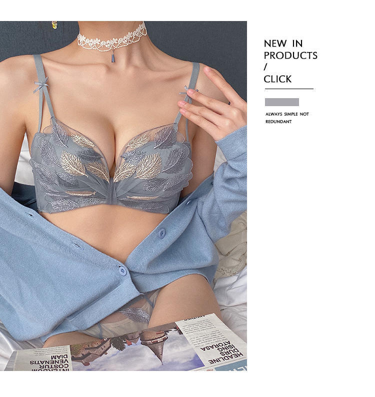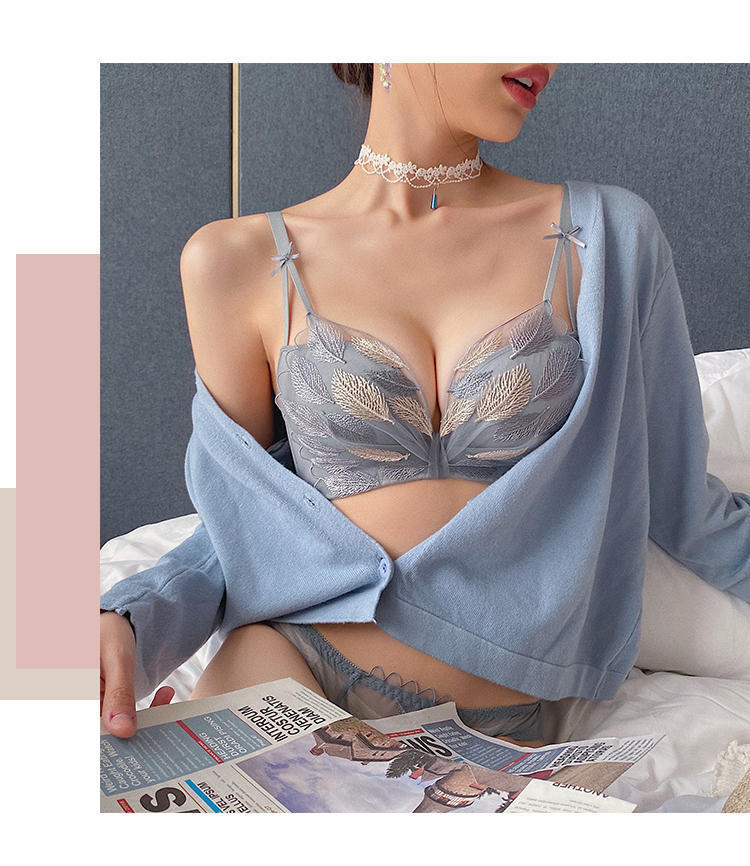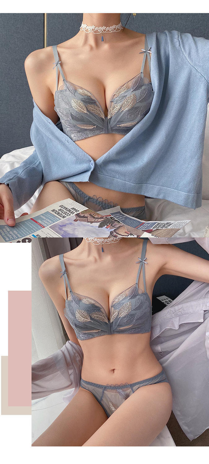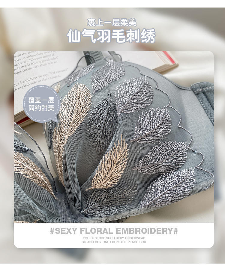 羽毛天空甜美刺绣内衣女小胸聚拢无钢圈上托收副乳防下垂调整型文胸内衣裤套装