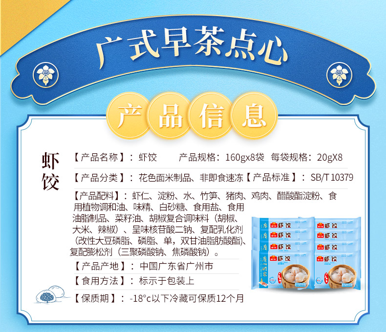 广州酒家 虾饺8袋装早餐广式虾仁饺子早茶点心速食1.28kg
