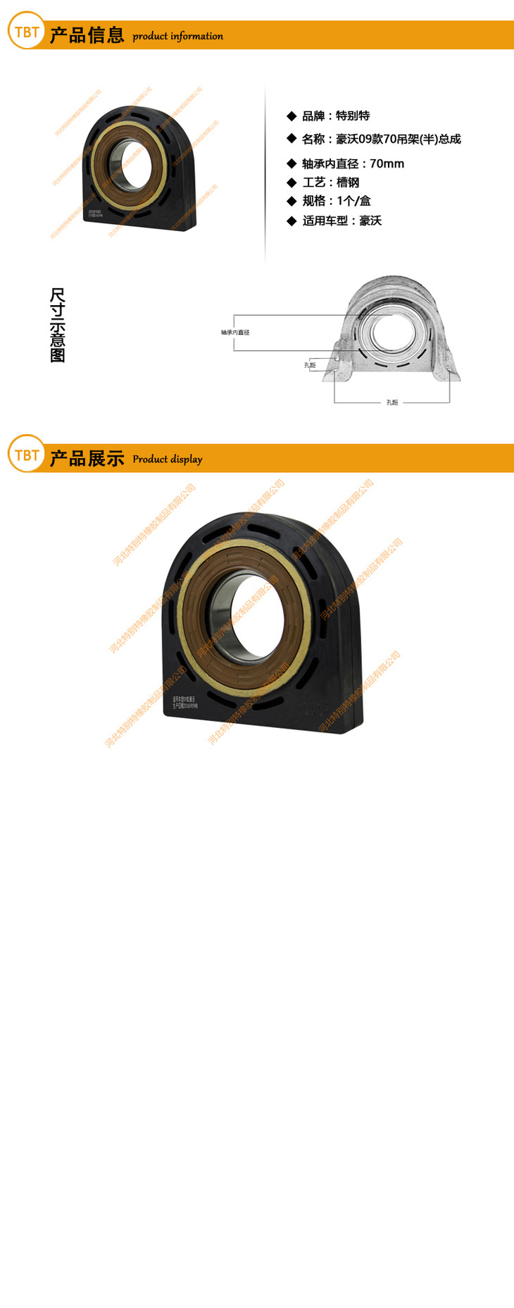 豪沃09款70吊架半总成(黑)豪沃09款70传动轴吊架半总成/豪沃09款70传动轴过桥半总成/09款豪沃70半总成/豪沃半总成(单价=1个,10个=1箱)
