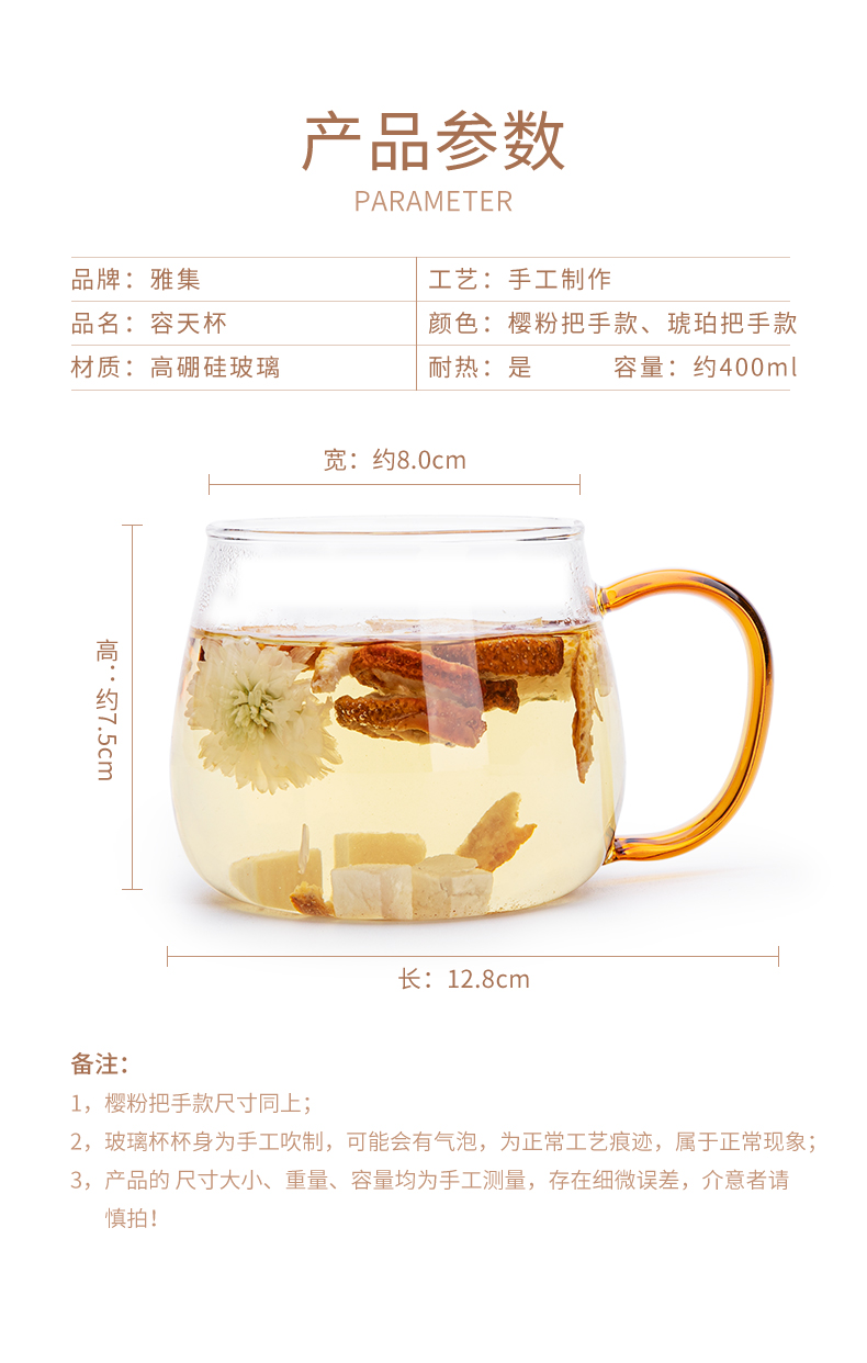 雅集玻璃杯容天杯400ml(琥珀把)