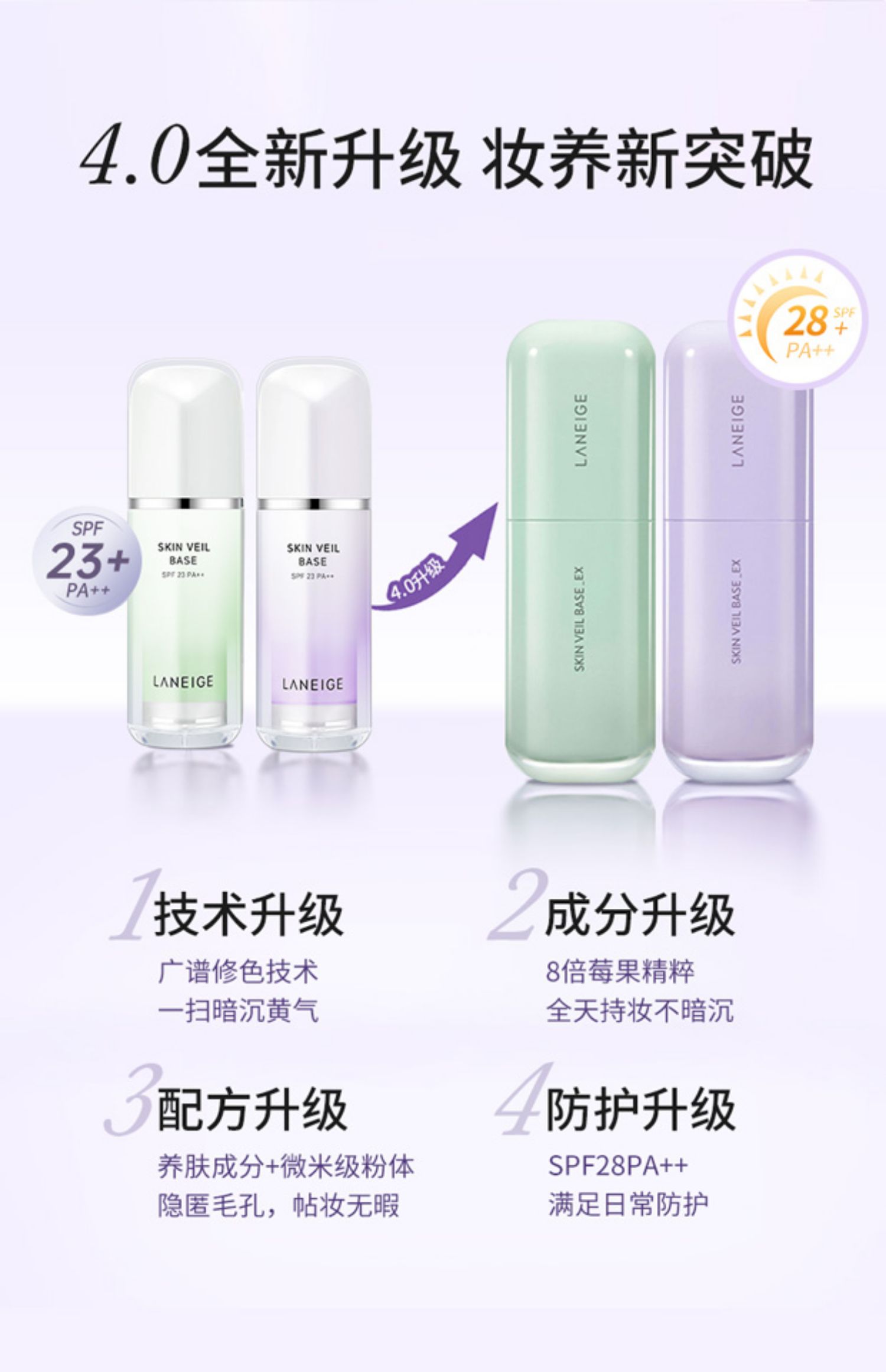 【全球购】LANEIGNE兰芝雪纱丝柔修颜隔离30ml妆前防晒打底遮瑕·海淘香港直邮