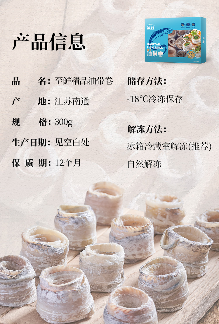 【发出后不支持拦截退货】至鲜 油带卷 300g*3