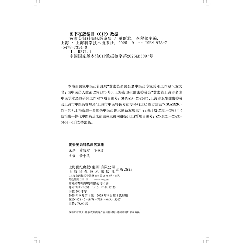 黄素英妇科临床医案集 董丽君 李程蕾 供中医中医妇科中西医临床医生中医院校师生以及广大中医爱好者阅读参考 上海科学技术出版社