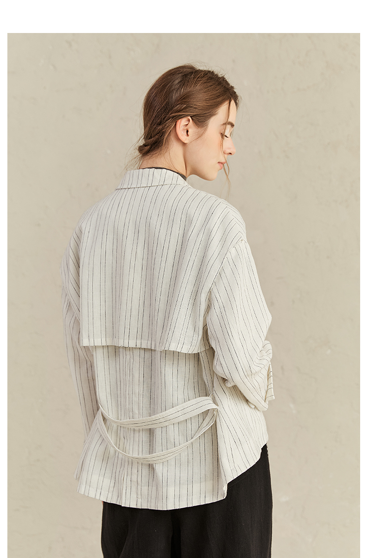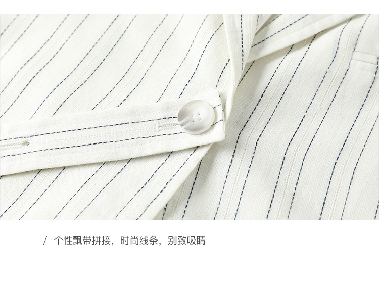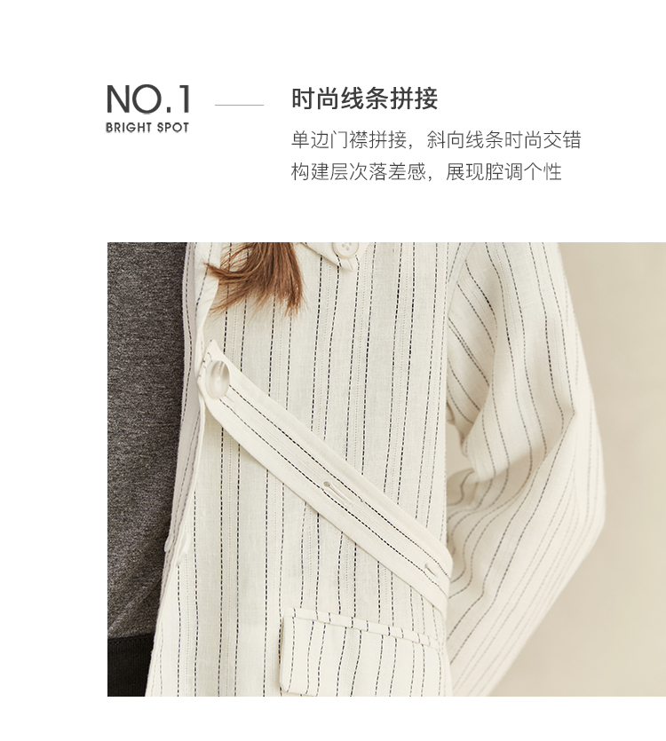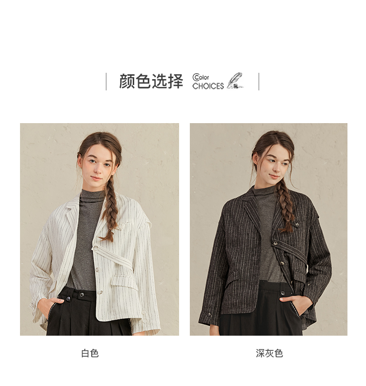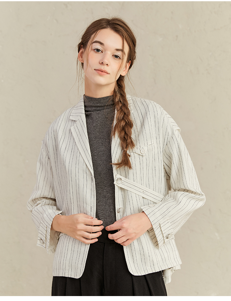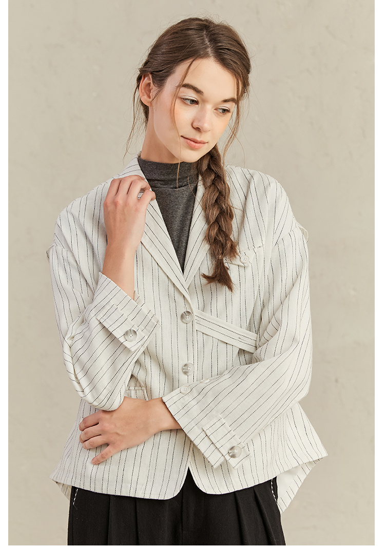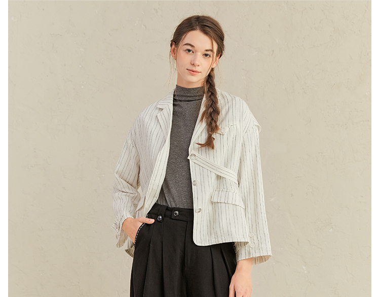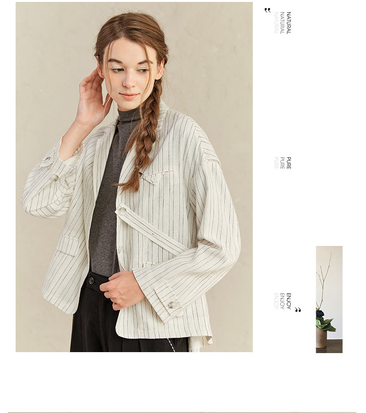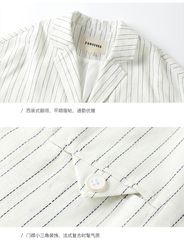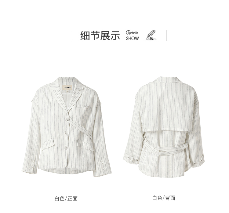 Famecoco范可儿短款宽松外套女式简约慵懒条纹春装F221AB009