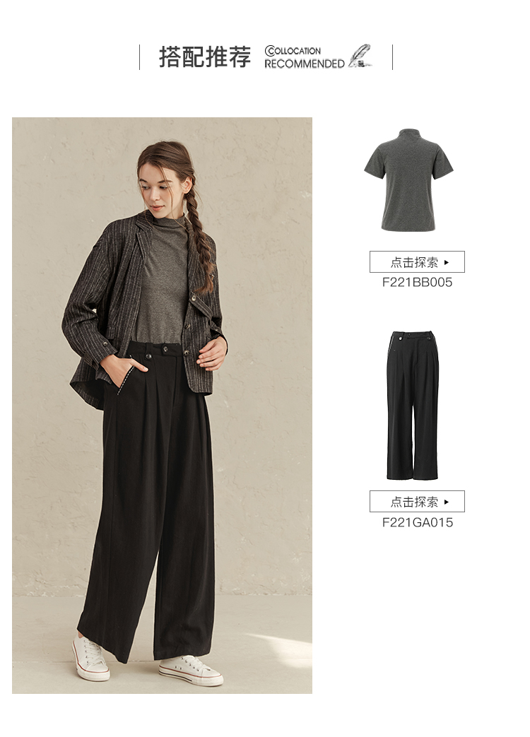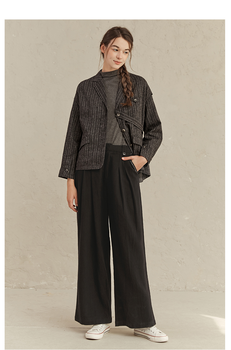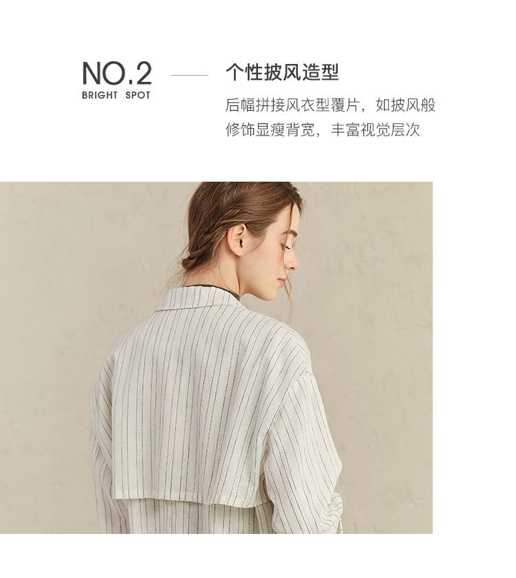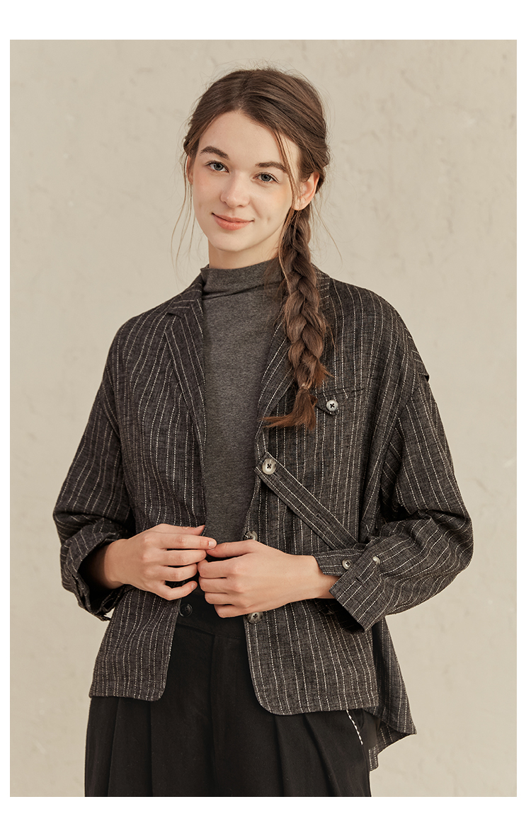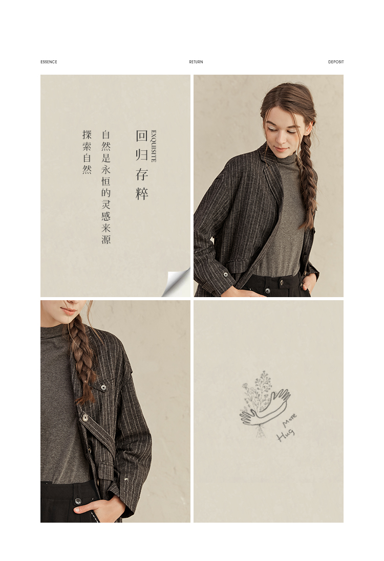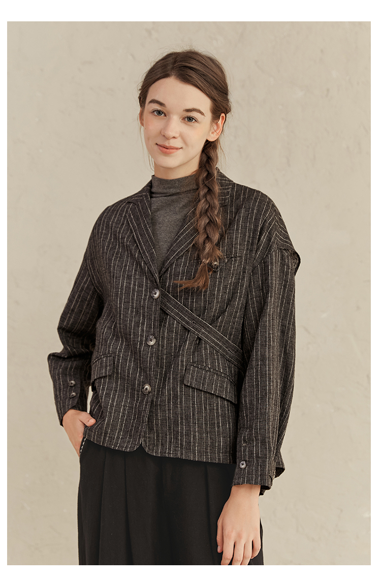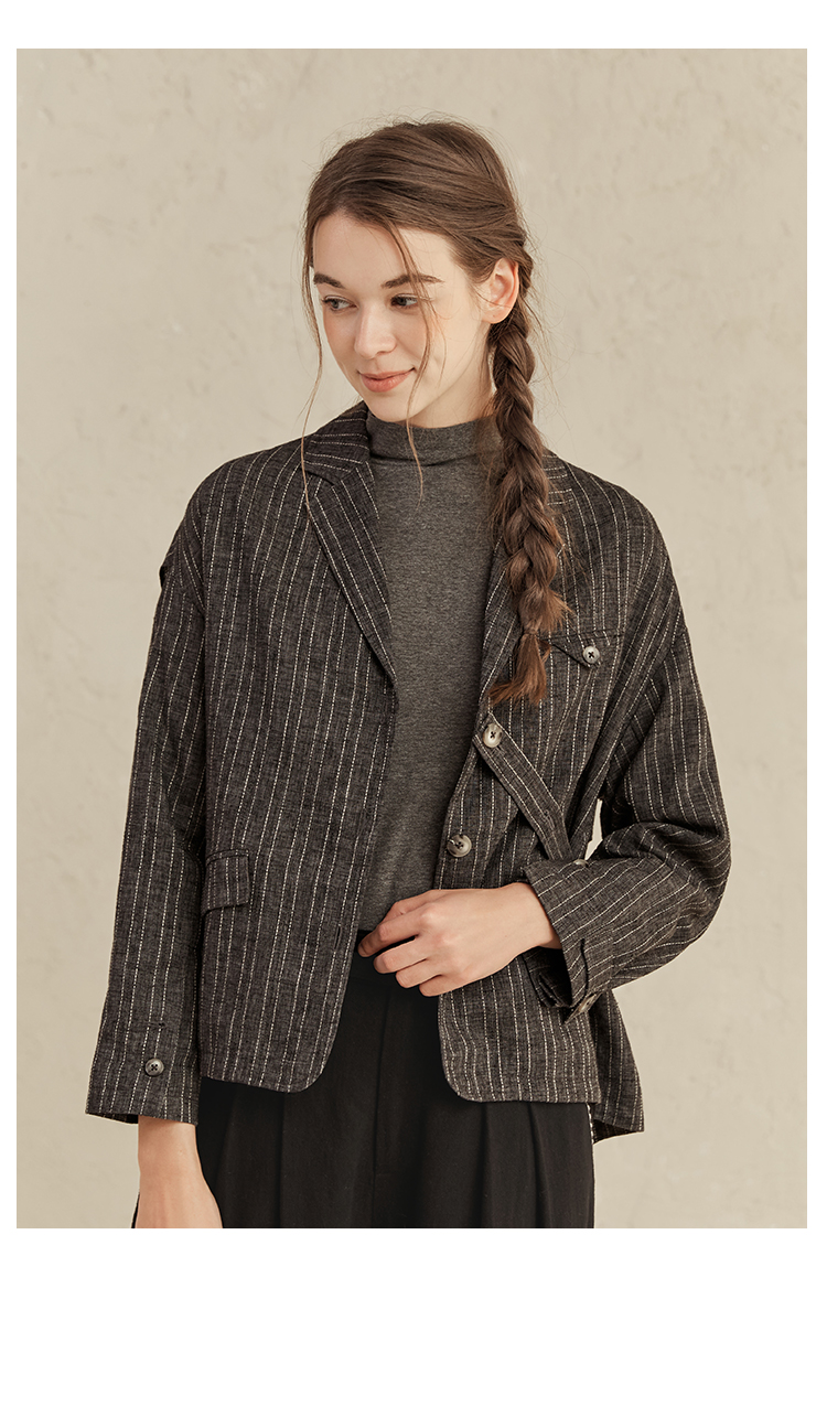 Famecoco范可儿短款宽松外套女式简约慵懒条纹春装F221AB009