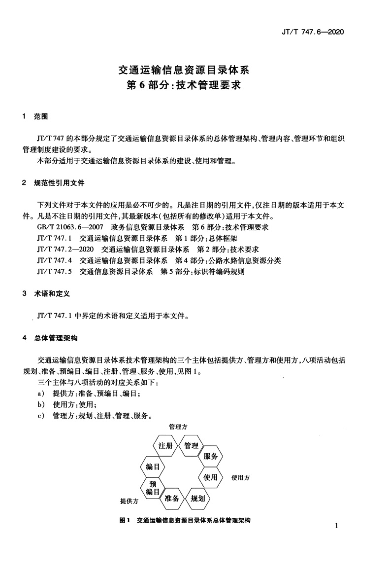 交通运输信息资源目录体系 第6部分:技术管理要求(JT/T 747.6—2020)