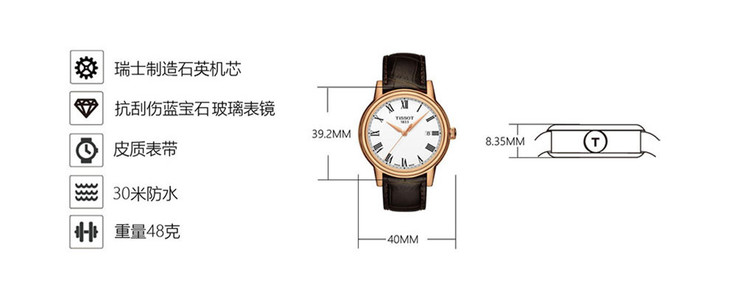 | 机芯 | 石英机芯 ETA 805.112 | 表径 | 39.2 mm |