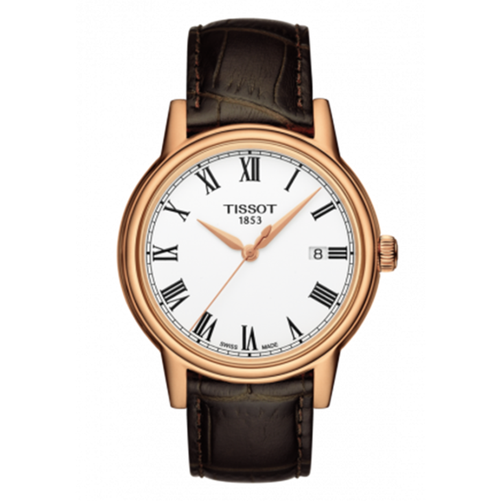 镜面 材质 | 蓝宝石水晶玻璃 | 表盘 | 精钢PVD镀玫瑰金表壳 白色表盘 大三针 日期显示 罗马数字时标 不透底 |