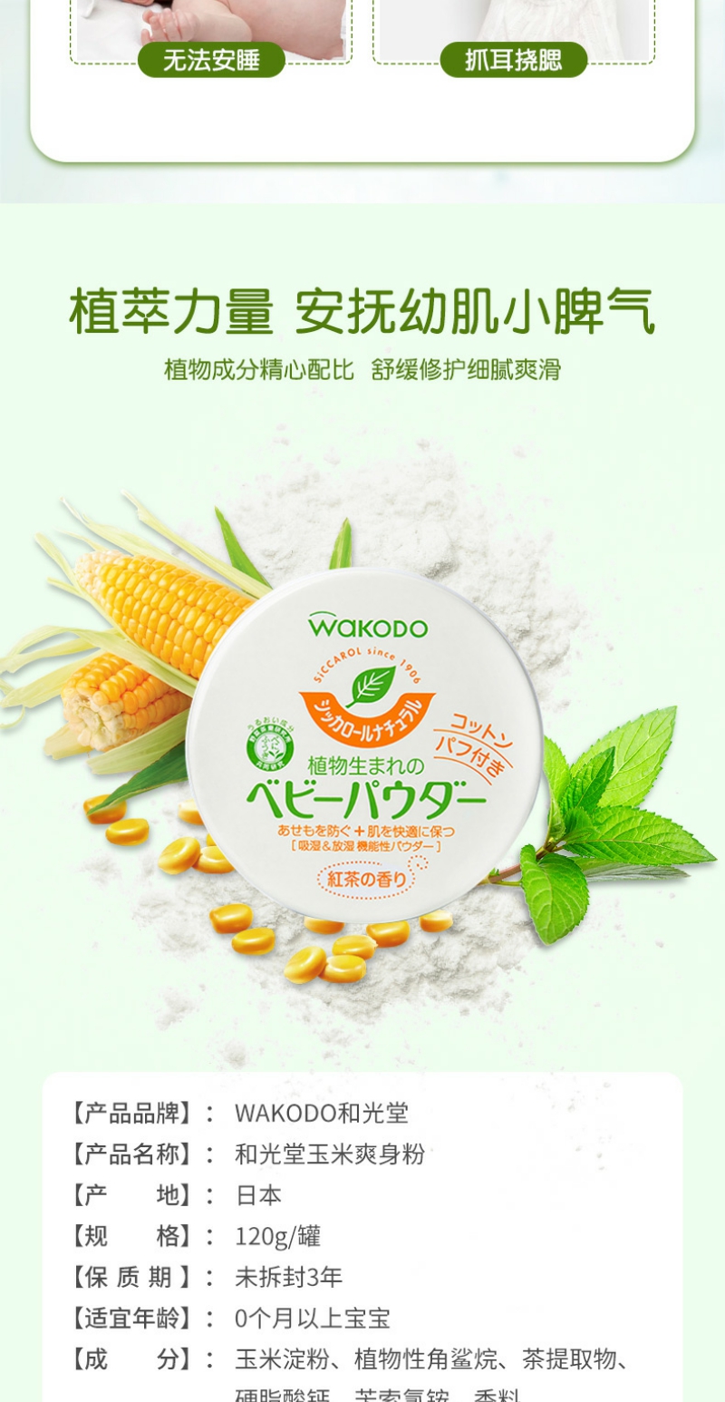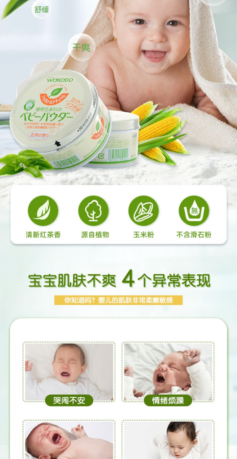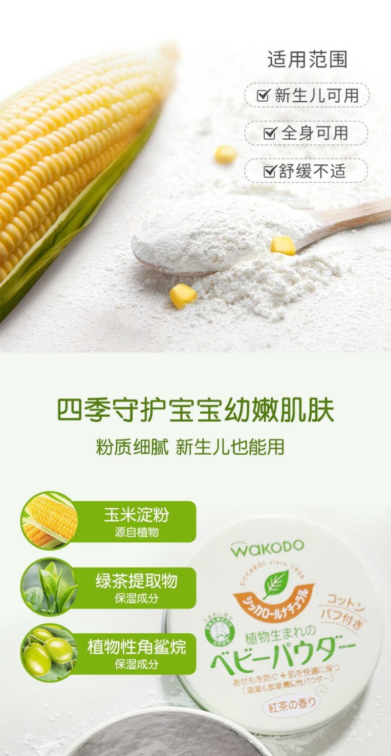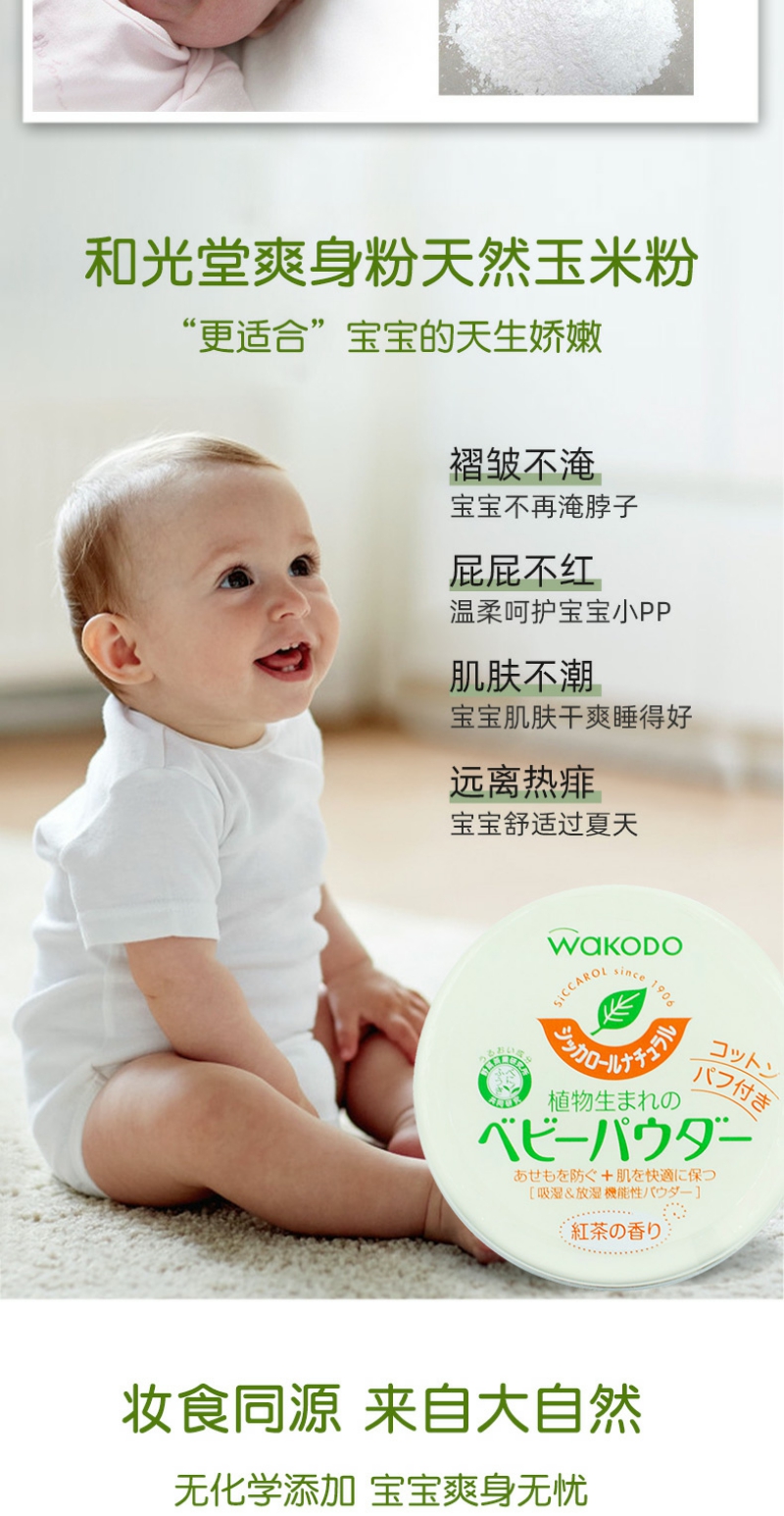 【YZ】日本和光堂玉米爽身粉男女婴幼儿童宝宝红茶香痱子粉不含滑石粉
