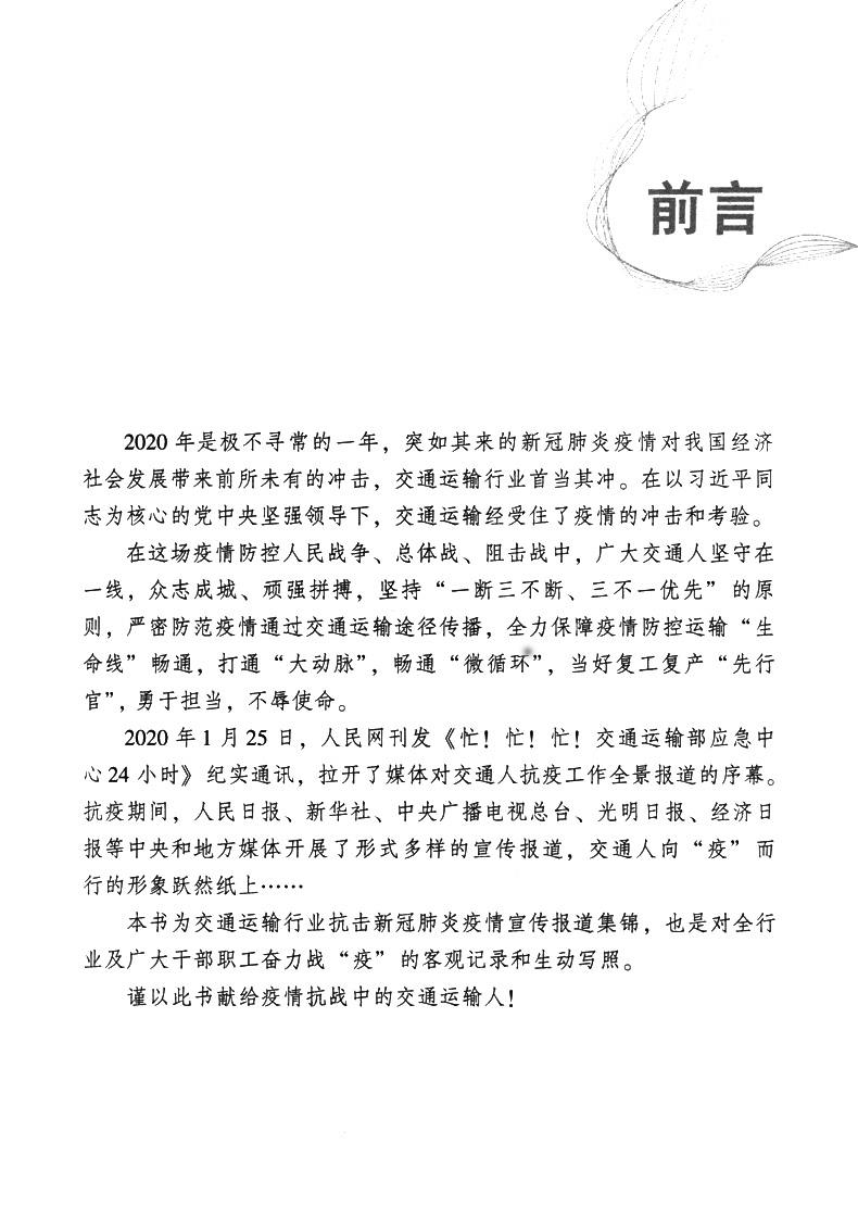 书名:向“疫”而行——交通运输行业抗击新冠疫情宣传报道集锦