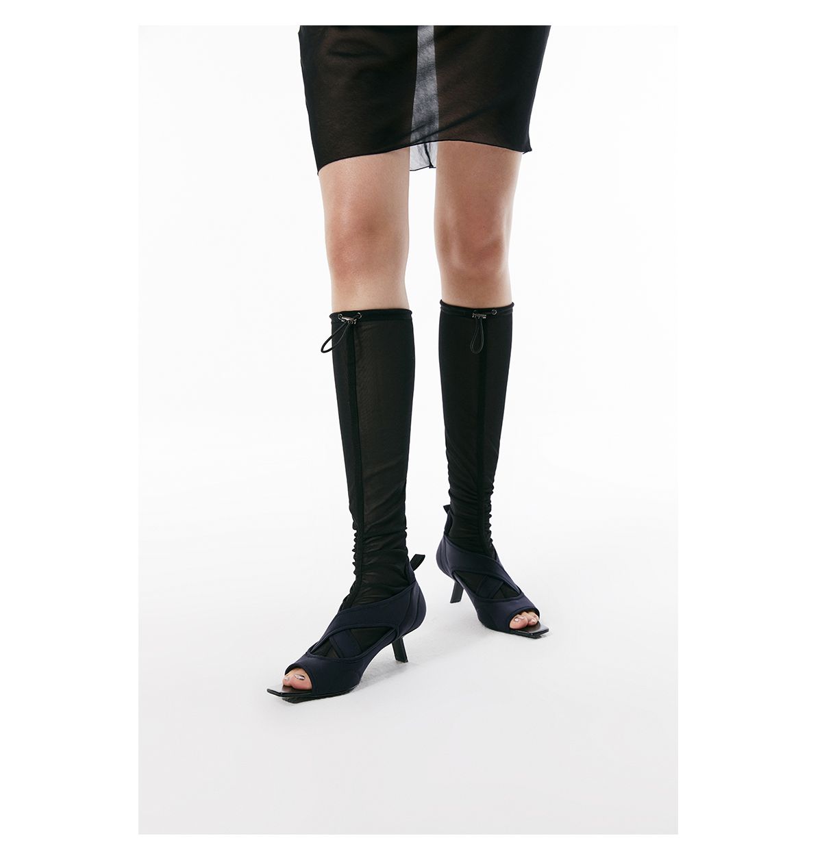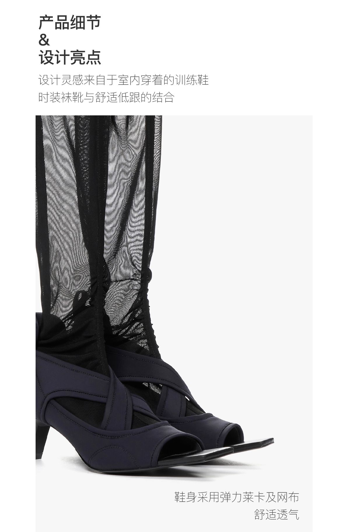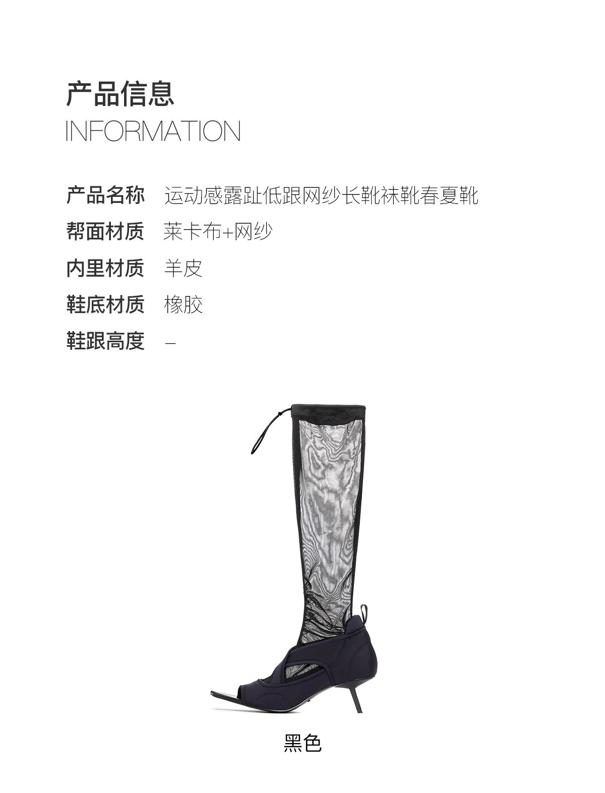 【下架】lost in echo 时装低跟系列 运动感露趾低跟网纱长靴袜靴春夏靴