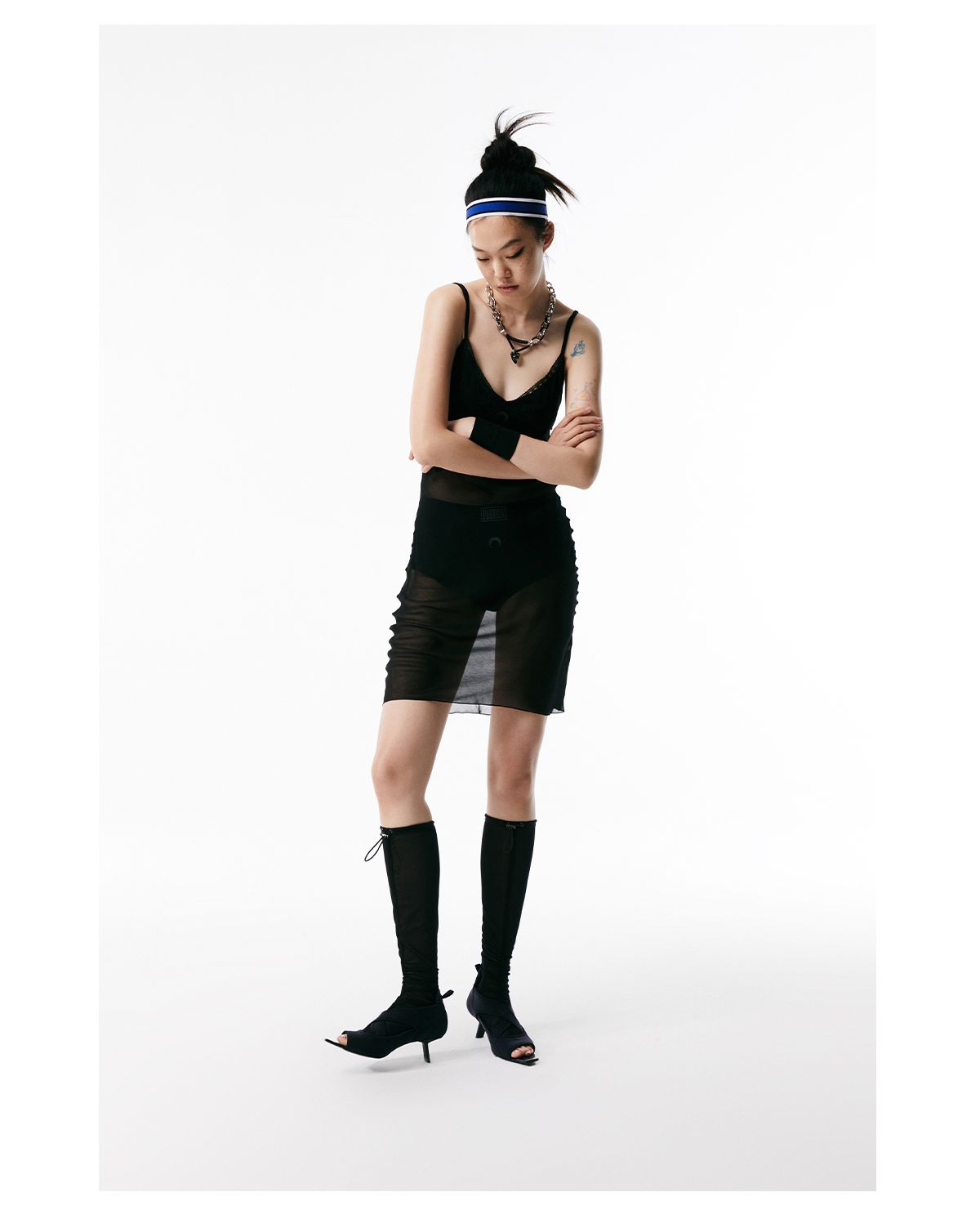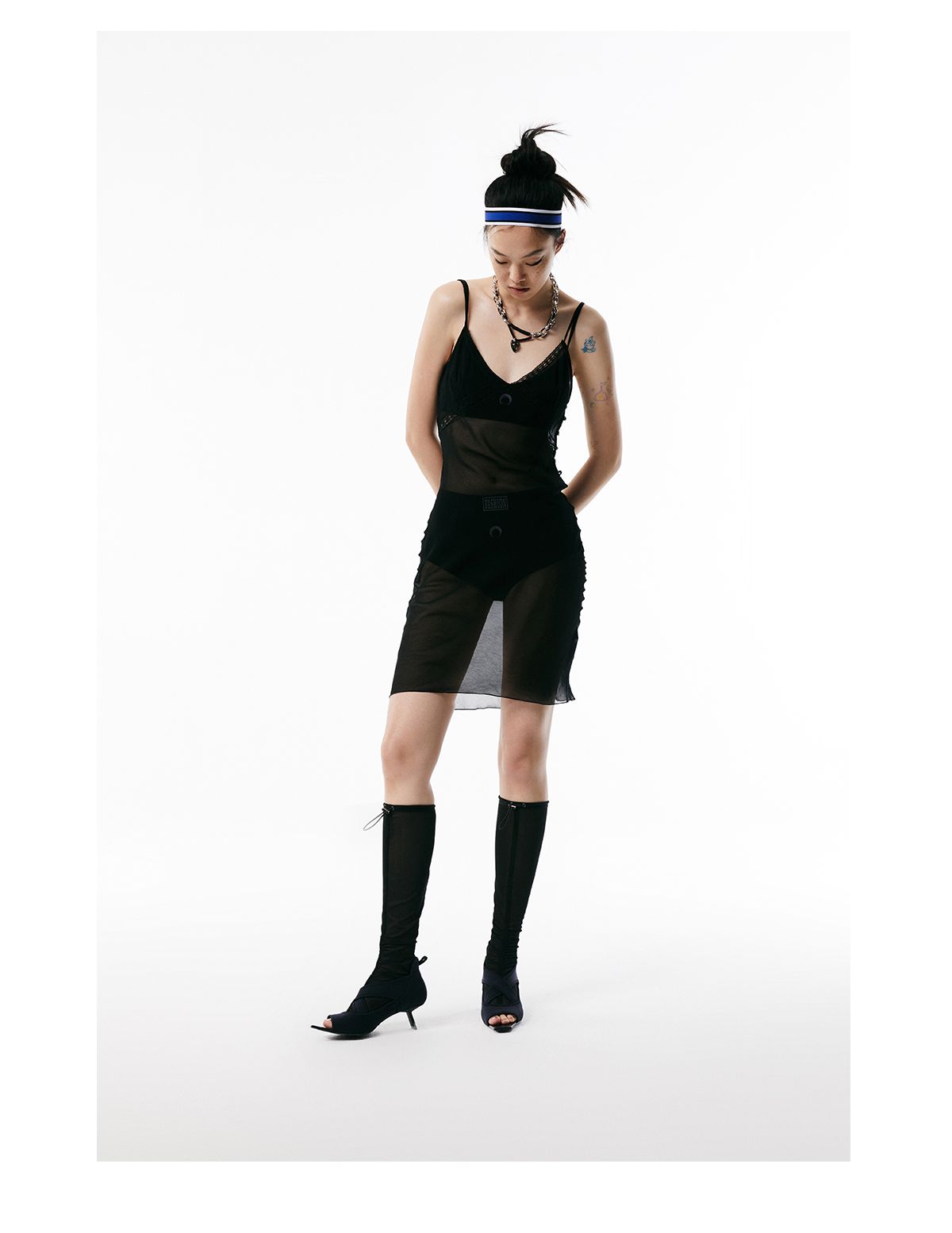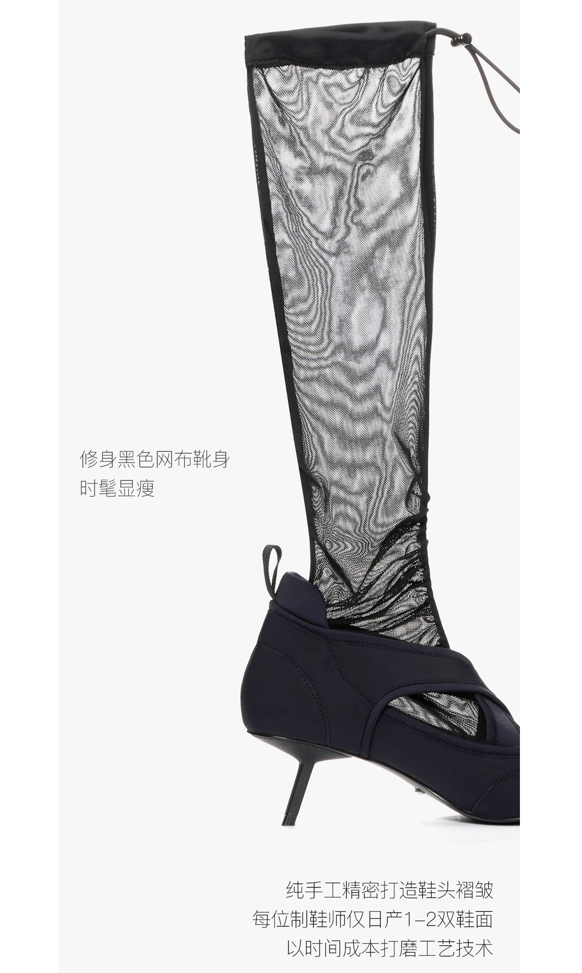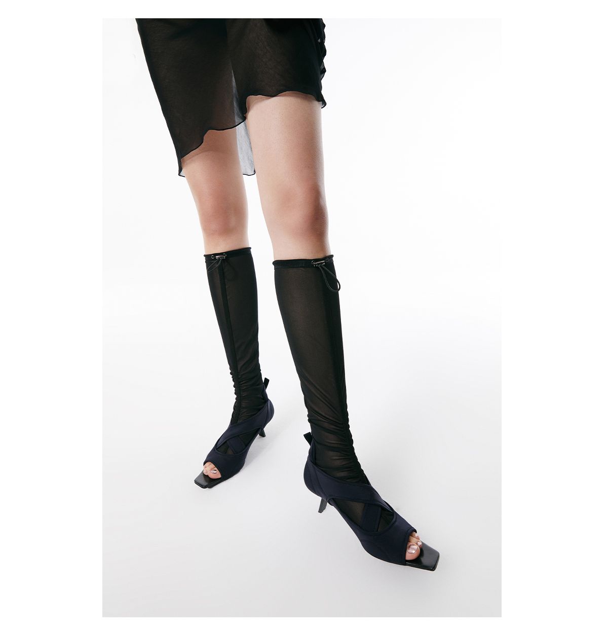 【下架】lost in echo 时装低跟系列 运动感露趾低跟网纱长靴袜靴春夏靴