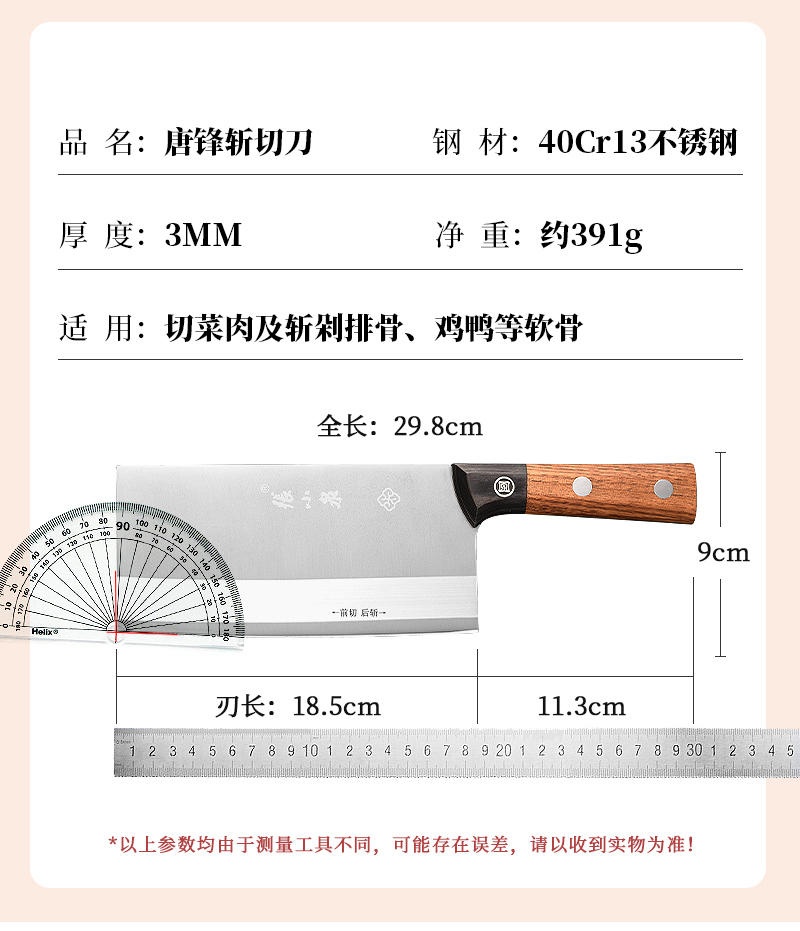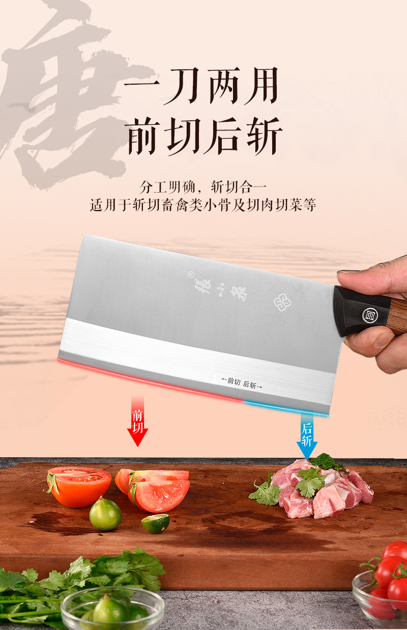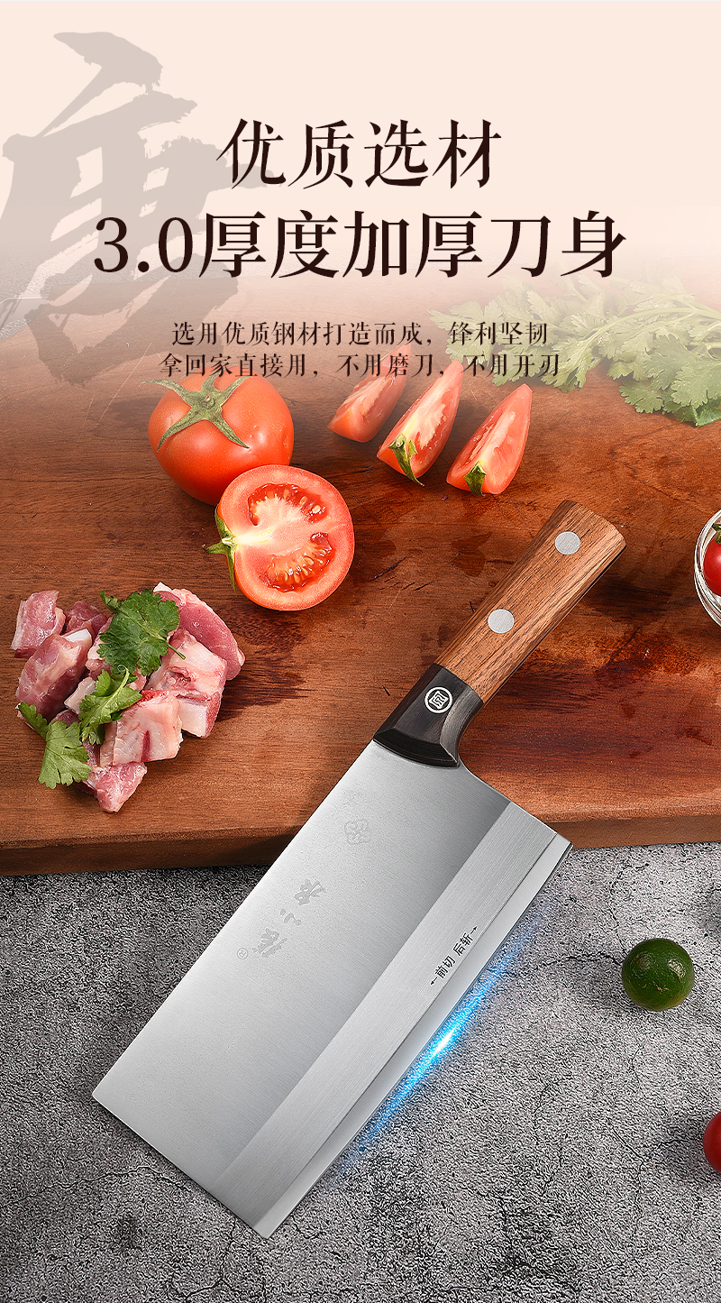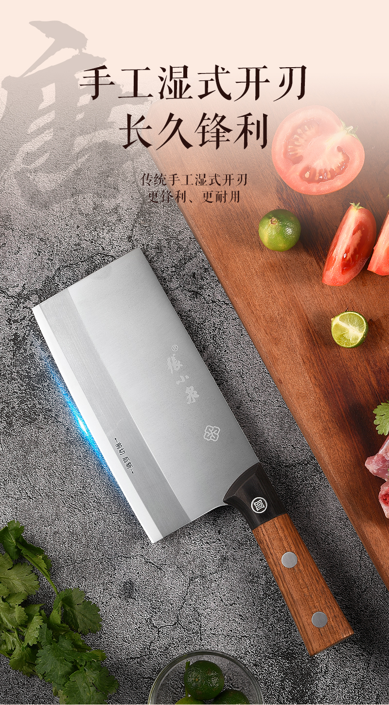 【赠同品牌水果刀!】张小泉不锈钢家用厨房用刀锋利菜刀 斩切刀 前切后斩