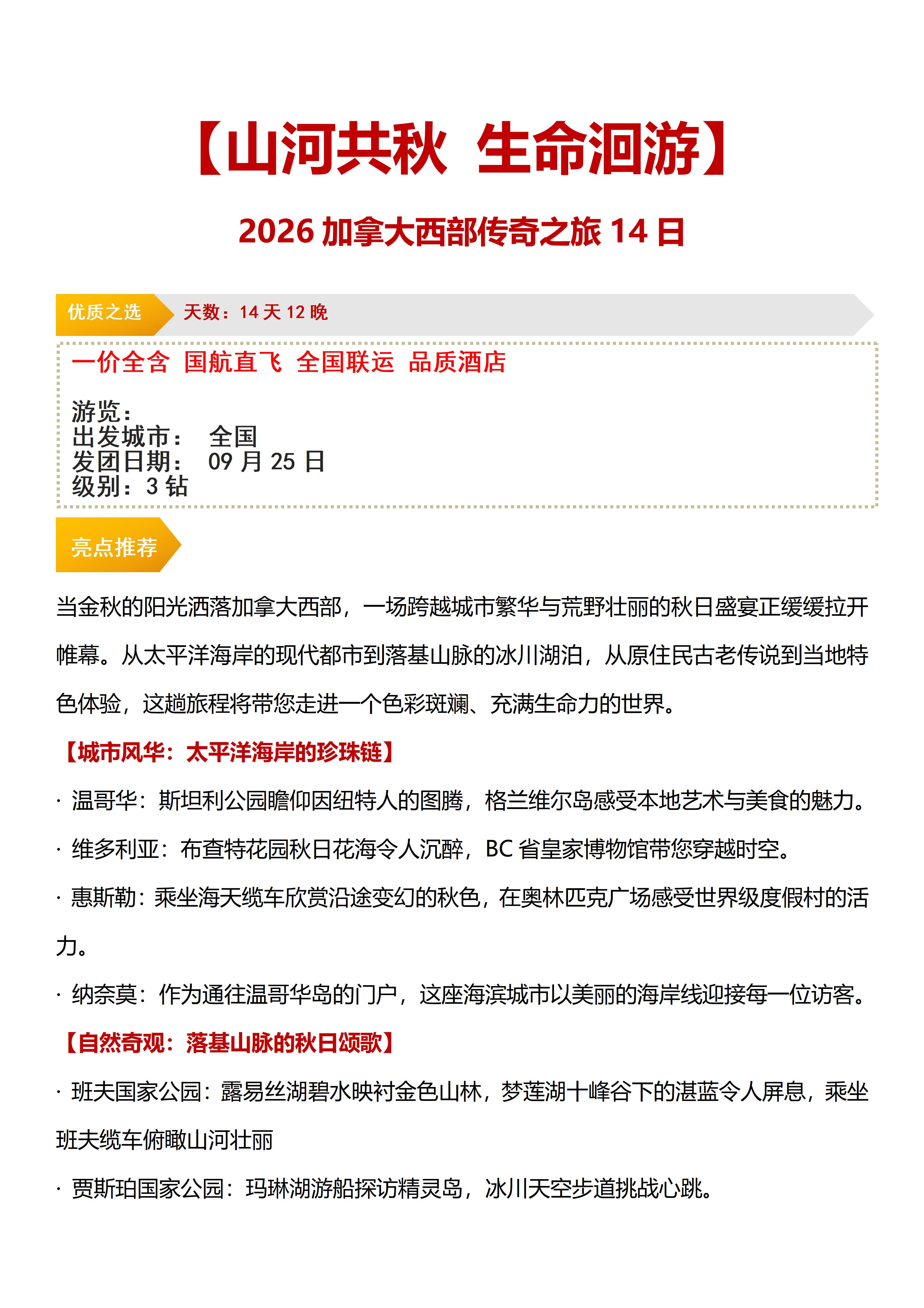 【山河共秋 生命洄游】 2026加拿大西部传奇之旅14日