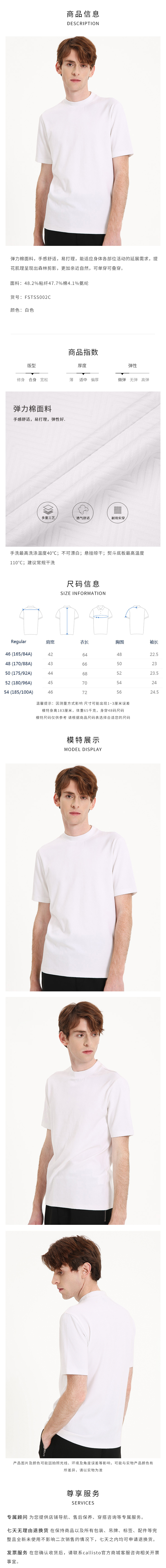 callisto白色提花肌理弹力棉短袖T恤 FSTSS002C WH