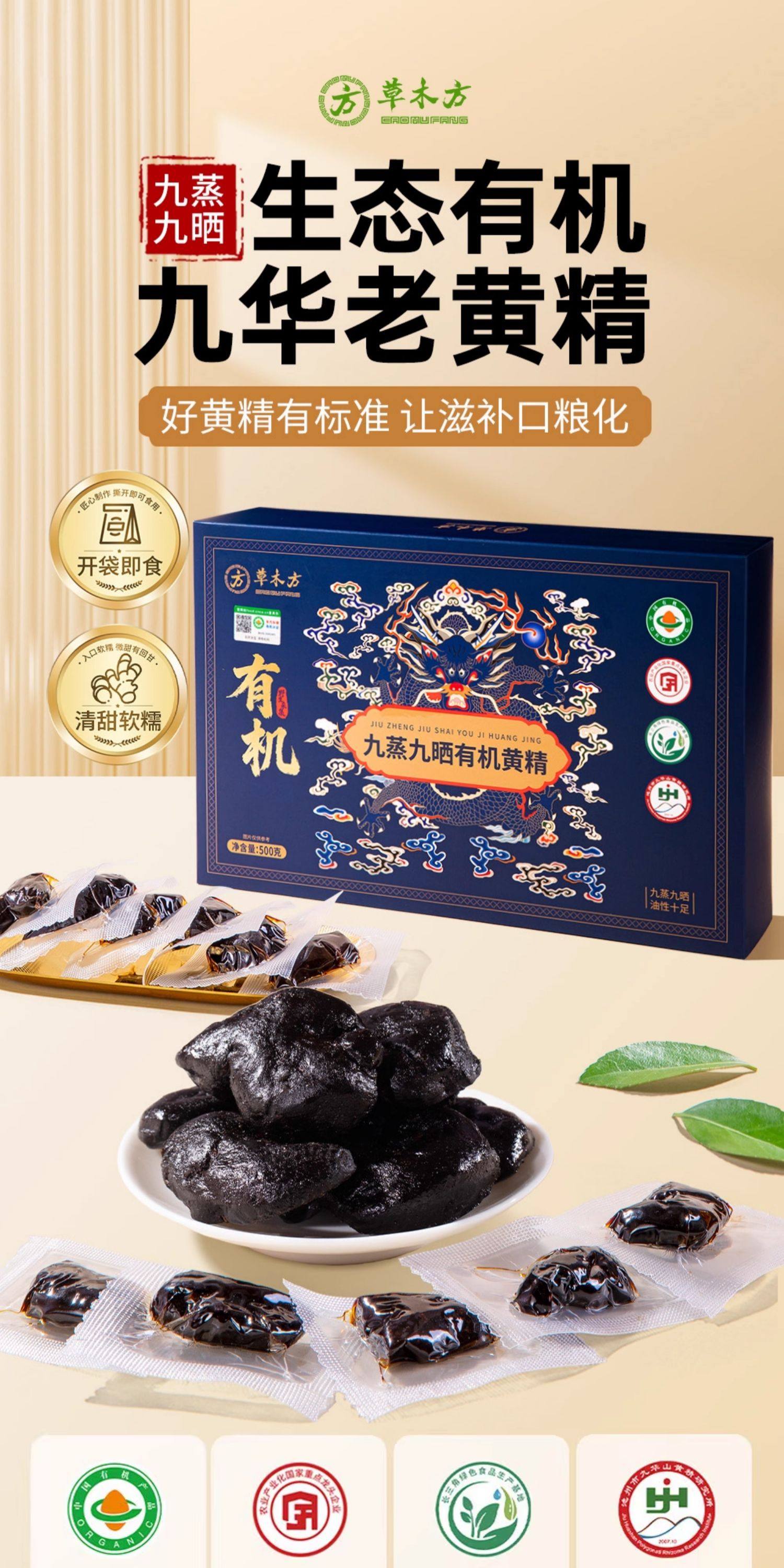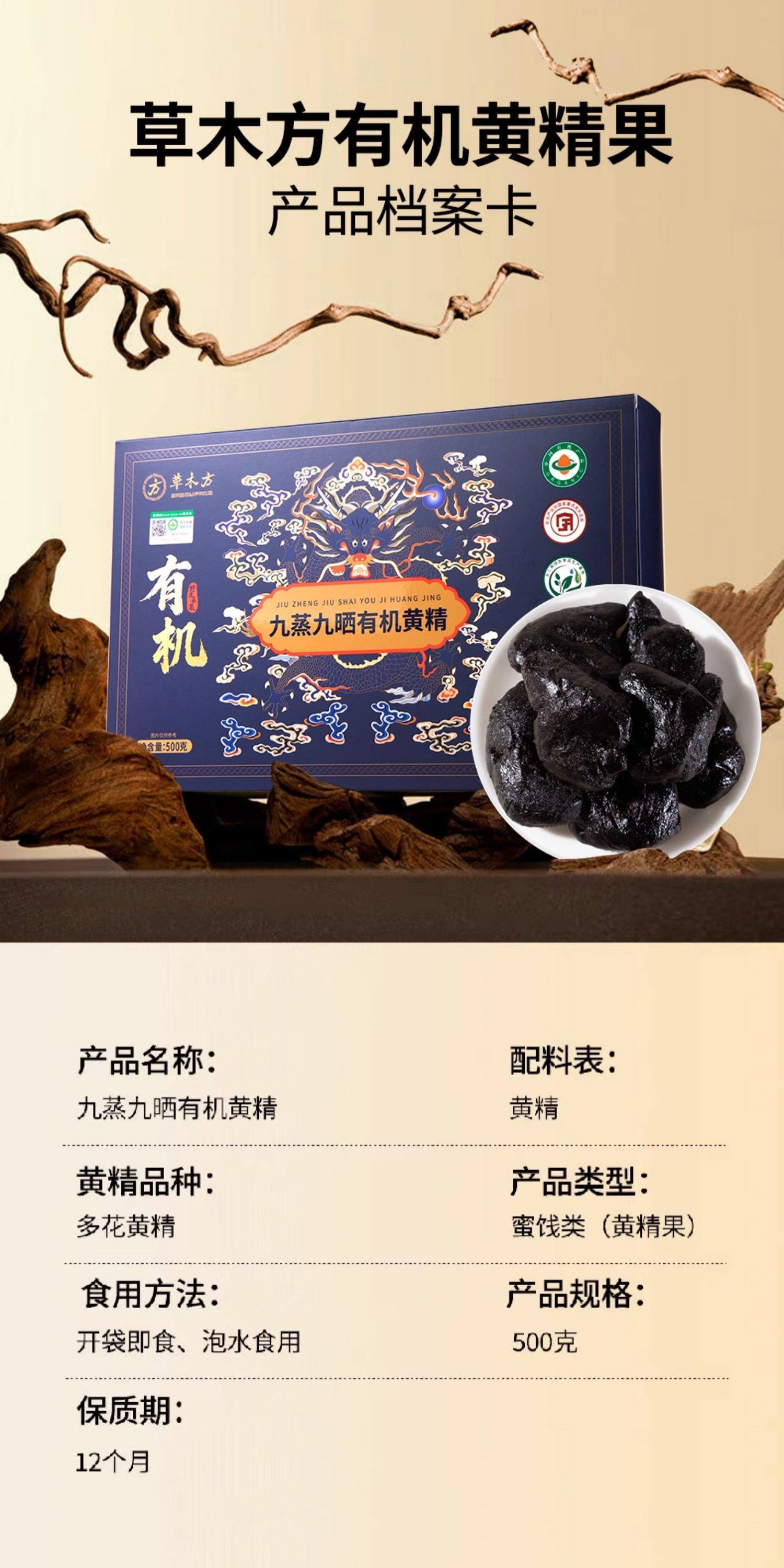 草木方有机黄精九蒸九制九晒500g即食九华山正品官方旗舰店礼盒装
