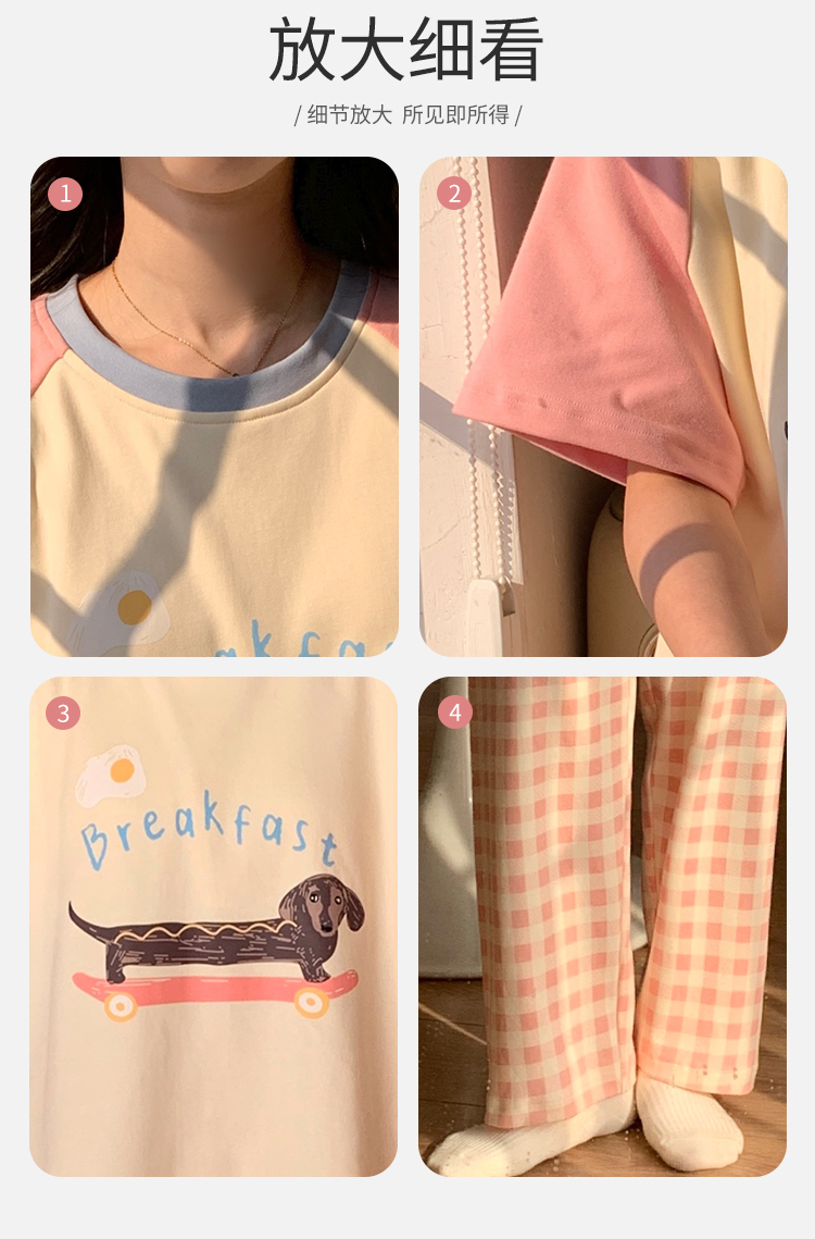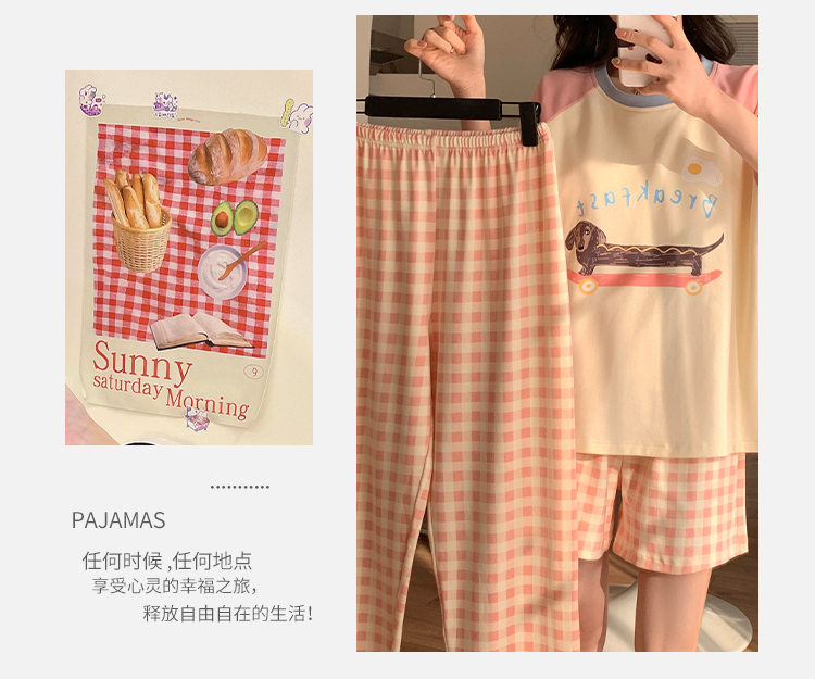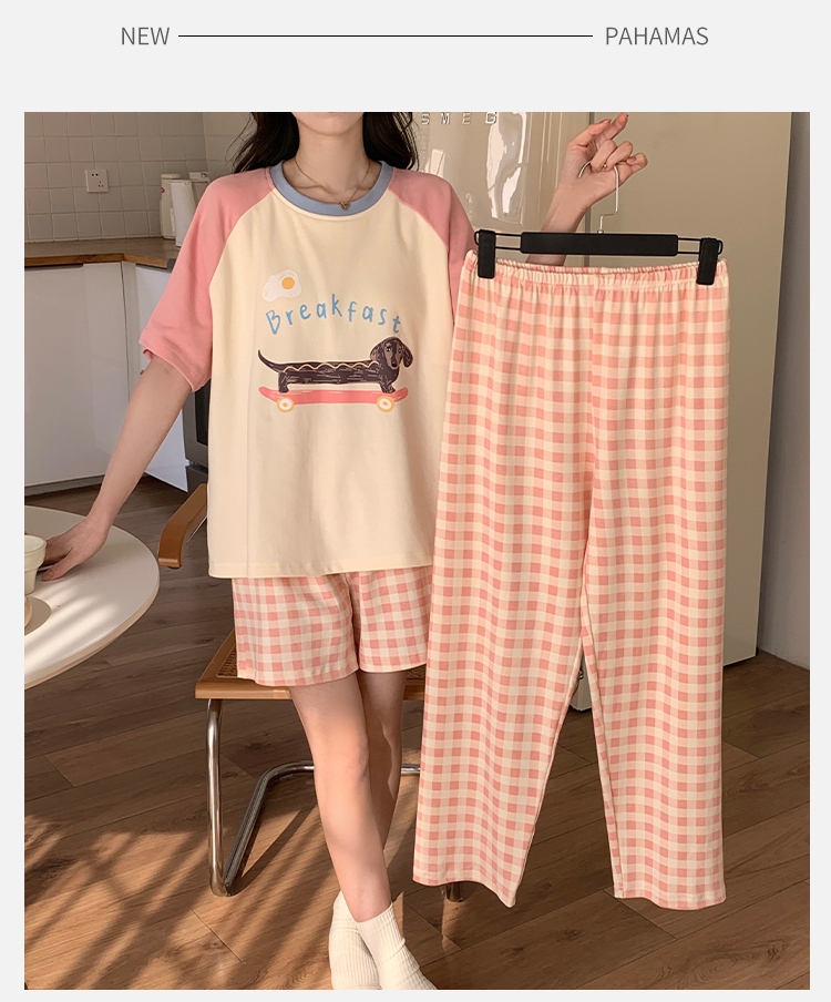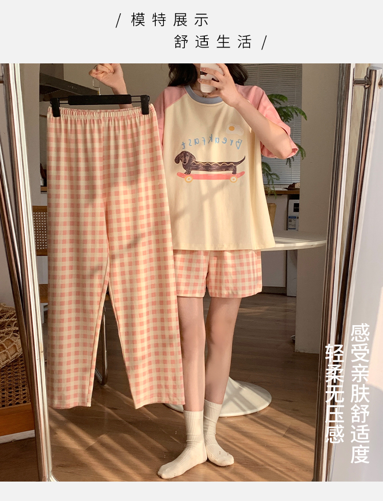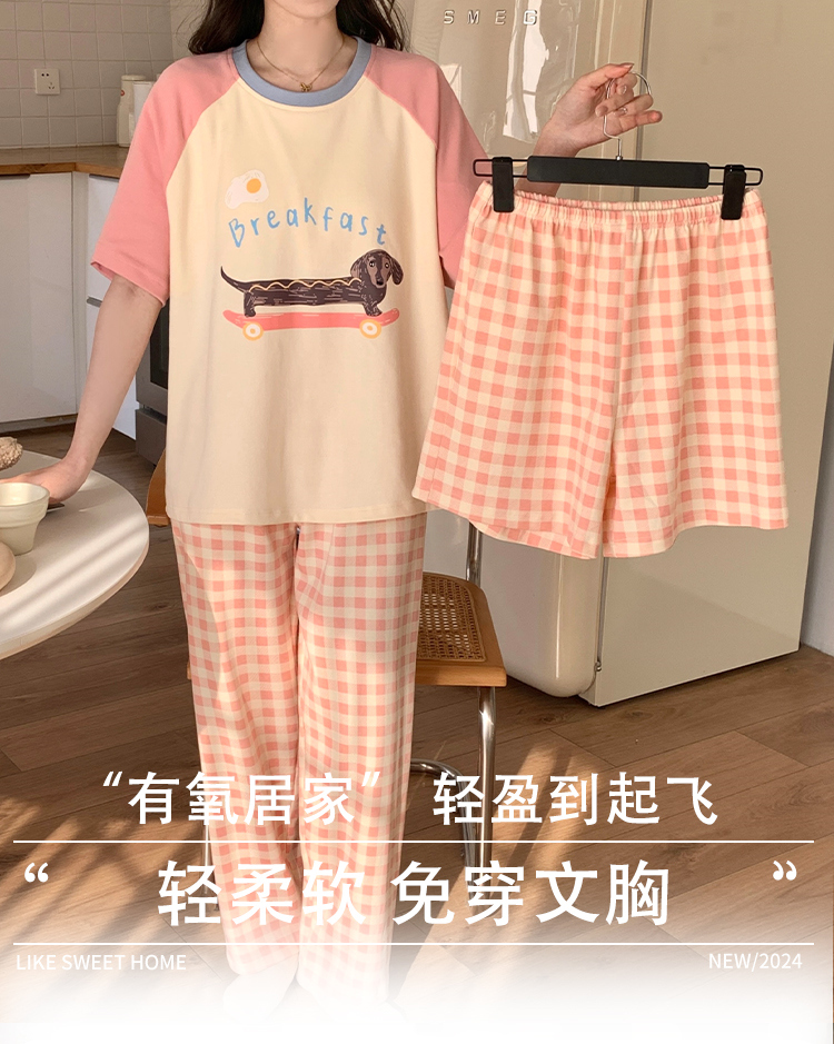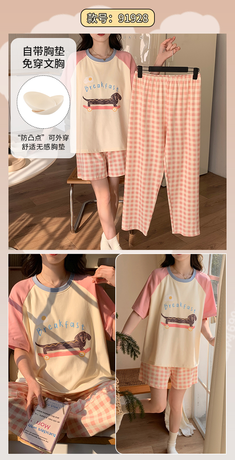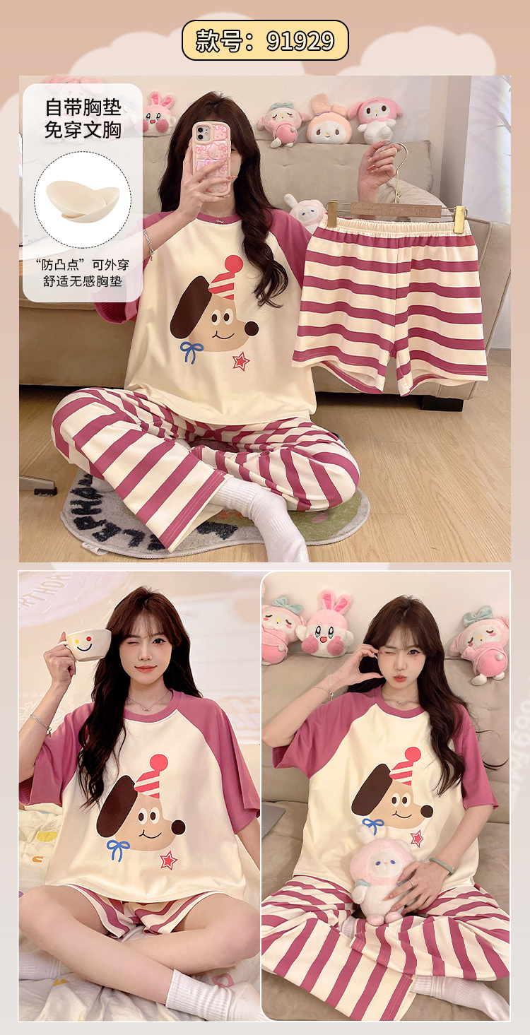 【GZ】无忧购春夏季新款卡通腊肠狗仿棉家居服睡衣三件套带胸垫套装