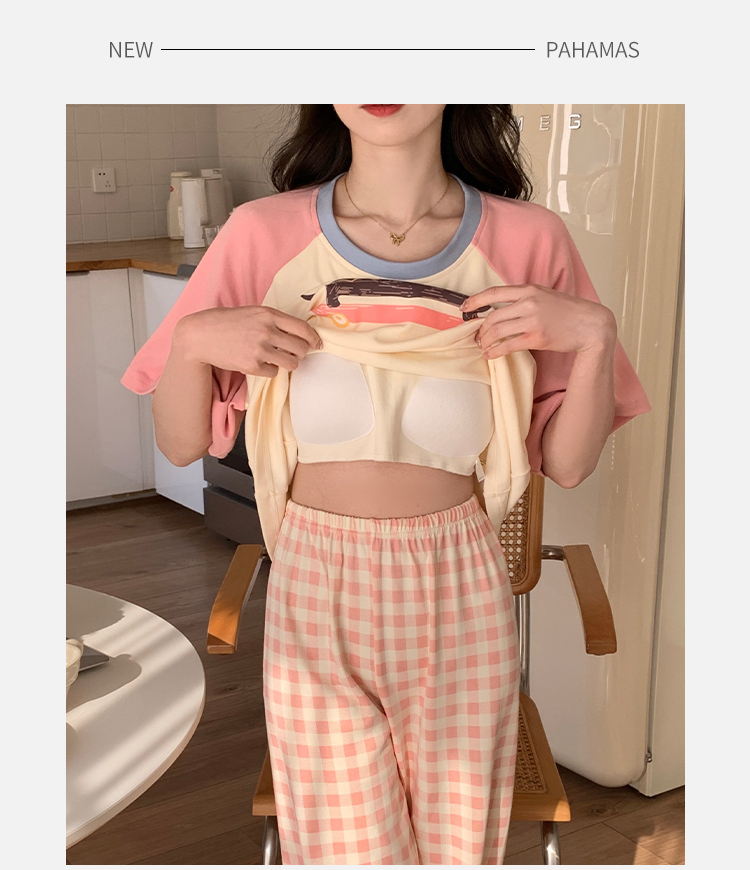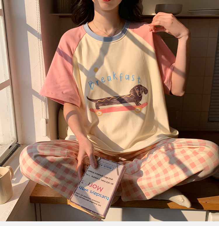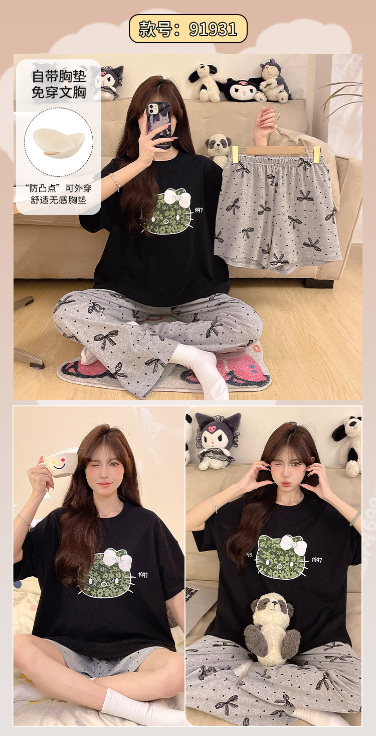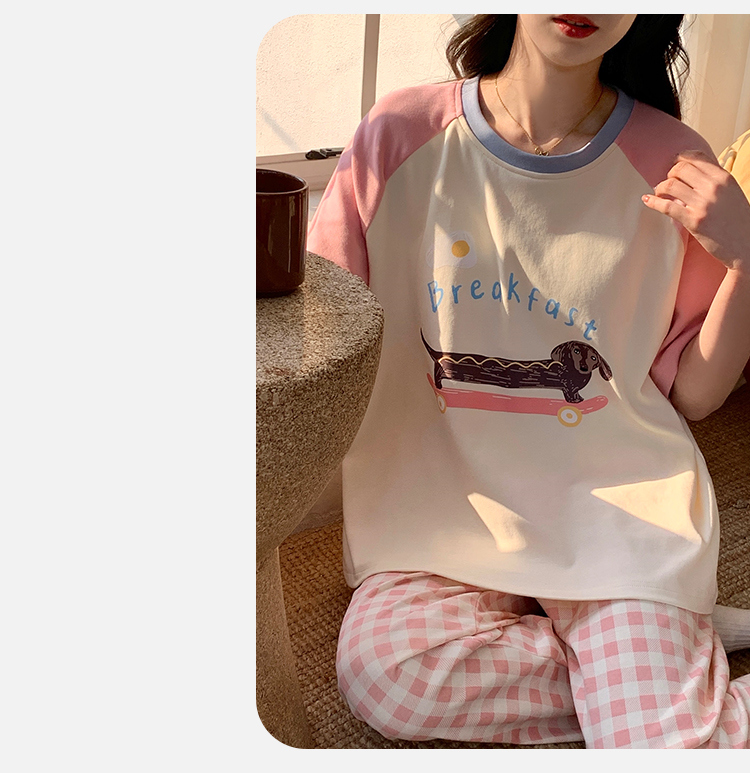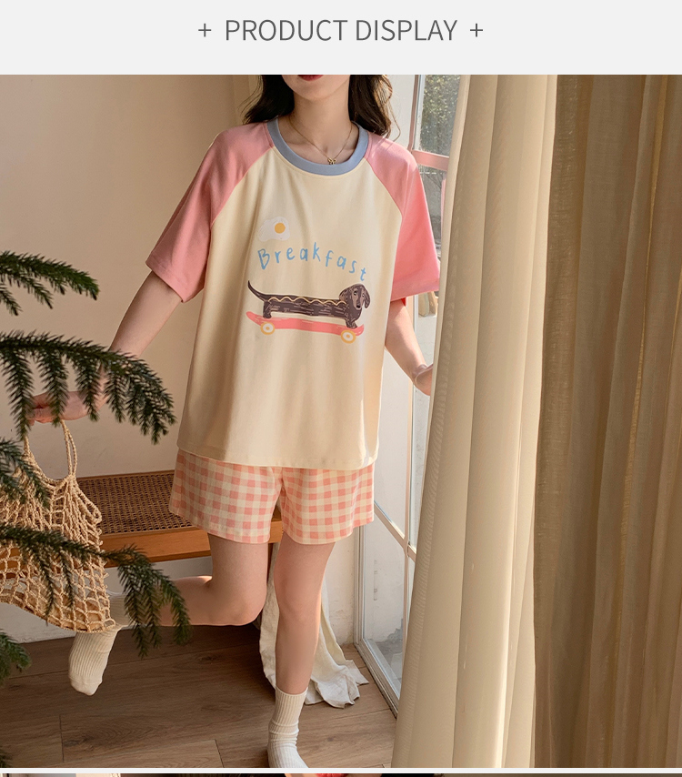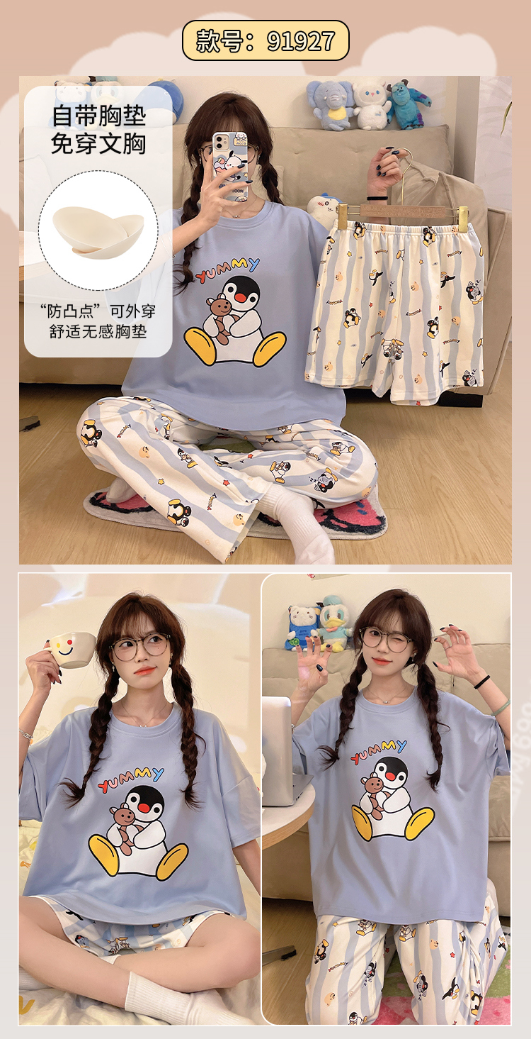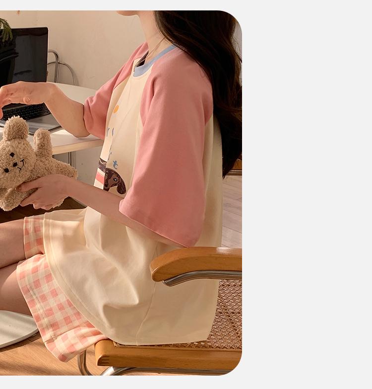 【GZ】无忧购春夏季新款卡通腊肠狗仿棉家居服睡衣三件套带胸垫套装