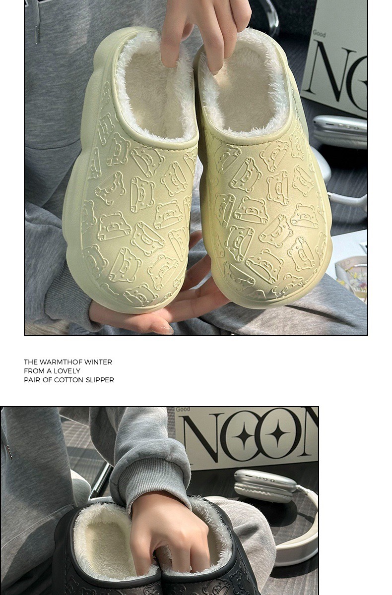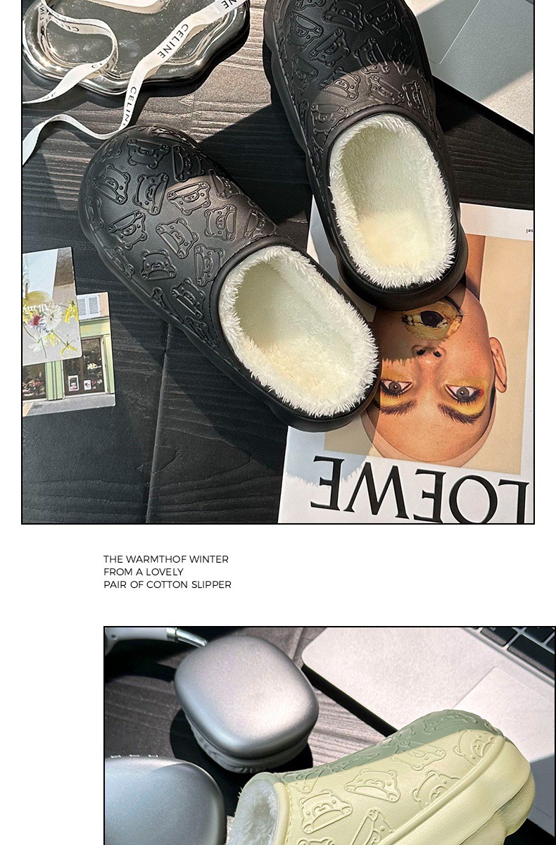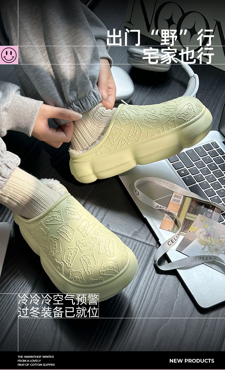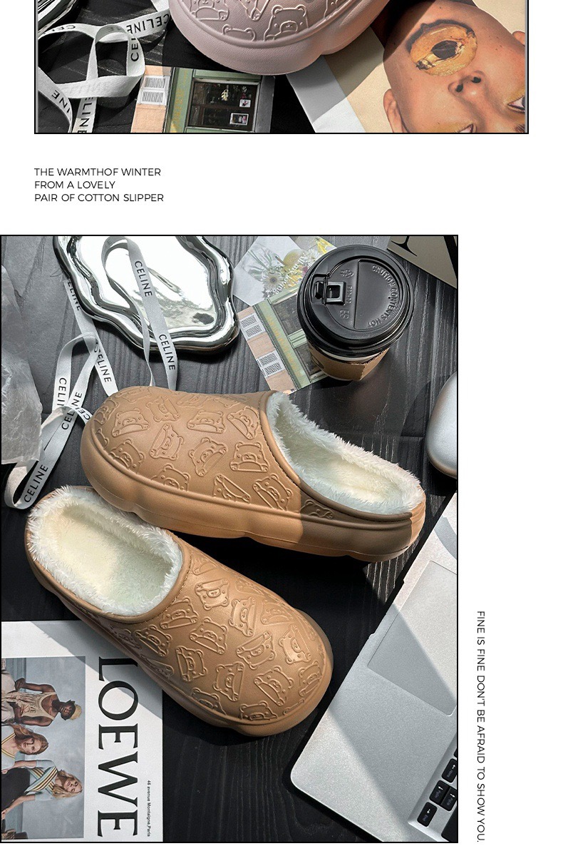 【YW】无忧购韩版卡通小熊印花情侣款居家外穿保暖棉拖鞋9716(截单后7天发货)