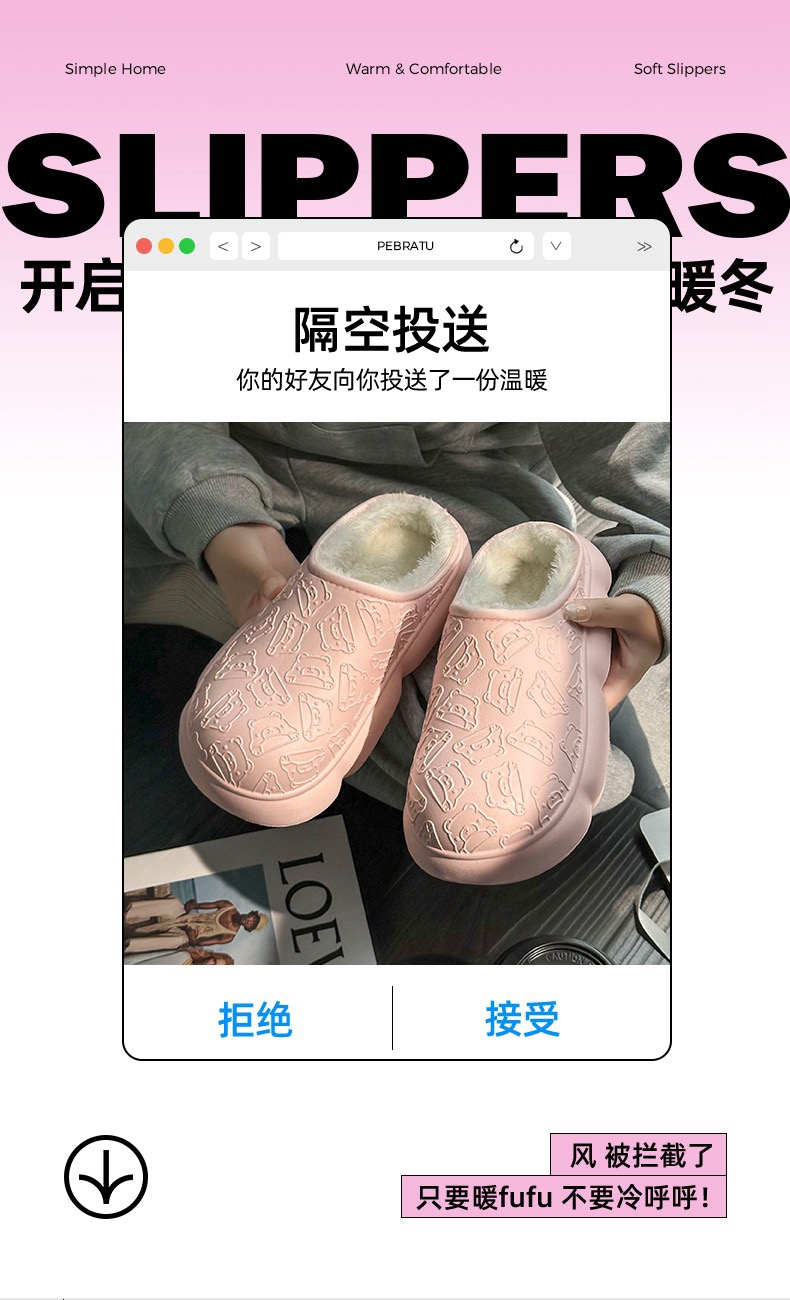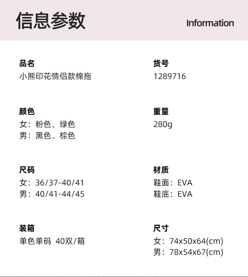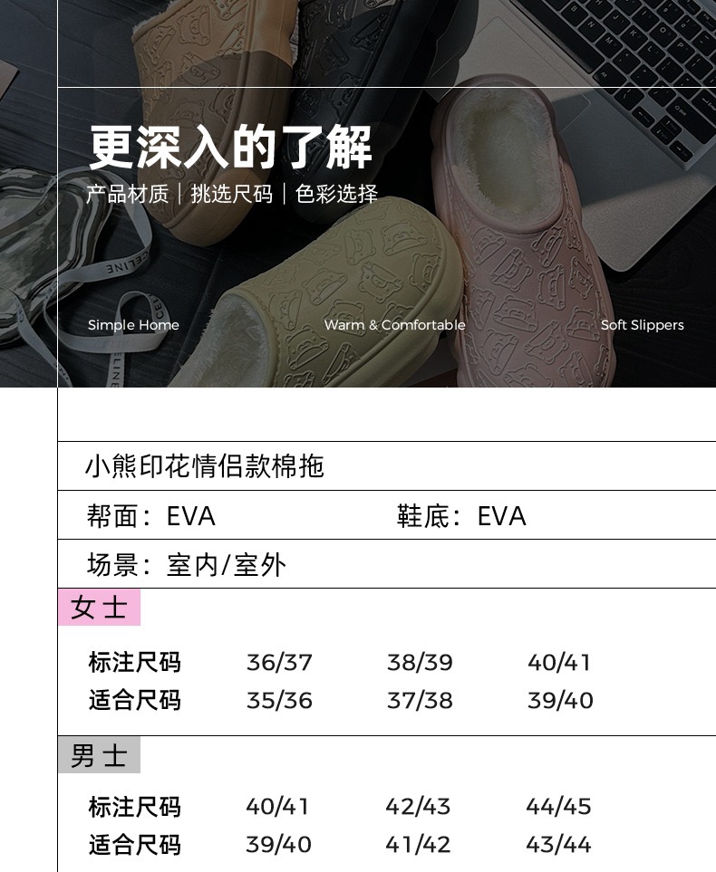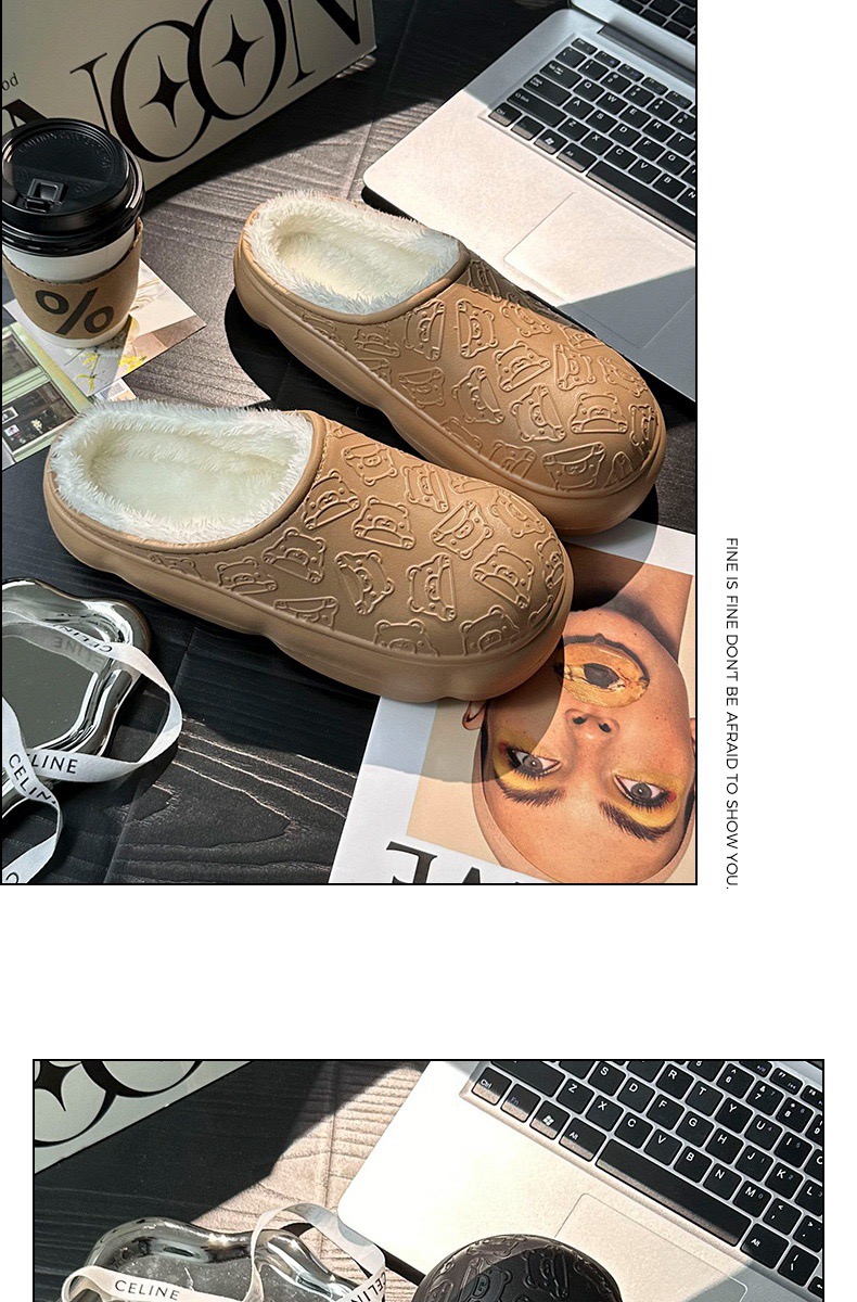 【YW】无忧购韩版卡通小熊印花情侣款居家外穿保暖棉拖鞋9716(截单后7天发货)
