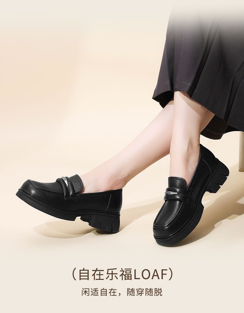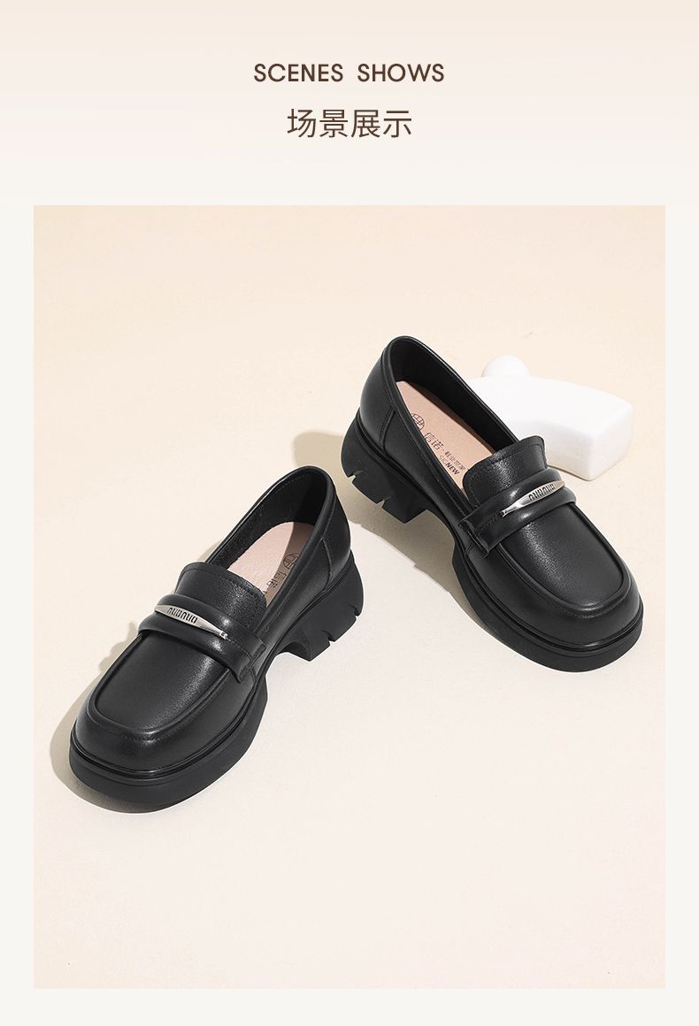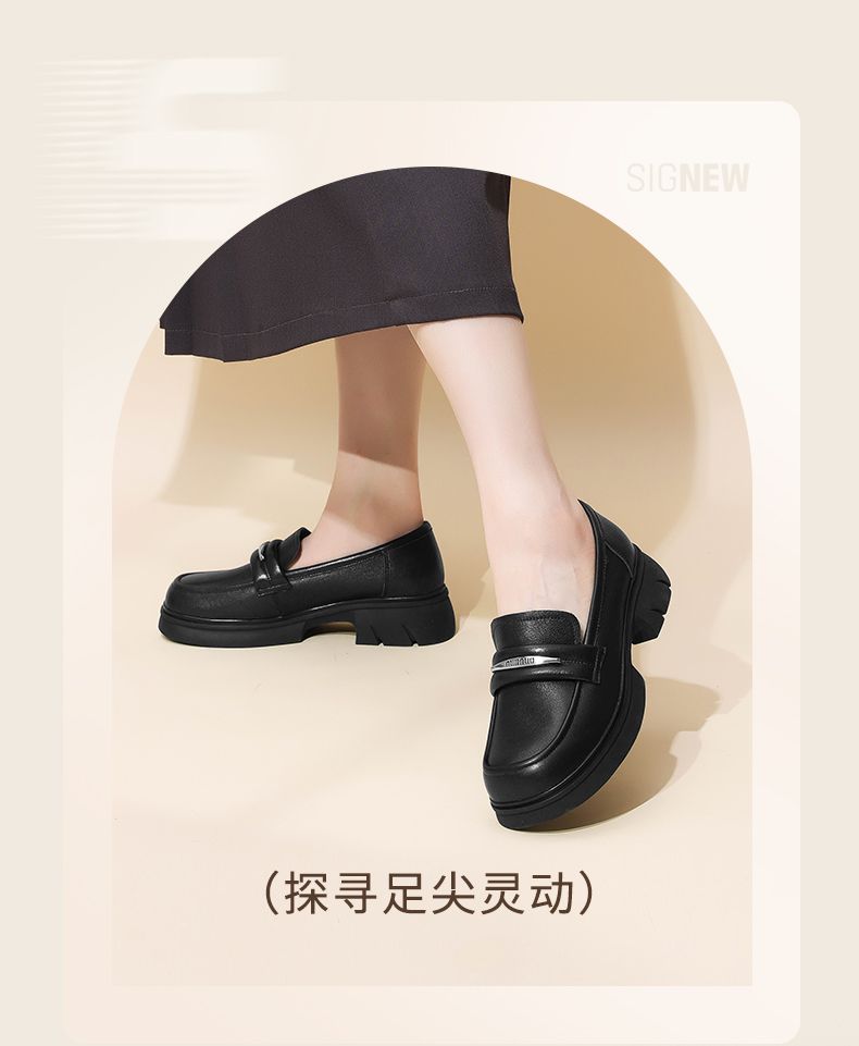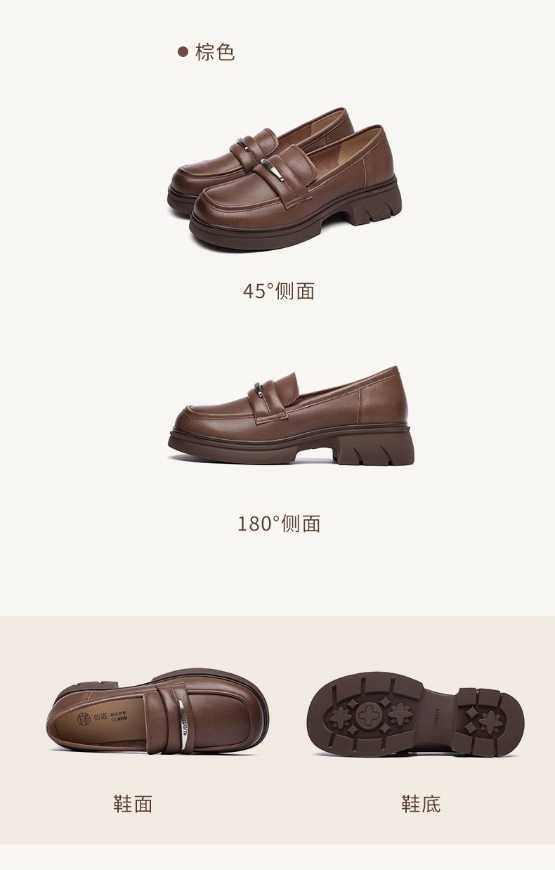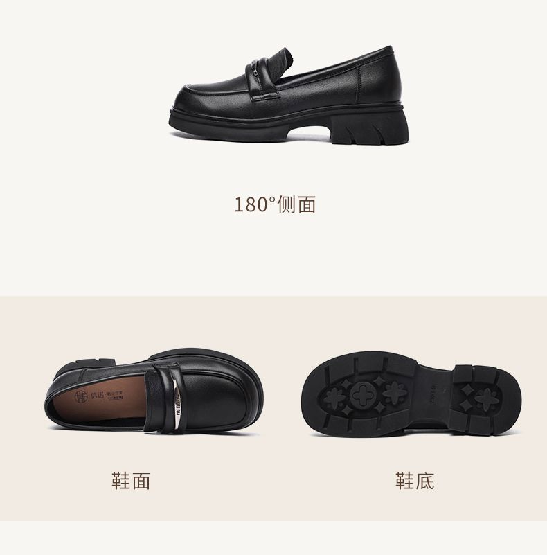 信诺 真皮舒适女鞋 2024新款秋季一脚蹬软底单鞋复古乐福鞋小皮鞋Q1317-3