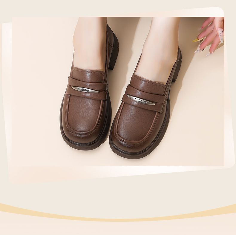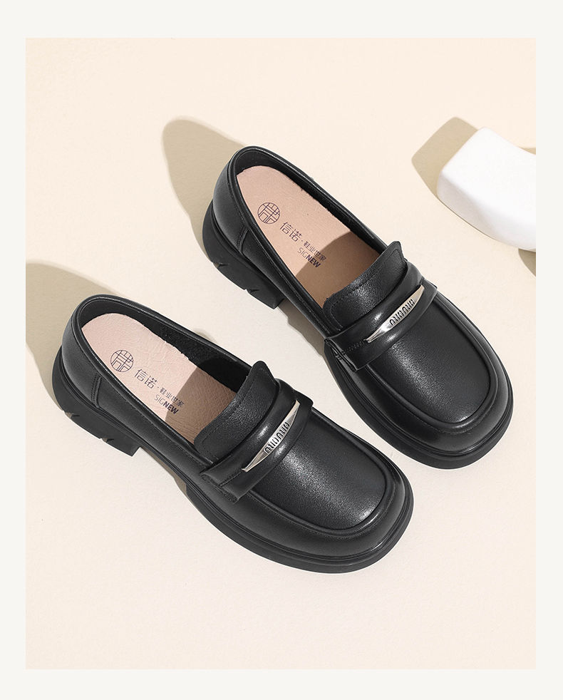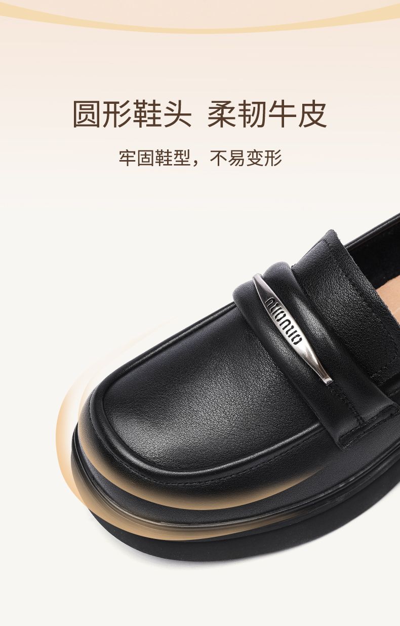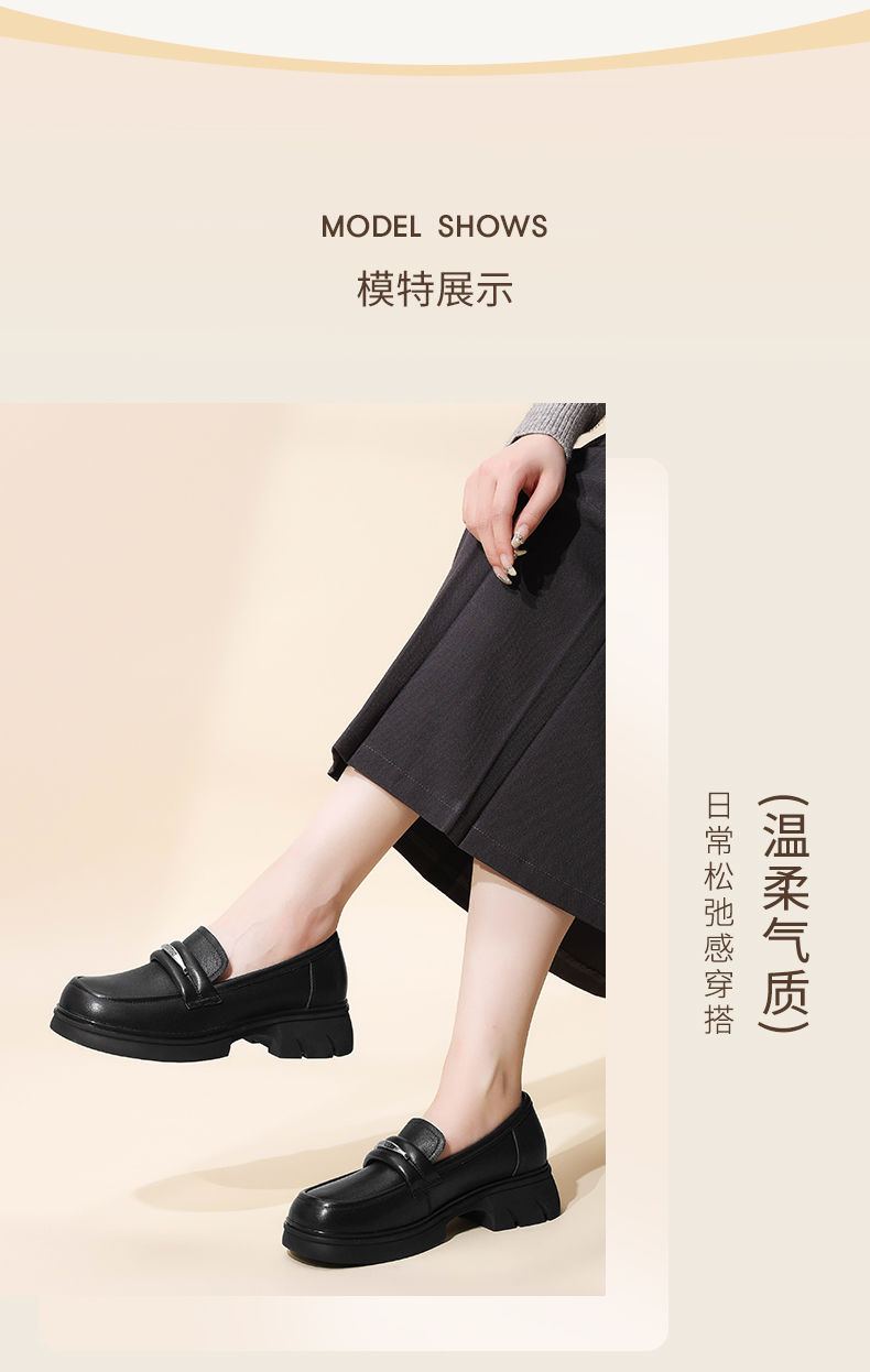 信诺 真皮舒适女鞋 2024新款秋季一脚蹬软底单鞋复古乐福鞋小皮鞋Q1317-3