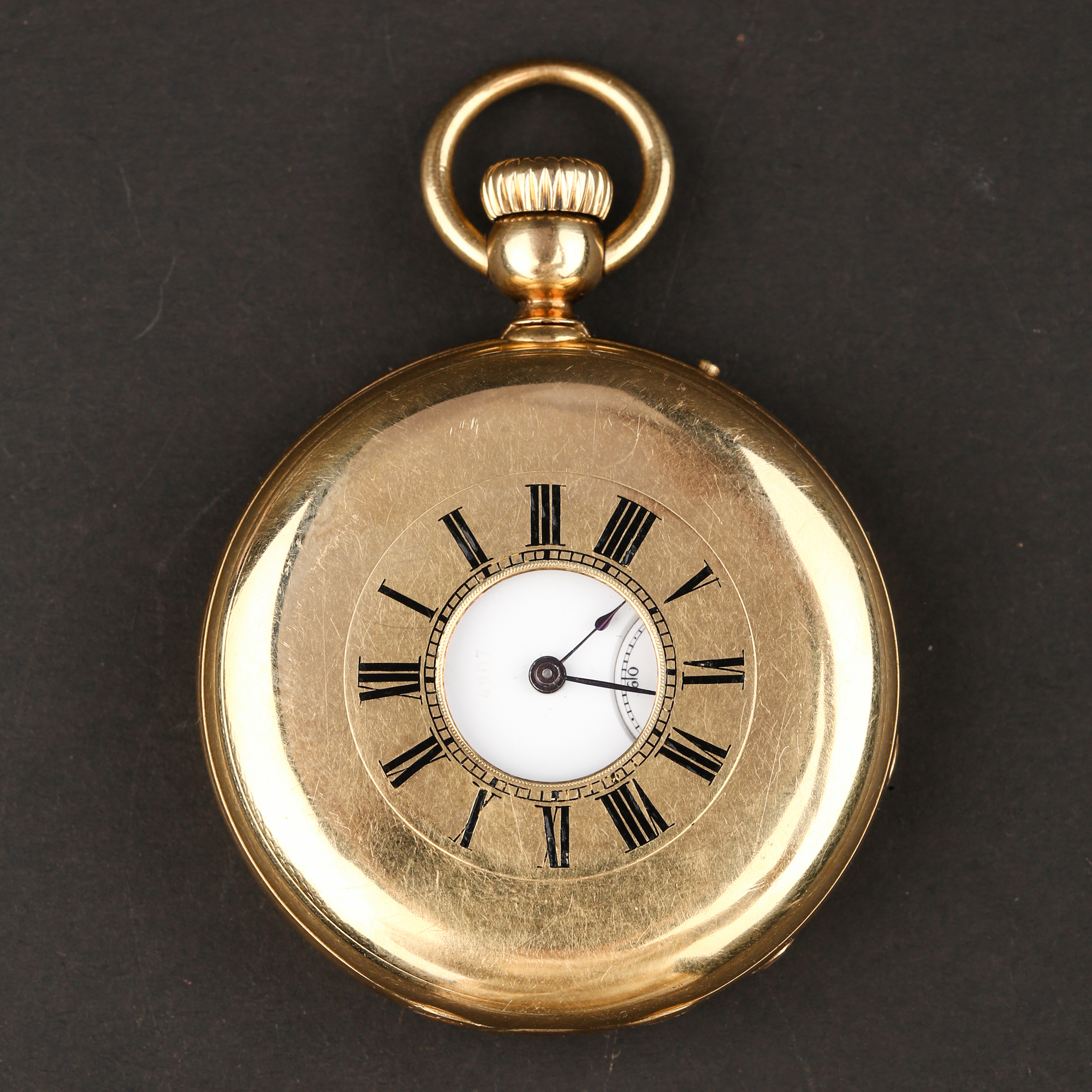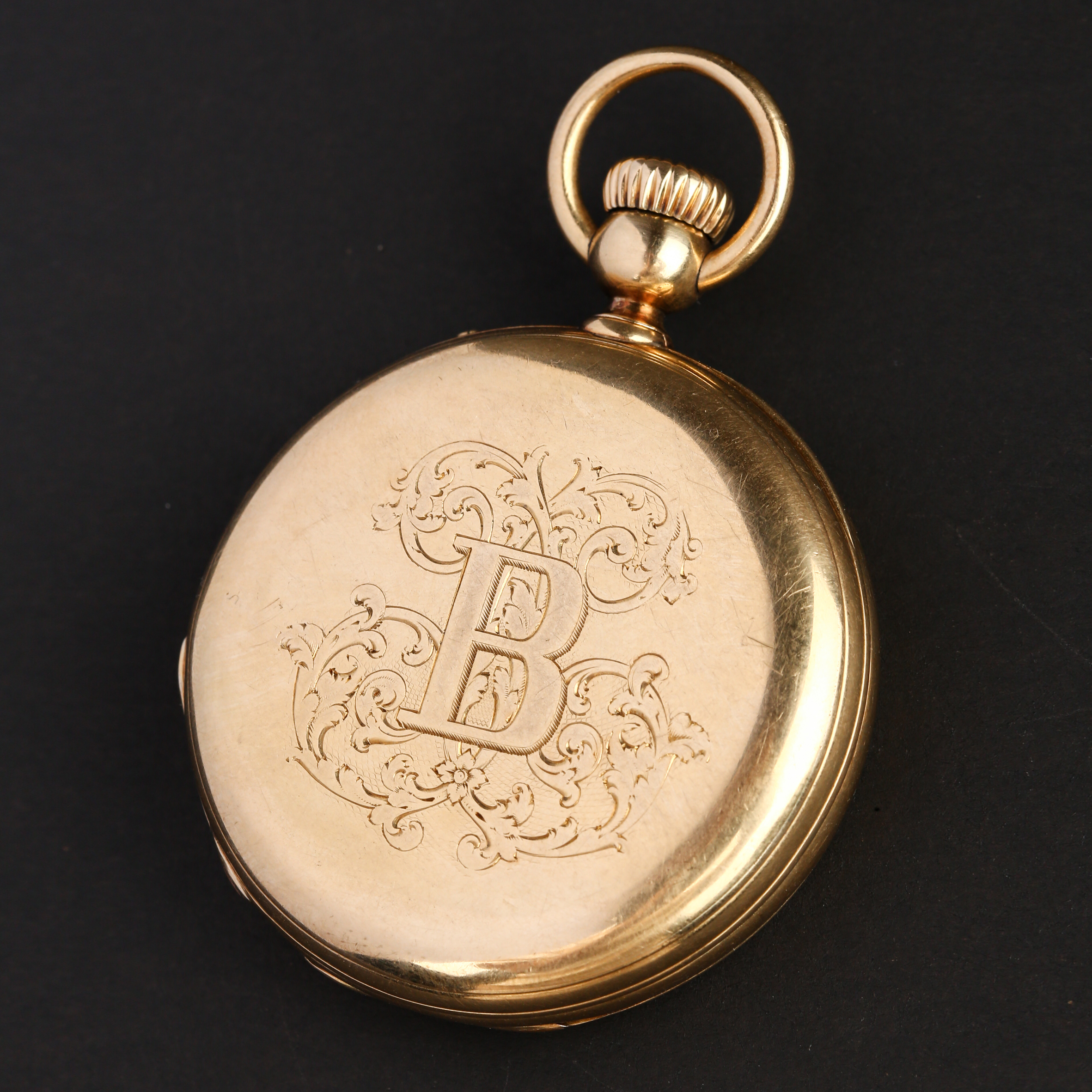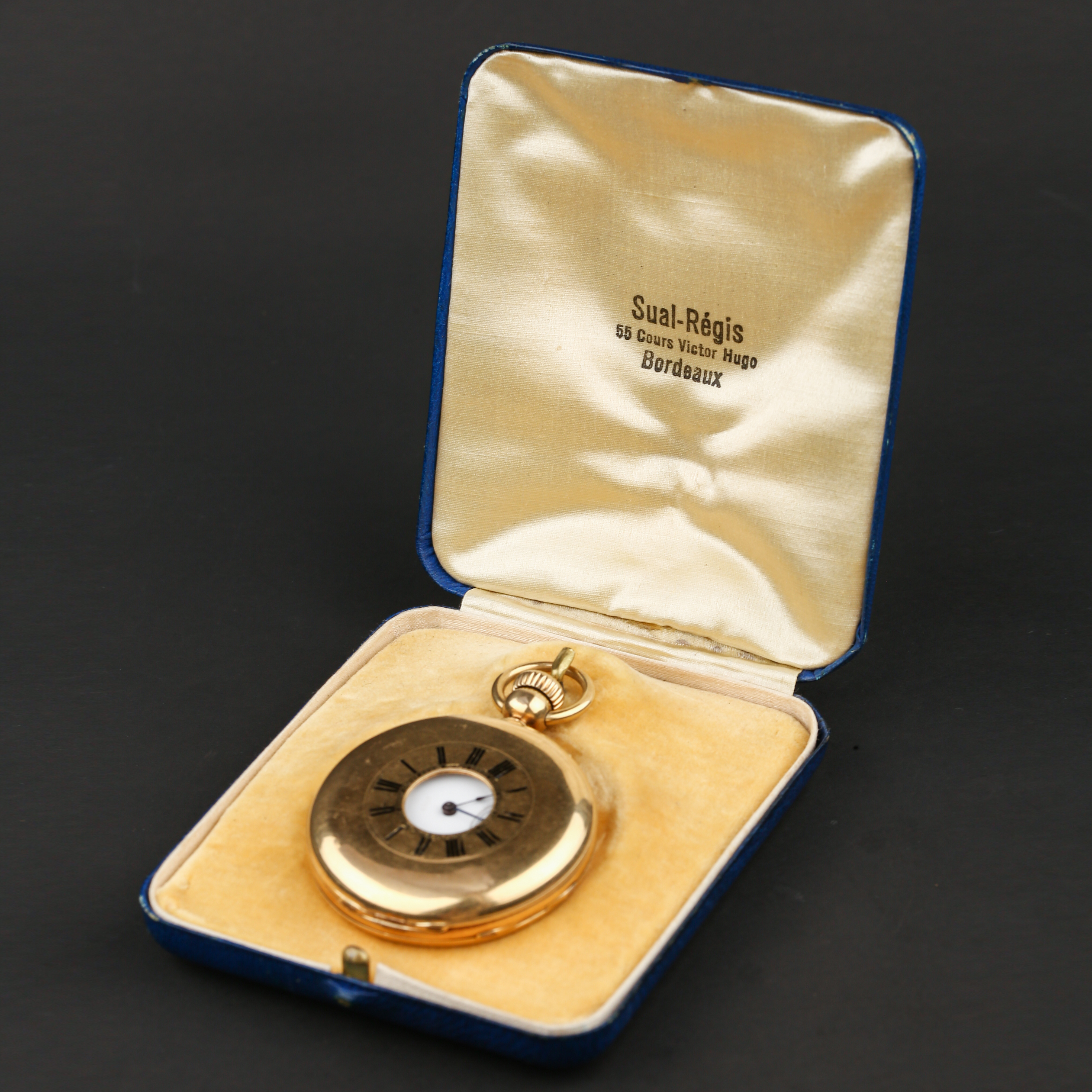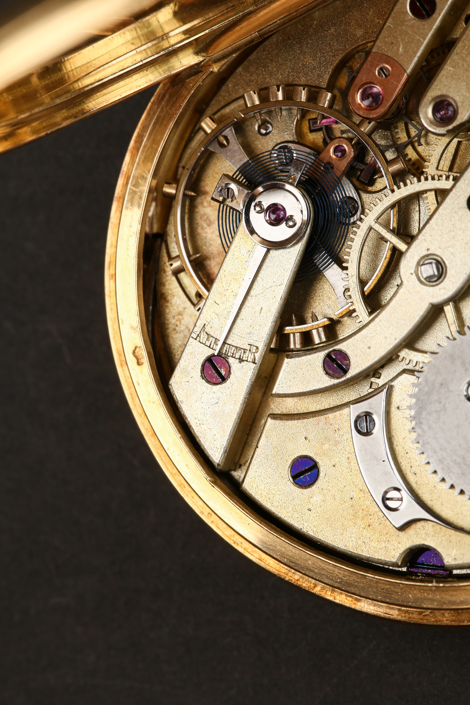 独角鹿西洋古董钟表瑞士宝矶半猎壳三开18K金雕花怀表珐琅彩钟面