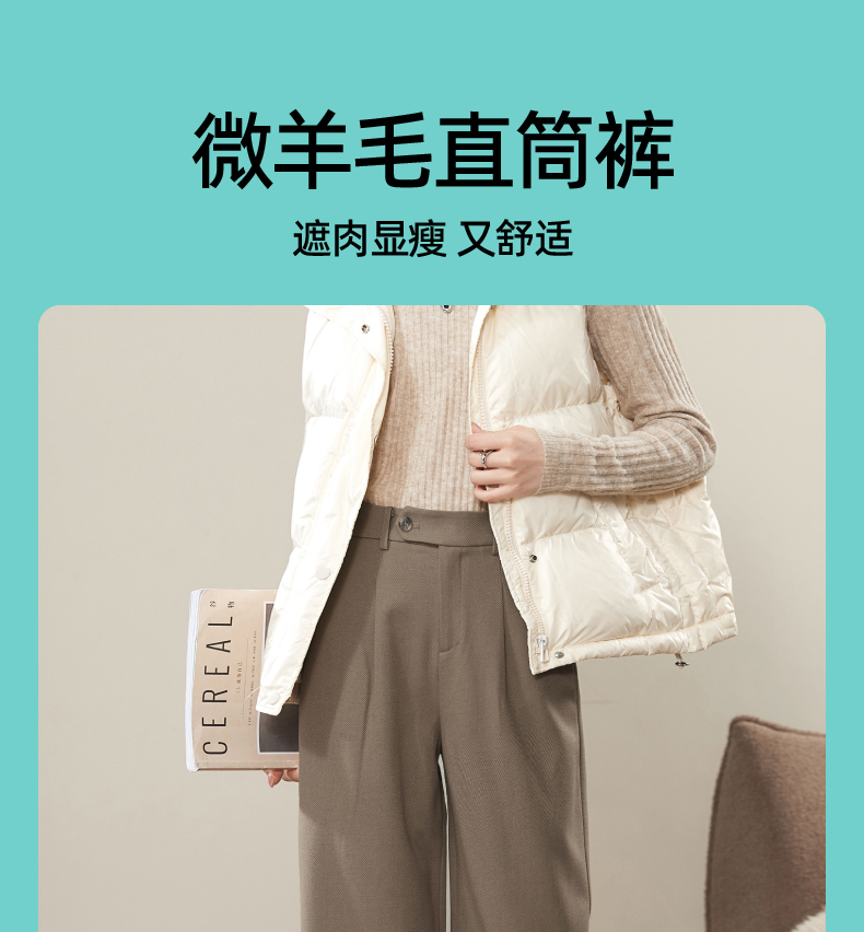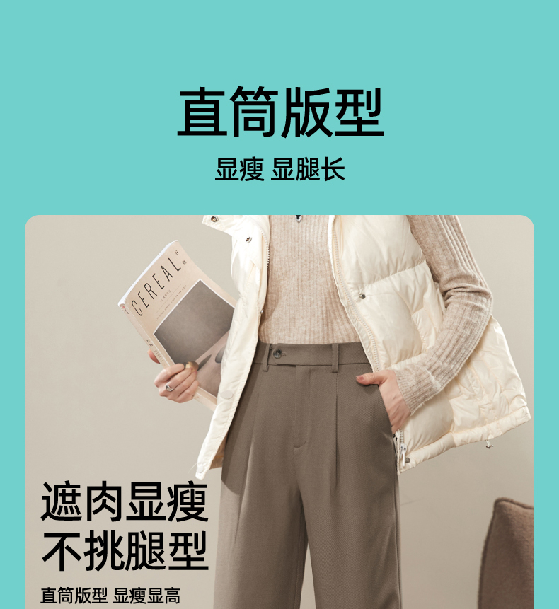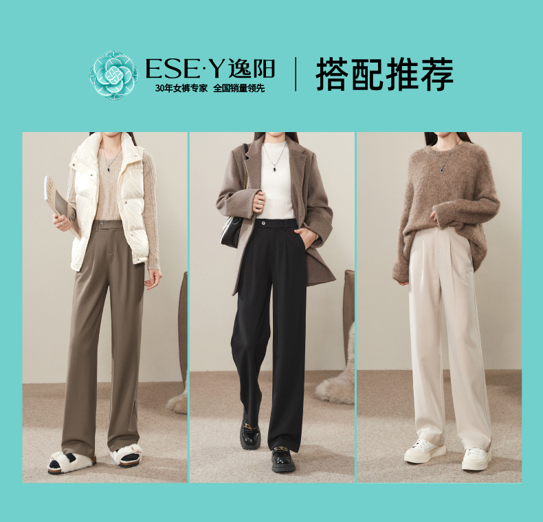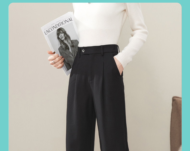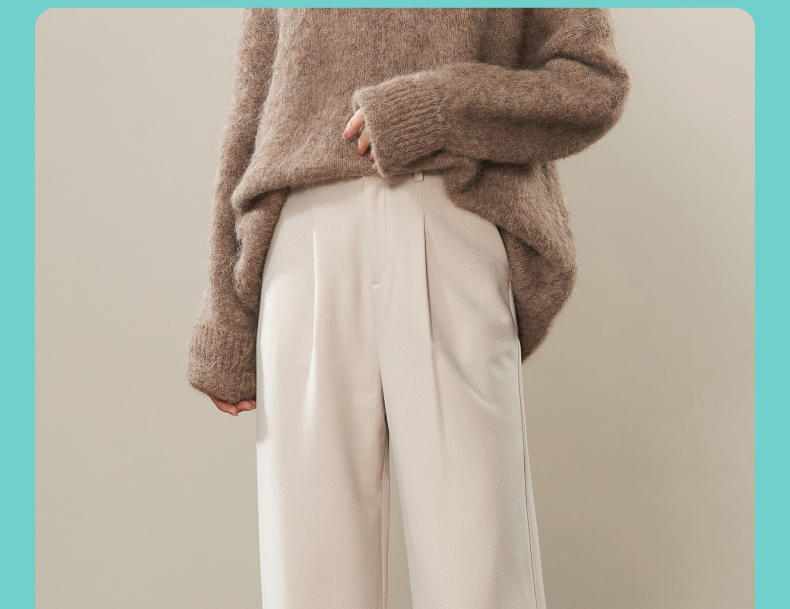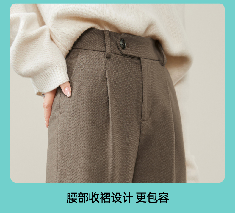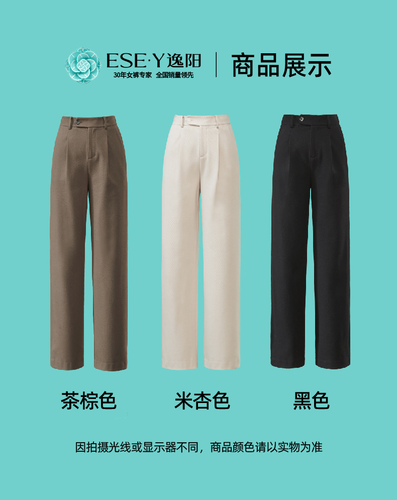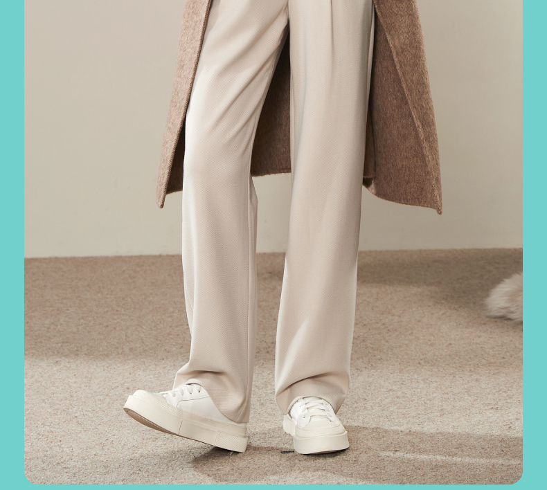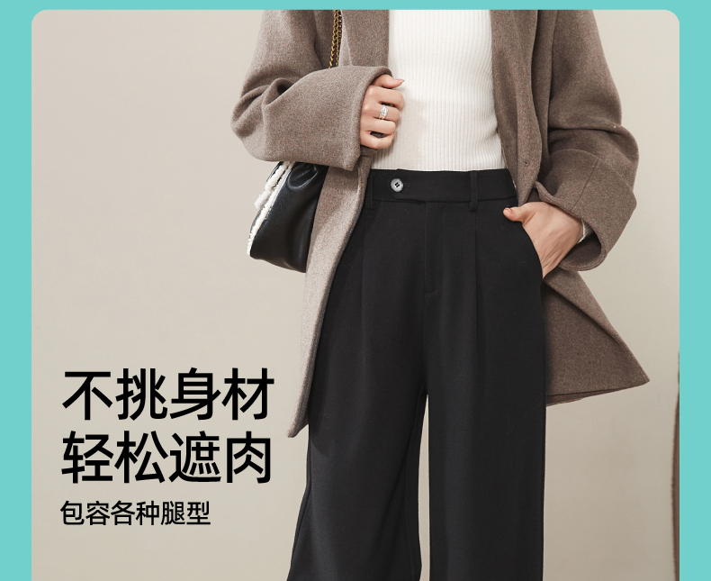 逸阳2024羊毛呢窄版阔腿西装裤女秋新款高腰垂感直筒休闲白色裤0560