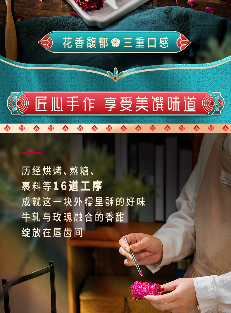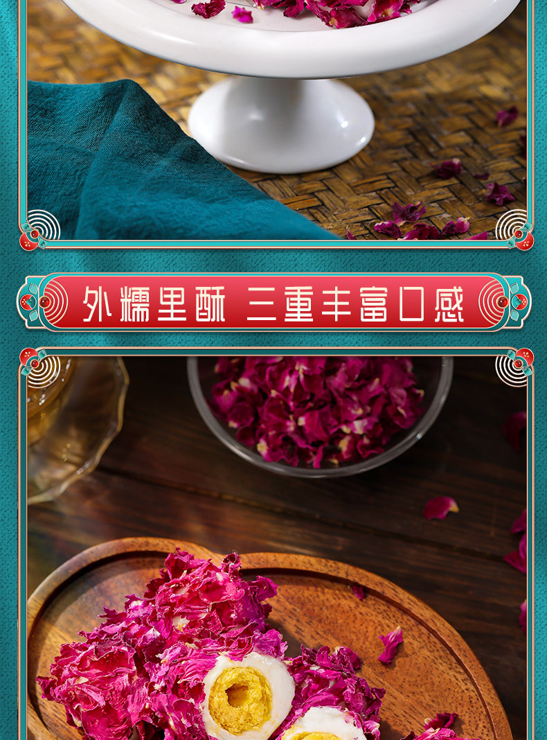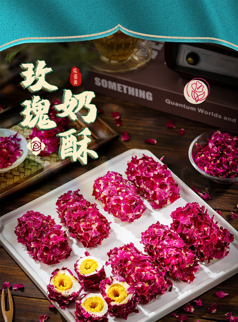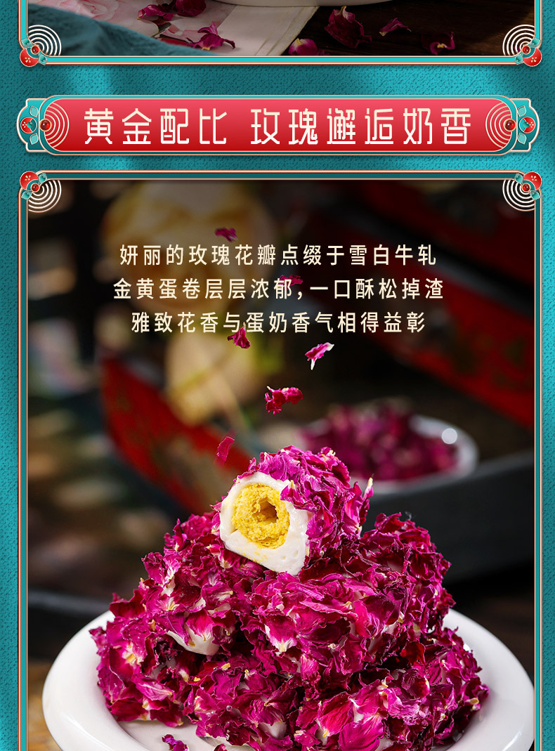 【玫瑰邂逅奶香!咸蛋黄玫瑰奶酥卷】使用山东平阴重瓣玫瑰 香气馥郁,添加新鲜奶源 奶味浓郁, 香甜软糯,乳香醇厚 外糯里酥 三重丰富口感!老少皆宜手工糕点休闲健康网红零食Y