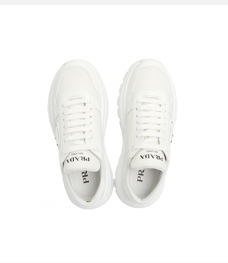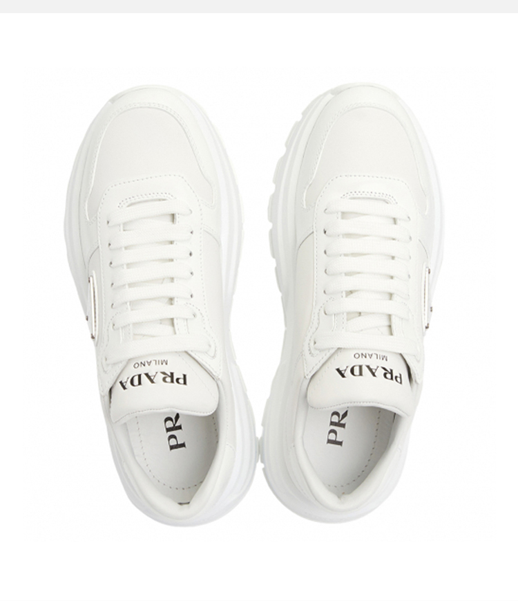 PRADA 普拉达 女士珐琅金属三角形徽标休闲运动鞋 白色 1E804M 3LKI F0009