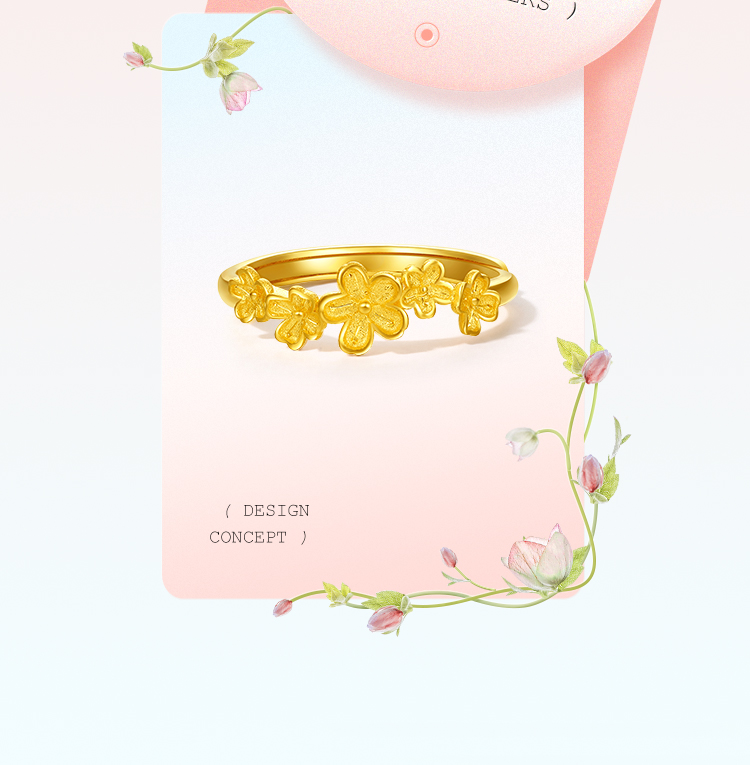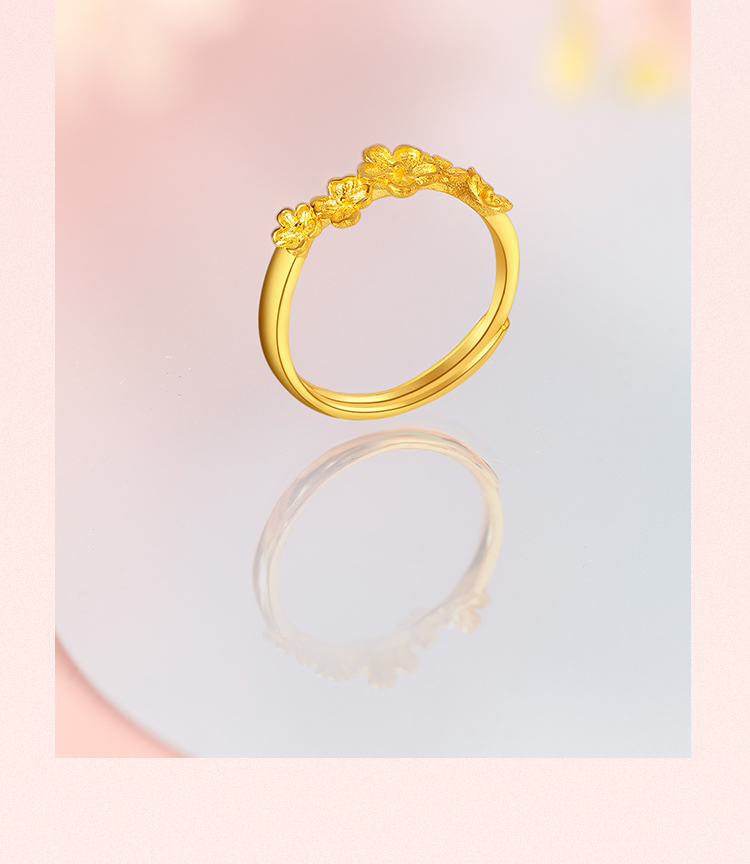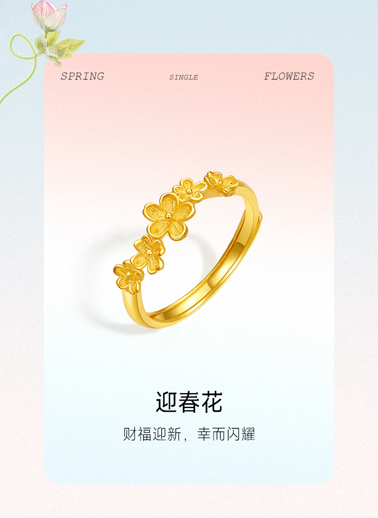 周六福黄金戒指女计价足金迎春花指环手饰送女友送女友礼物
