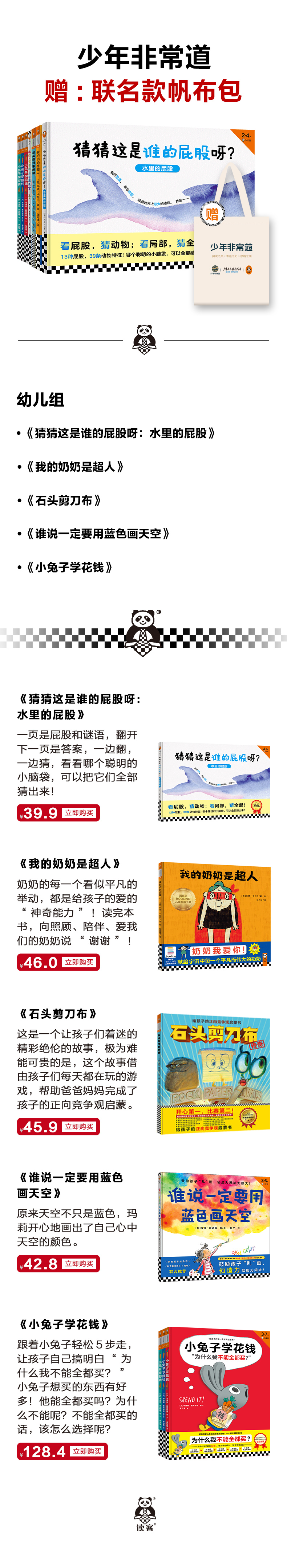 第五届少年非常道幼儿组系列 童书5套合集《我的奶奶是超人》《猜猜这是谁的屁股呀》《石头剪刀布》《谁说一定要用蓝色画天空》《小兔子学花钱(3册)》
