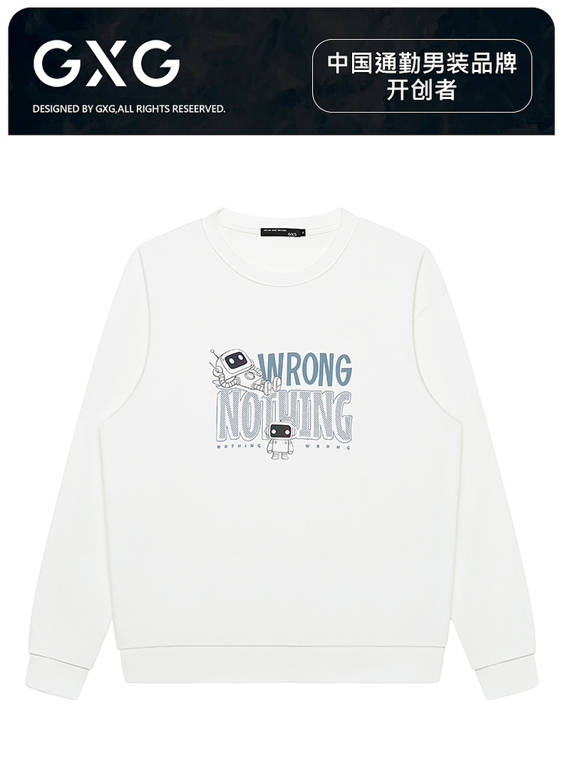 GXG男装【100%棉】秋季卡通动漫机器人简约百搭男式圆领卫衣K&C