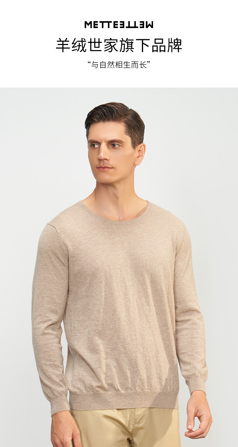 【小山羊绒内衣男士圆领A版】METTE羊绒世家秋冬男圆领小山羊绒内衣轻薄纯色保暖毛衣