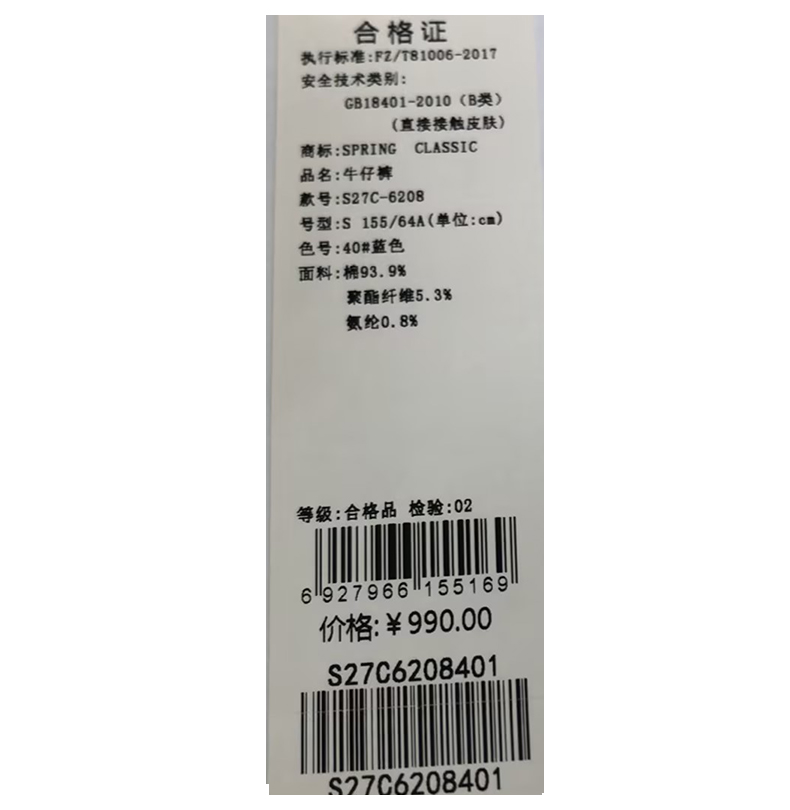 西贝伦牛仔裤S27C6208