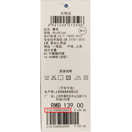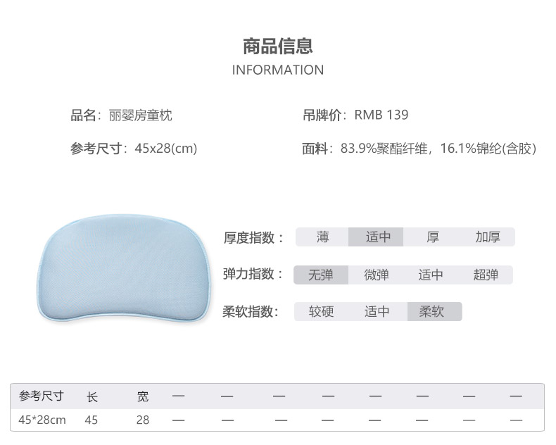 丽婴房-寝具类(春)D03D凉席枕头 浅蓝