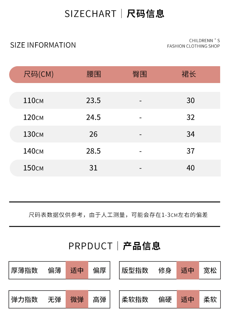 | 参考身高: 110/50 120/53 130/53 140/55 150/58 | 适用季节: 春秋 |