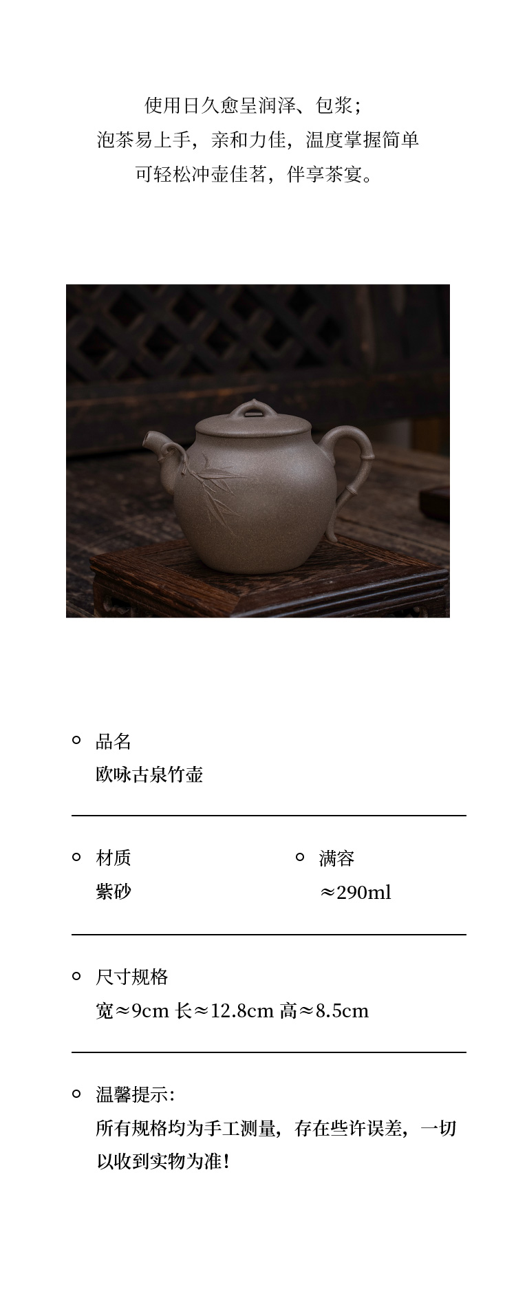 欧咏 古泉竹壶 宜兴紫砂原矿茶壶紫砂壶功夫茶泡茶壶茶具仿古