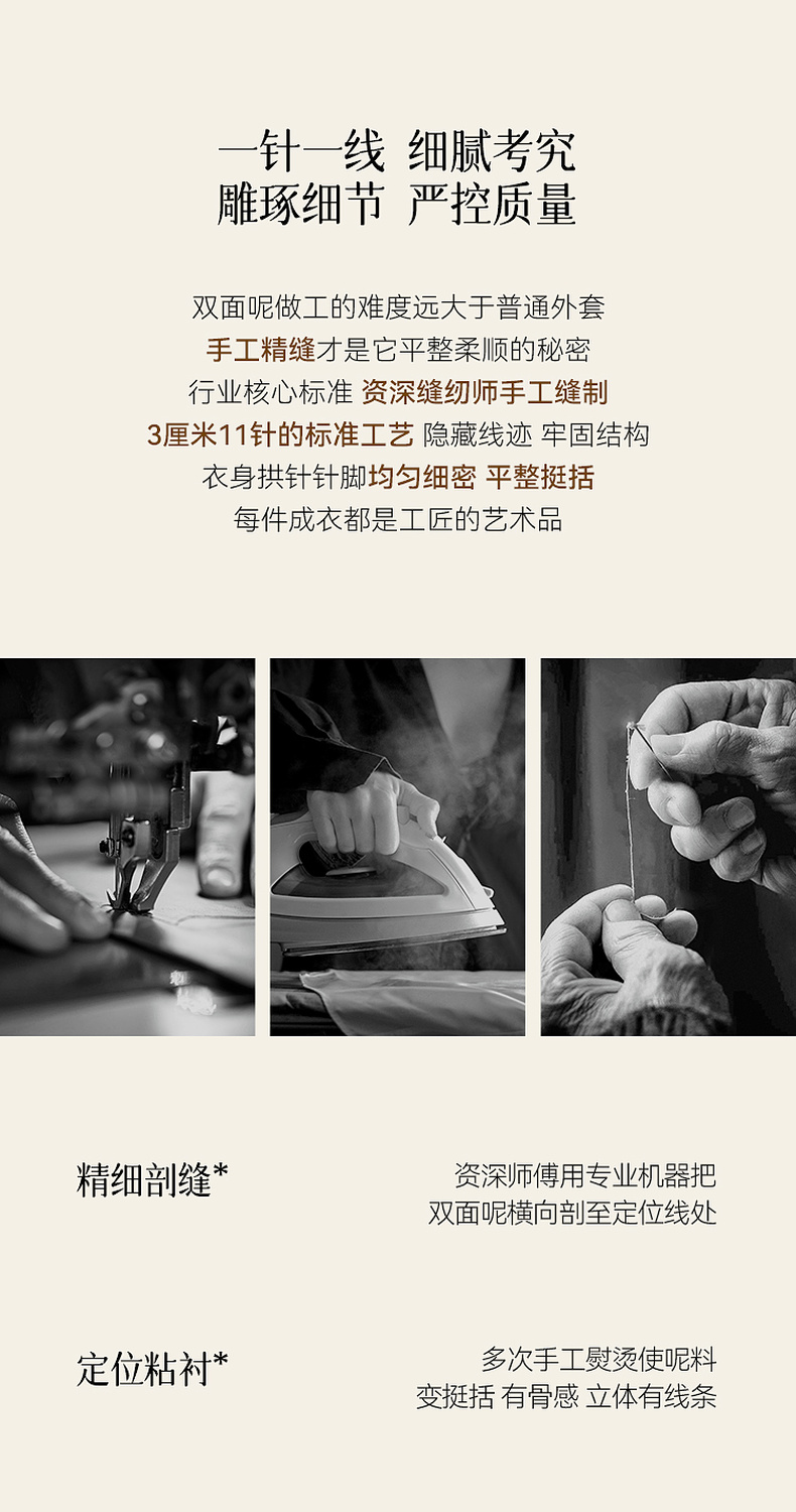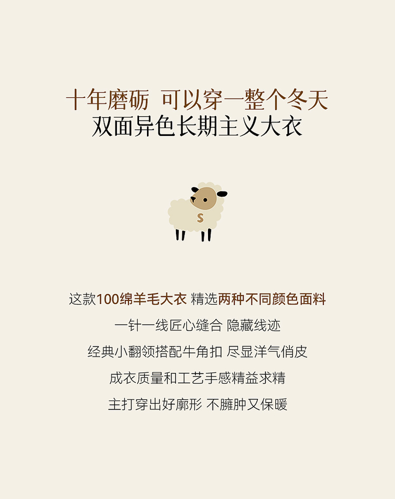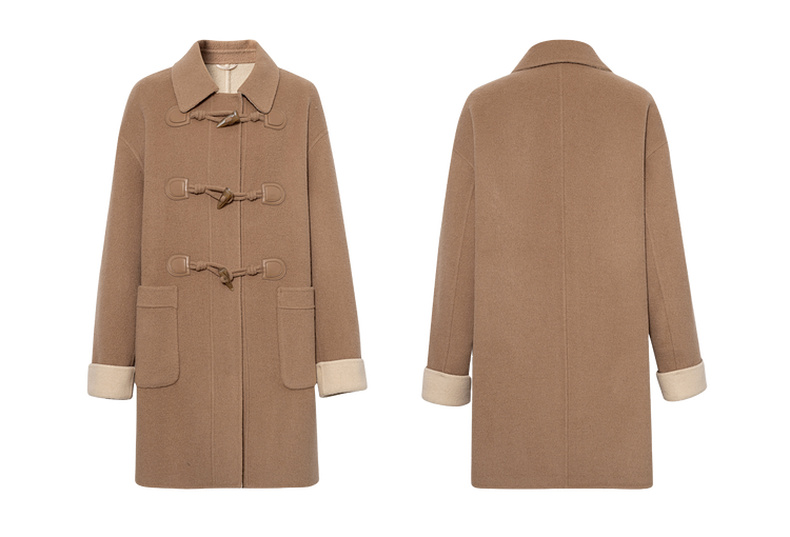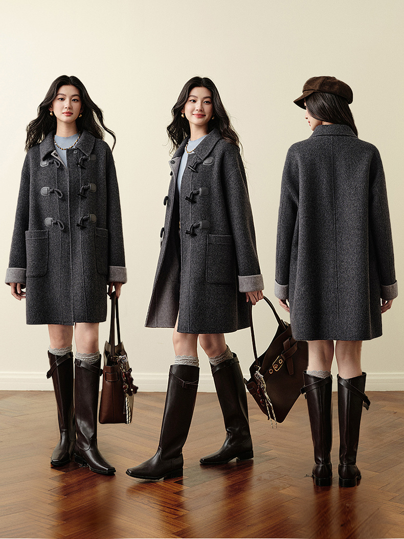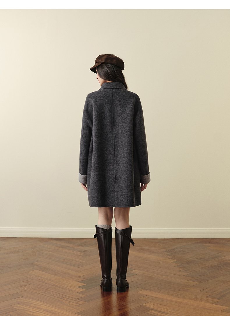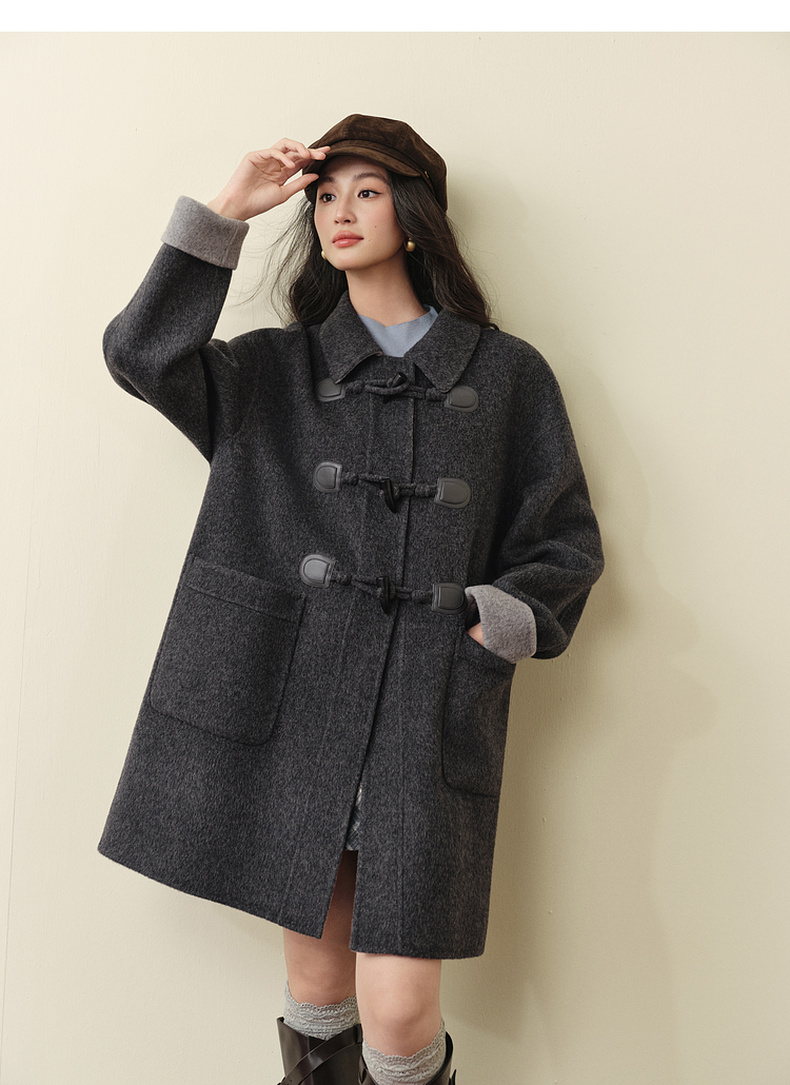 【严选】诗凡黎绵羊毛牛角扣小翻领毛呢外套2025秋新款学院风双面呢大衣女7G9170321