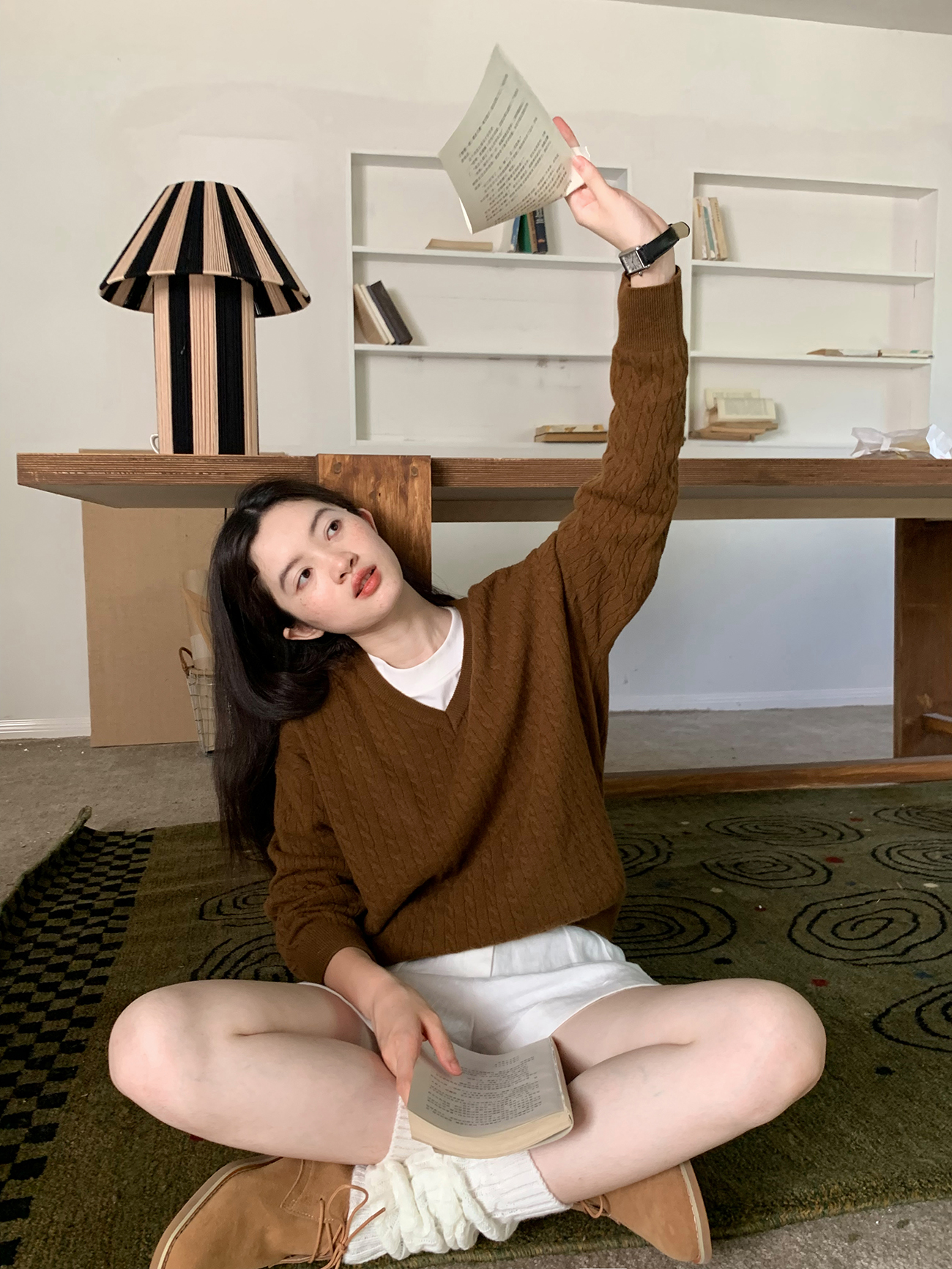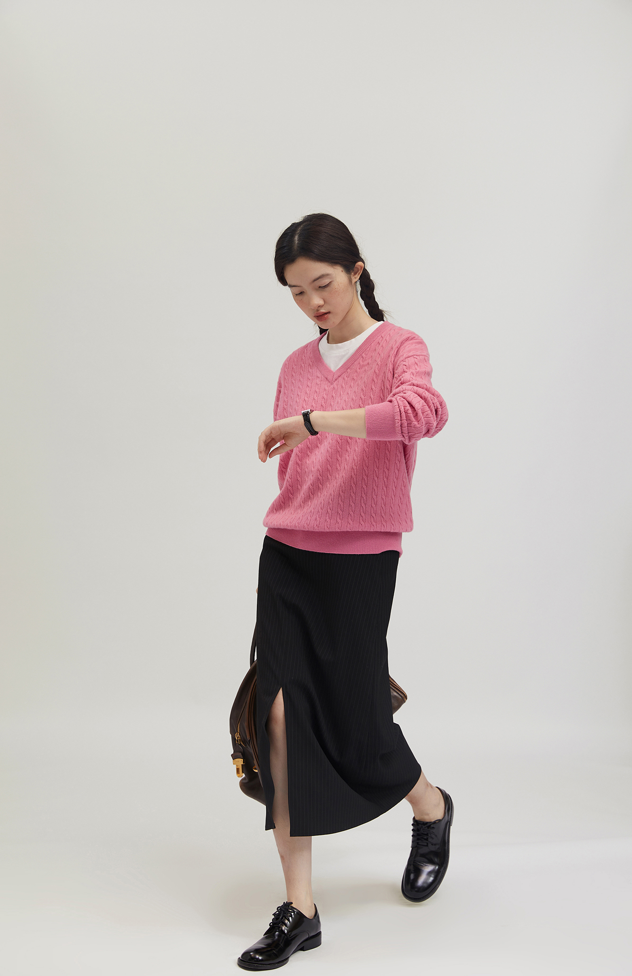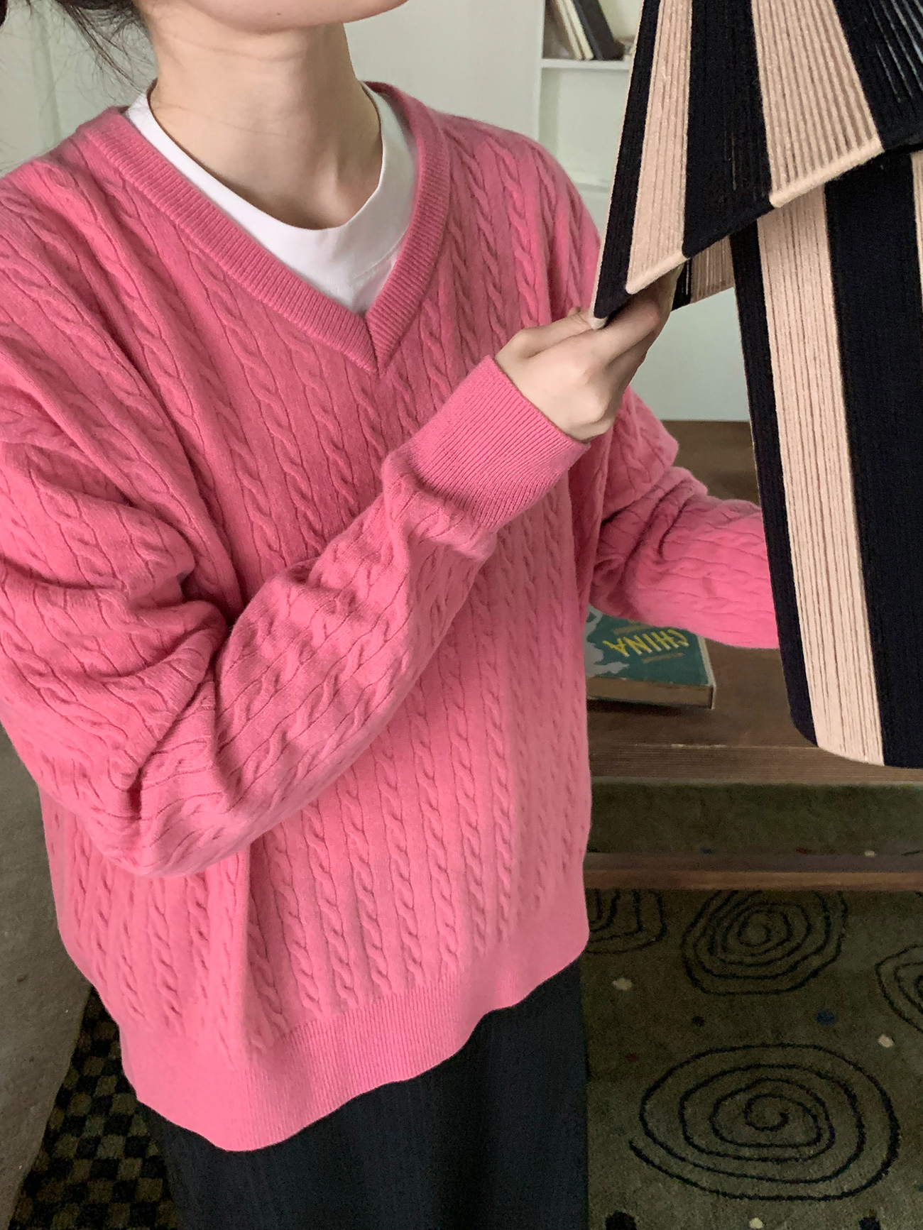 shyshystill/shy202308053/v领全羊毛经典扭花毛衣