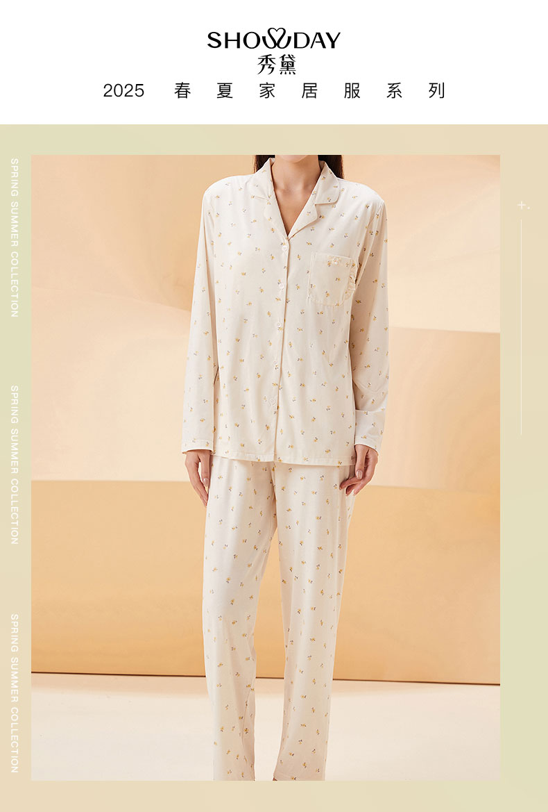 【第二件 0 元| 满2件 5 折】【秀黛】女翻领印花杯垫长袖套装女士春秋长袖睡衣家居服S1551030T【门店同款】