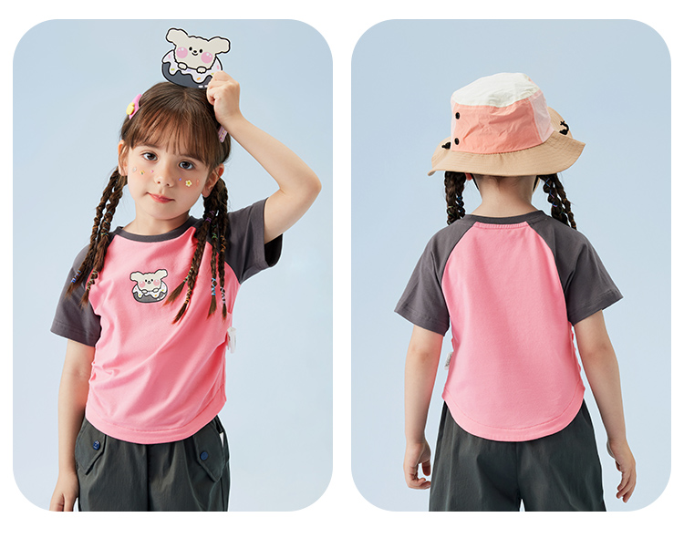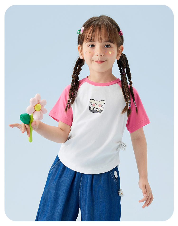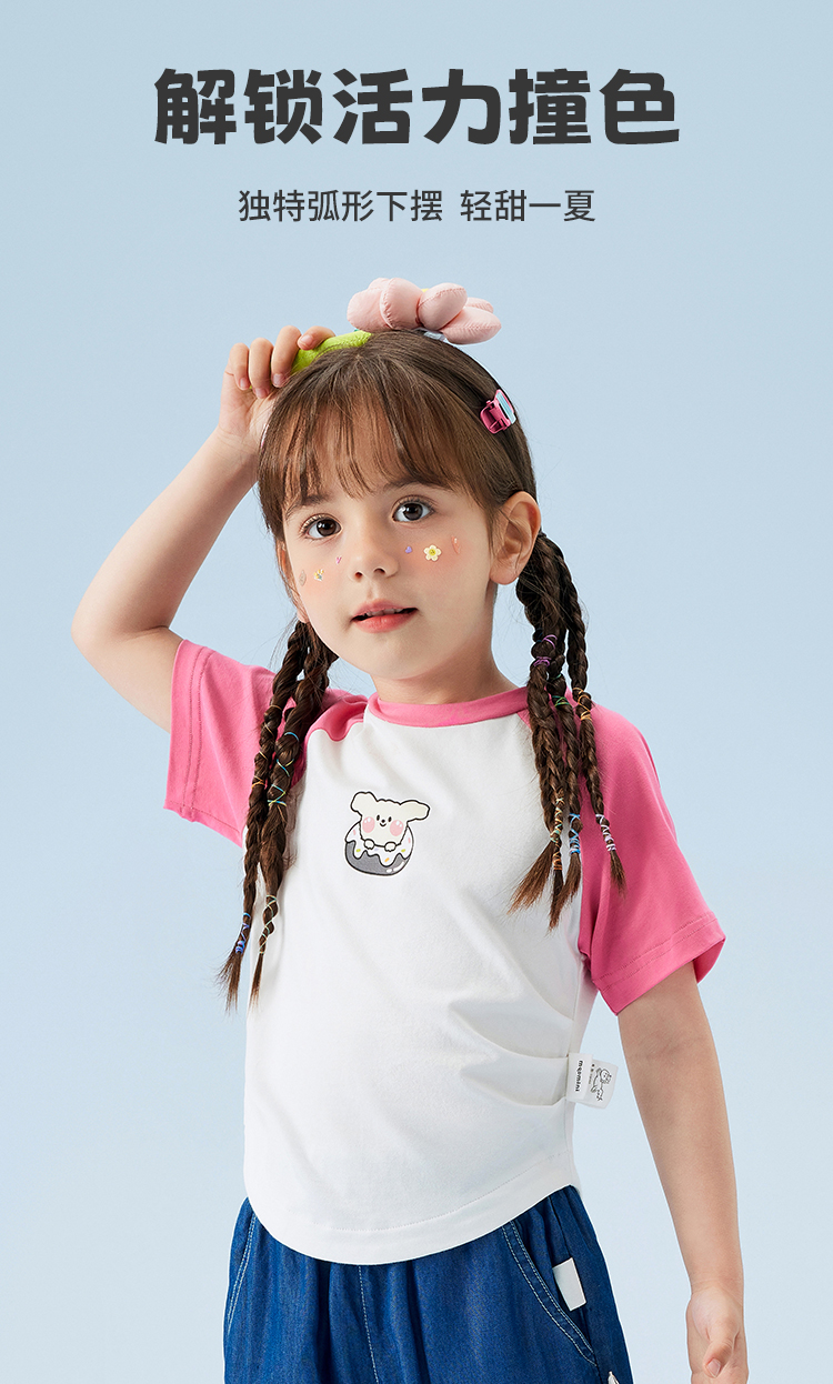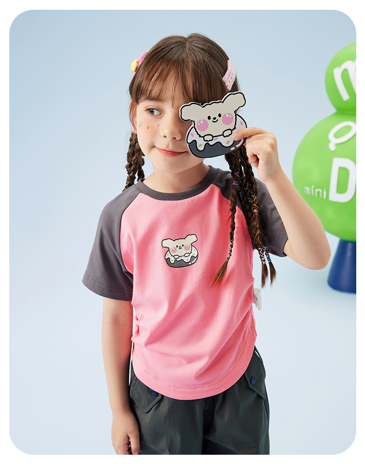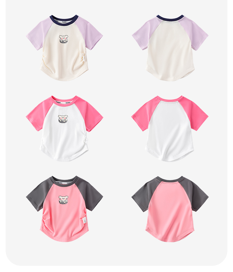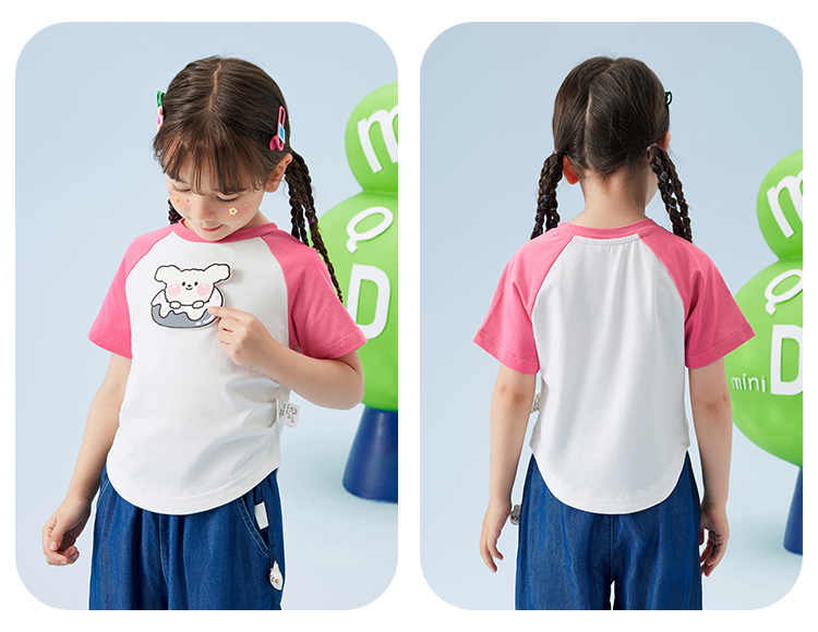 【90-140】【MQDMINI】女童夏季短袖T恤插肩袖拼色活泼可爱上衣