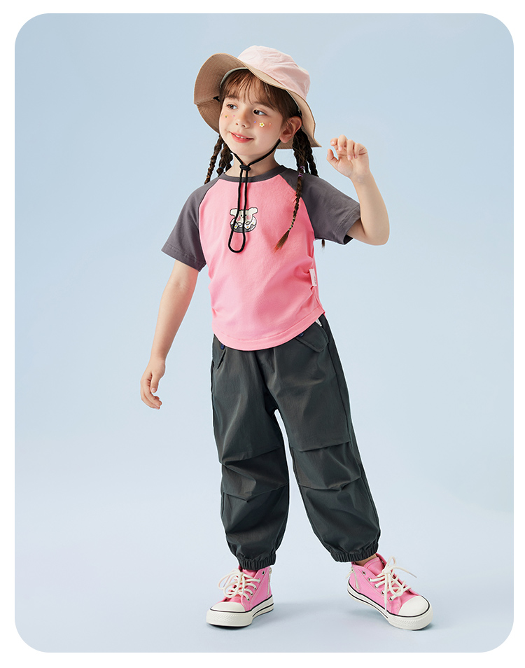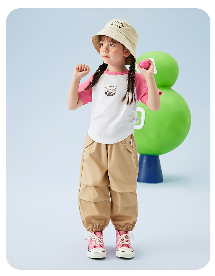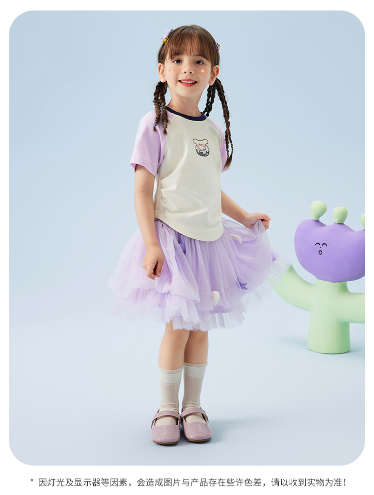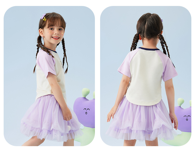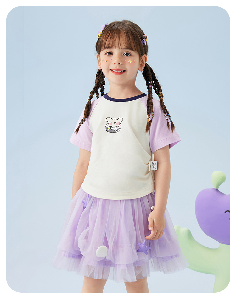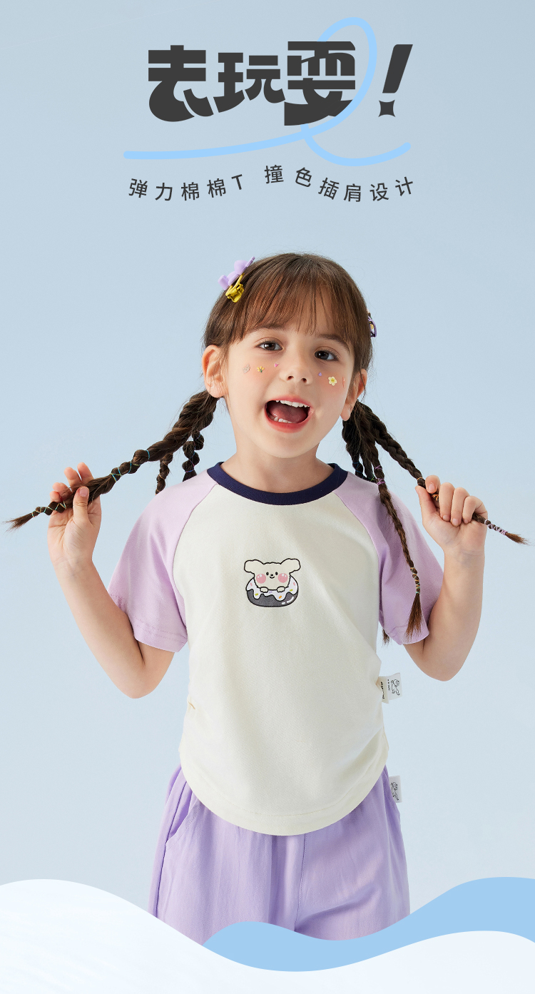 【90-140】【MQDMINI】女童夏季短袖T恤插肩袖拼色活泼可爱上衣