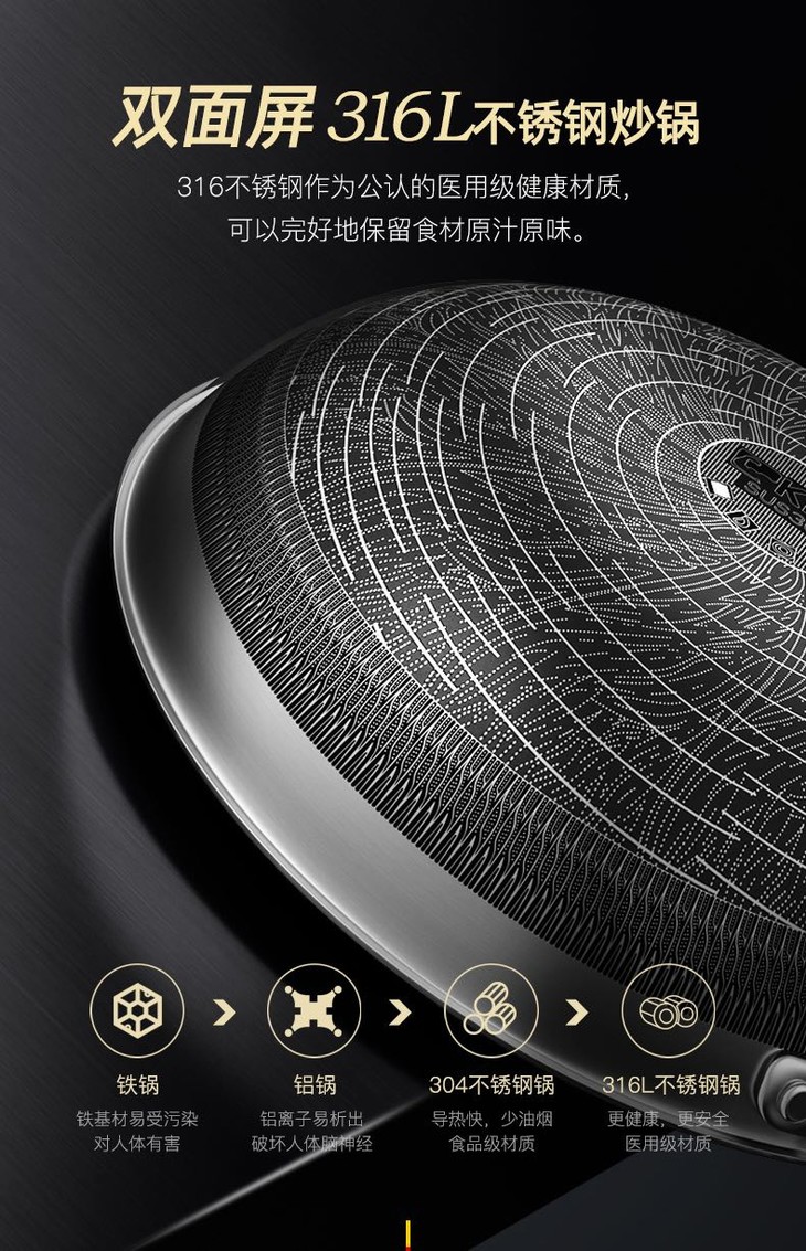 2:双面屏316医用不锈钢炒锅 ,不挑灶具 燃气电磁炉都适用