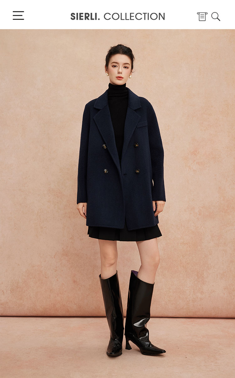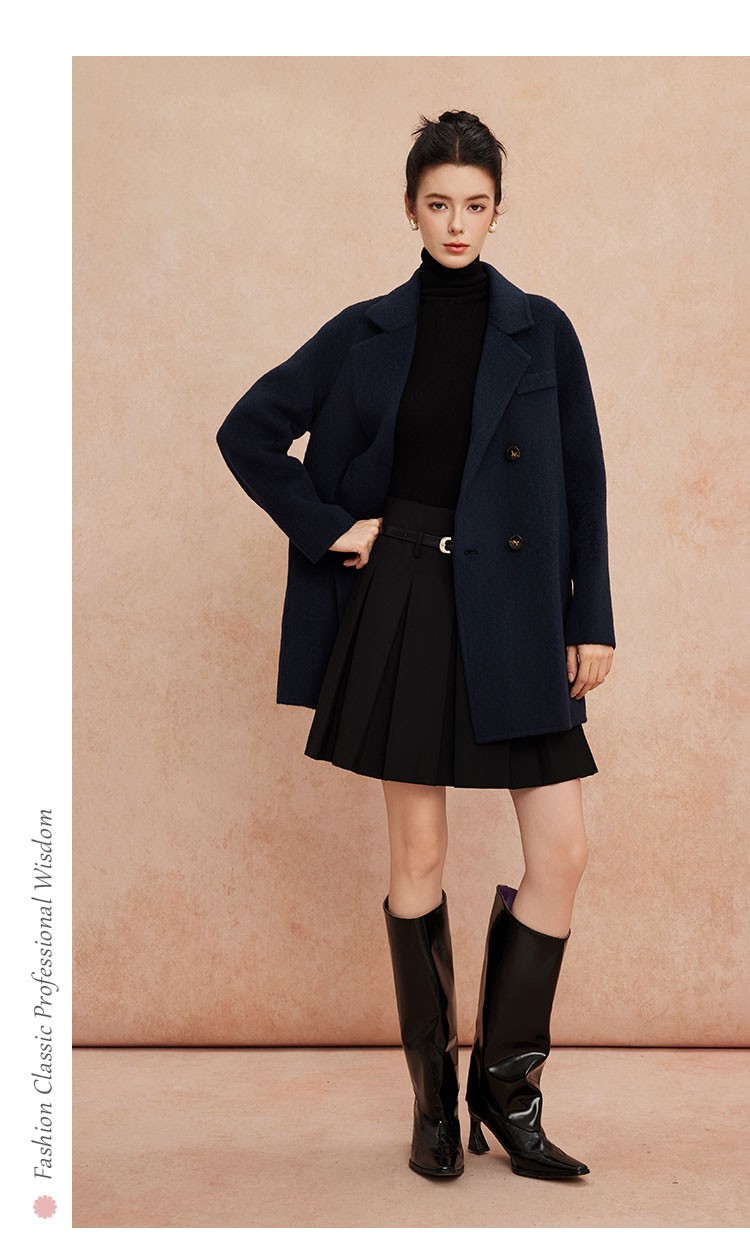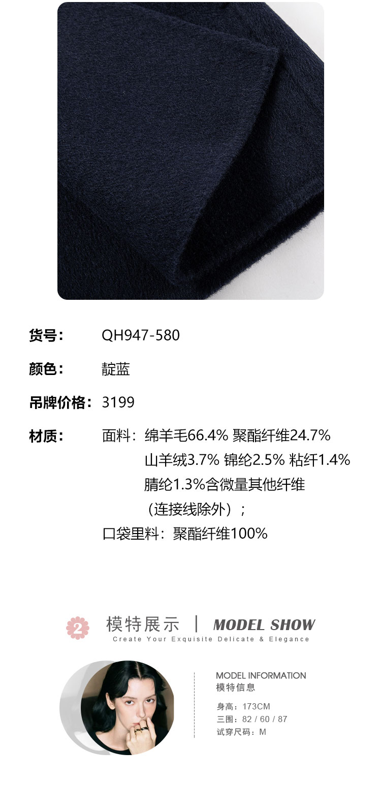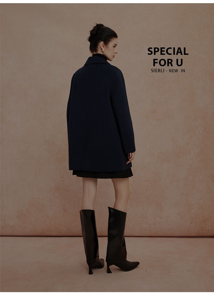 QH947斯尔丽25新款一手长小个子直身时尚百搭通勤双面呢羊毛短大衣
