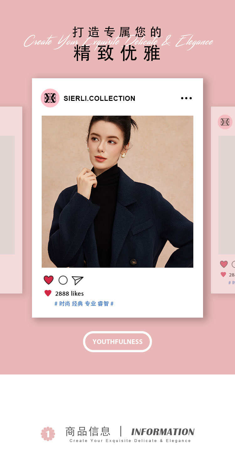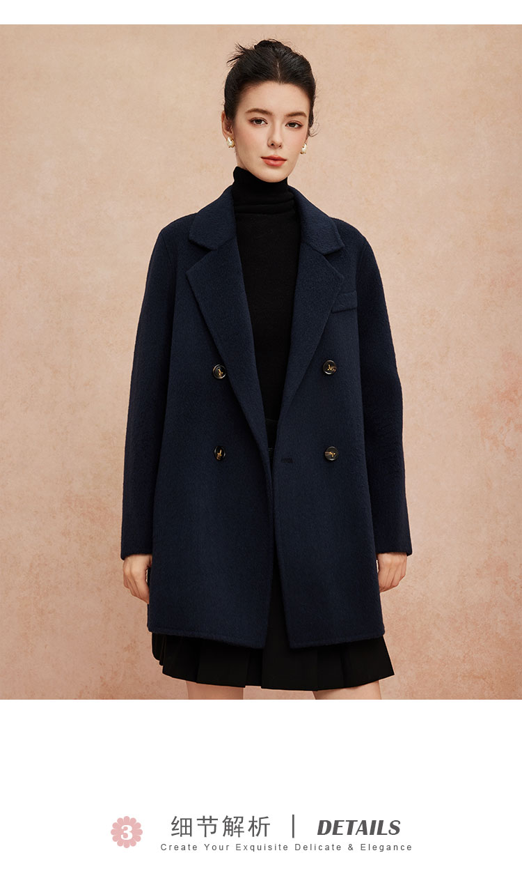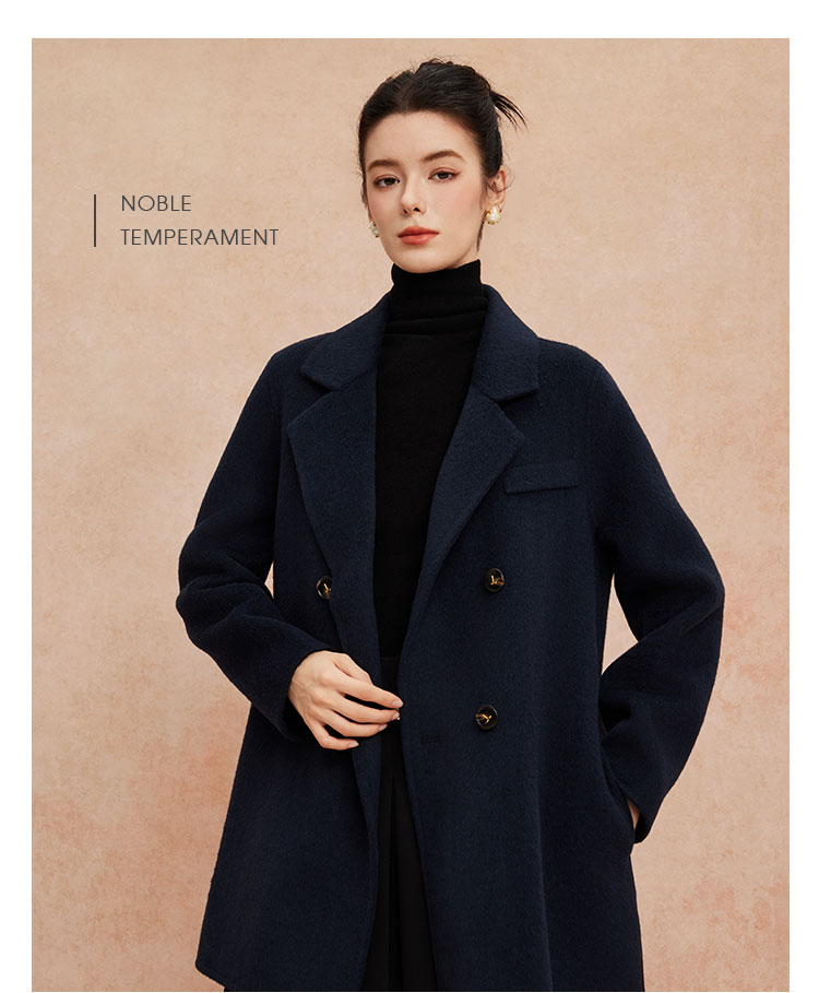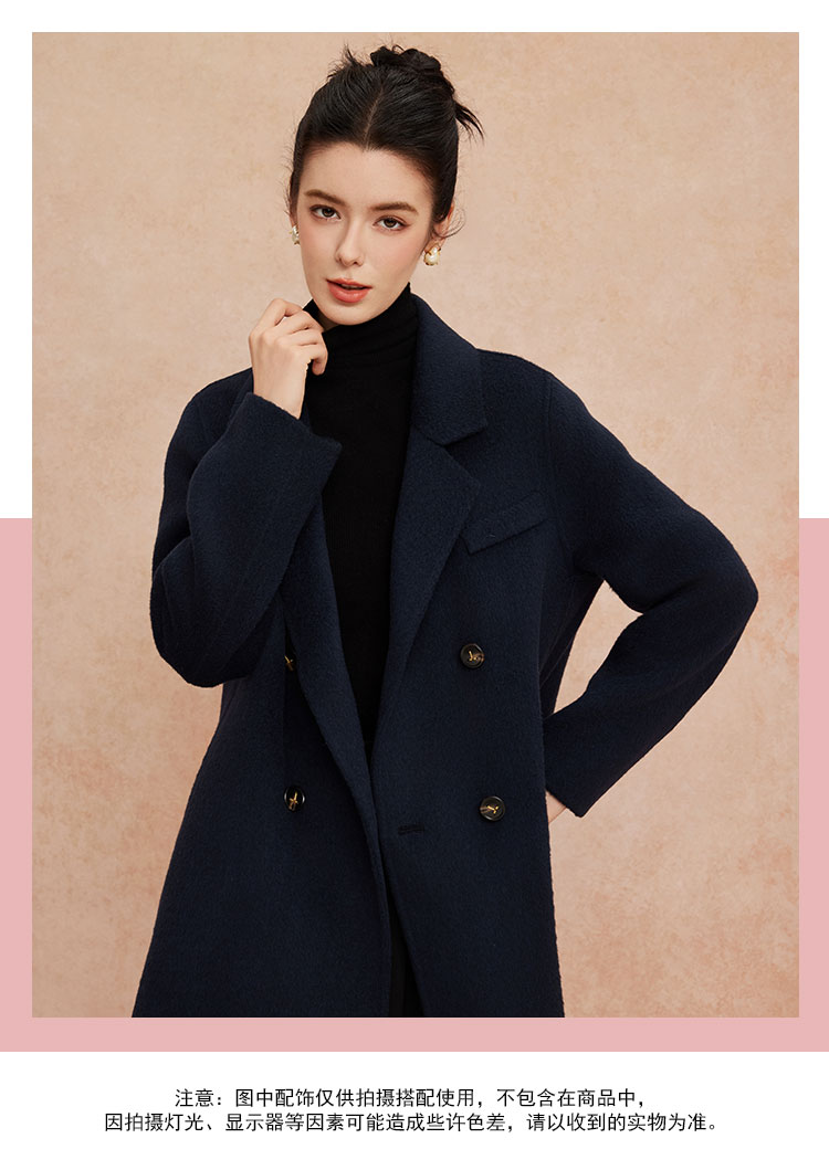 QH947斯尔丽25新款一手长小个子直身时尚百搭通勤双面呢羊毛短大衣