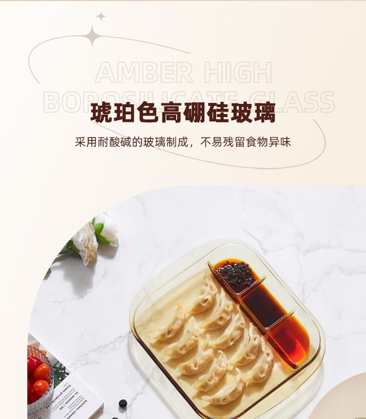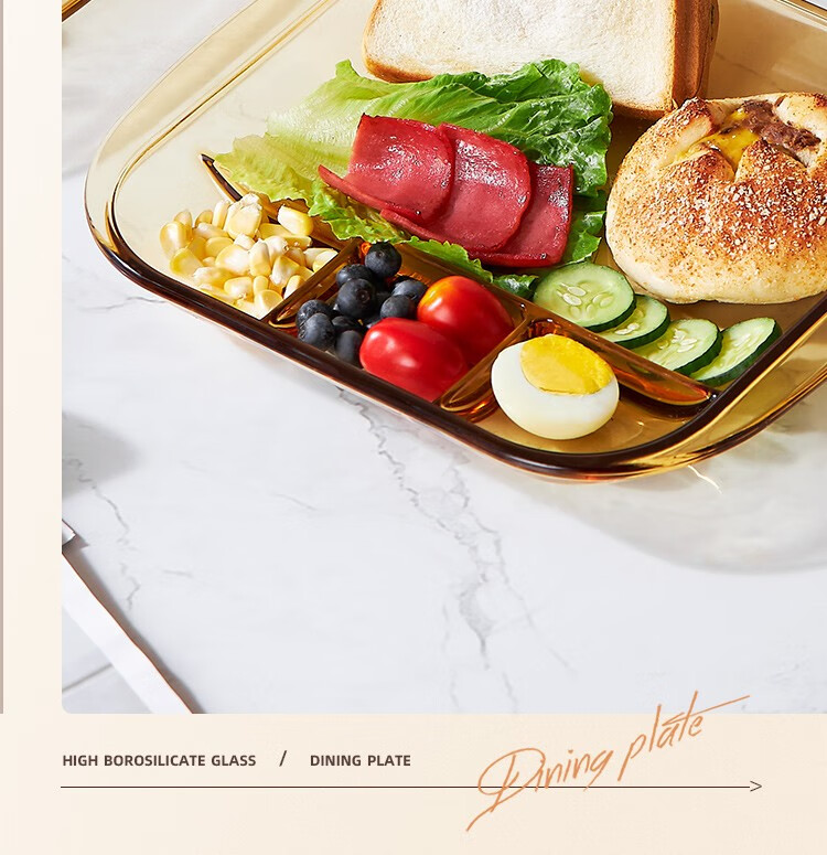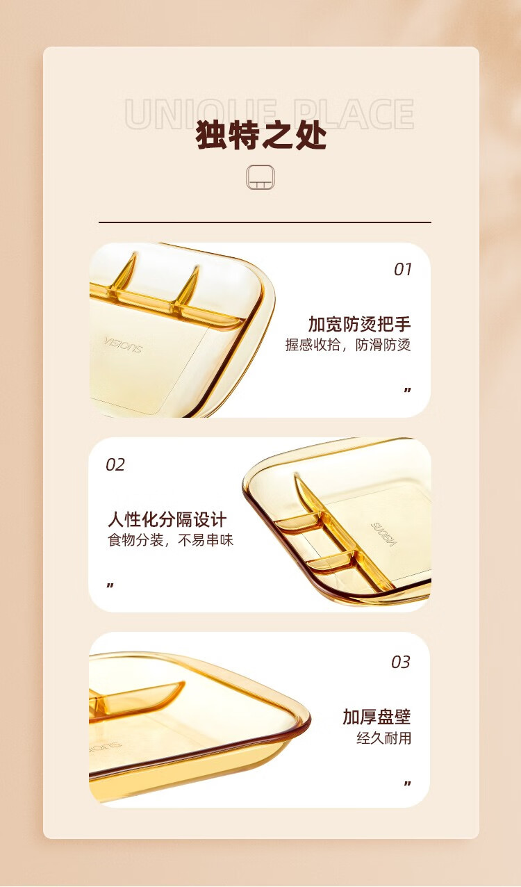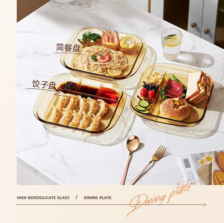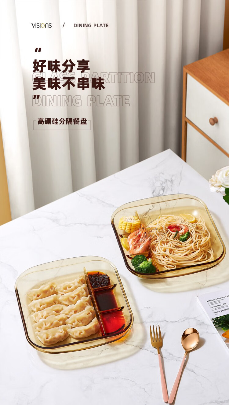 康宁 耐热玻璃家用饺子盘带醋碟减脂分餐分隔餐盘儿童餐盘早餐盘 康宁高硼硅分隔餐盘9